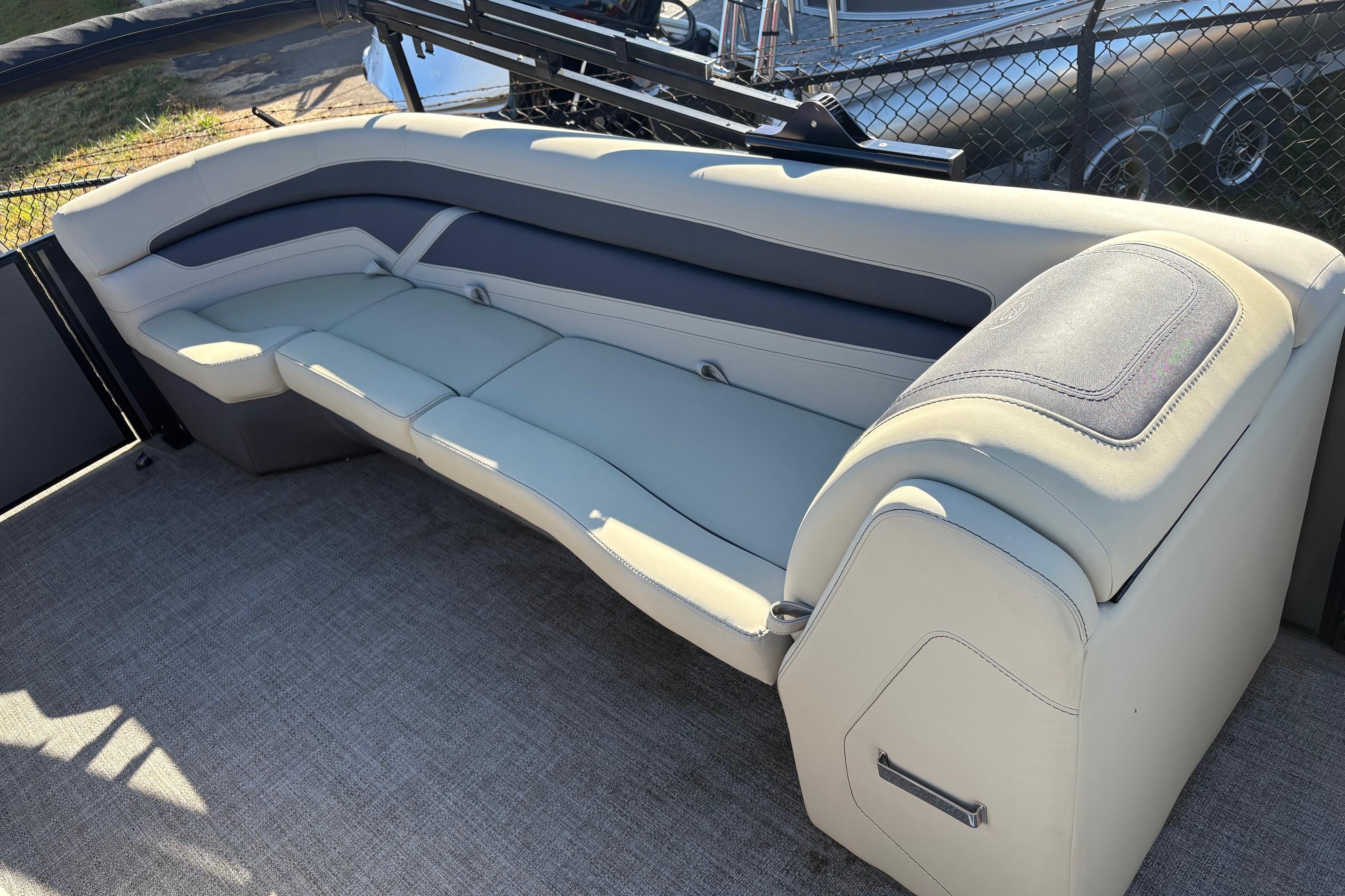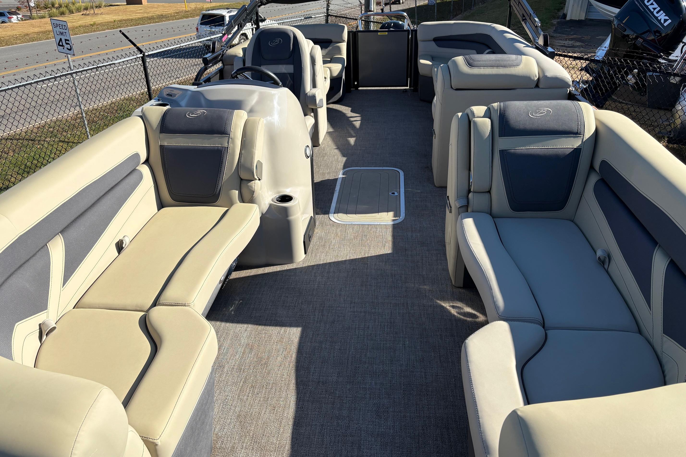 The quad-lounge is the layout for those who want to spread out and relax on the ultra-comfy Barletta chaise lounges. The way the furniture wraps around the perimeter of the boat is also great for keeping curious kiddos and pets inside the boat while underway.