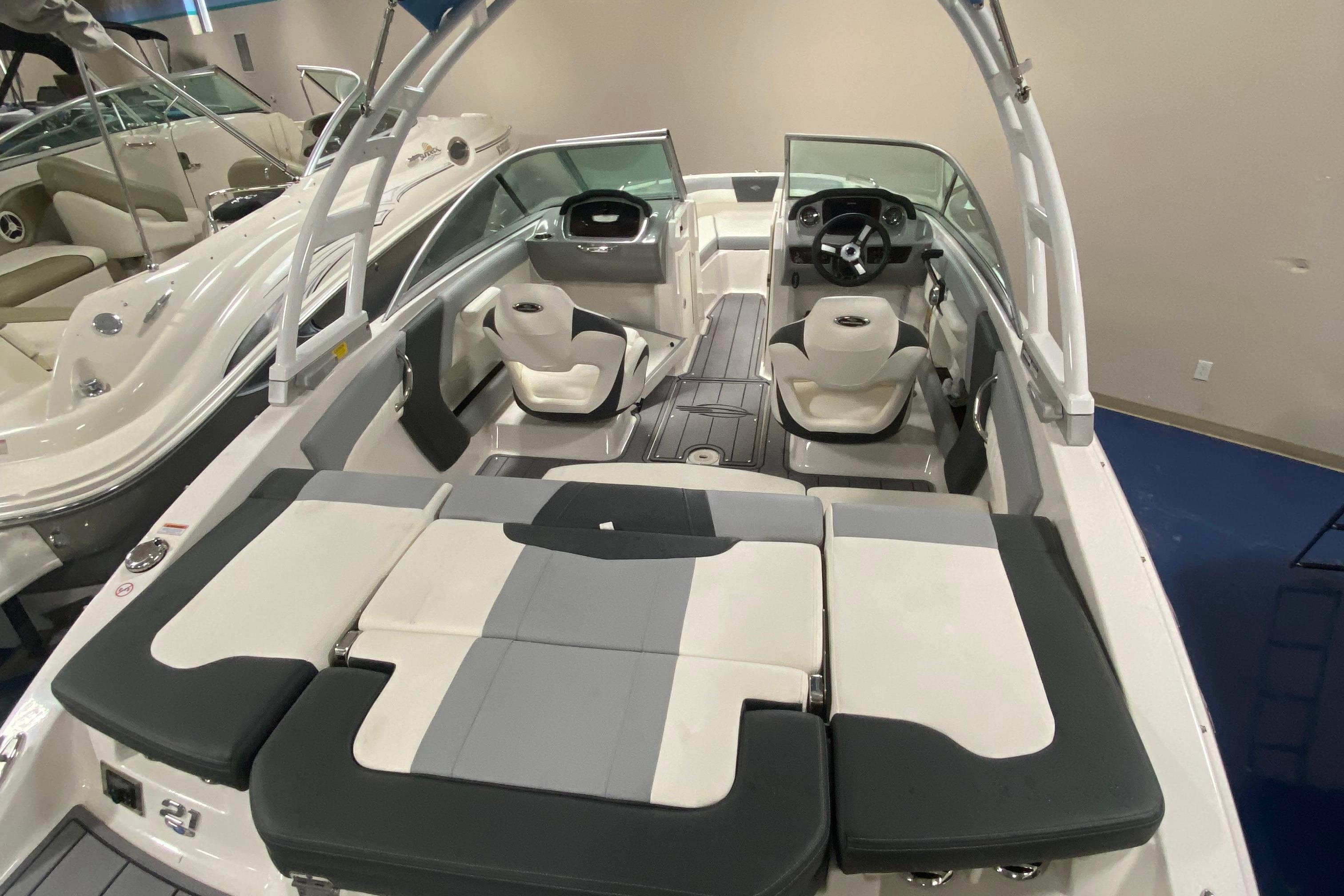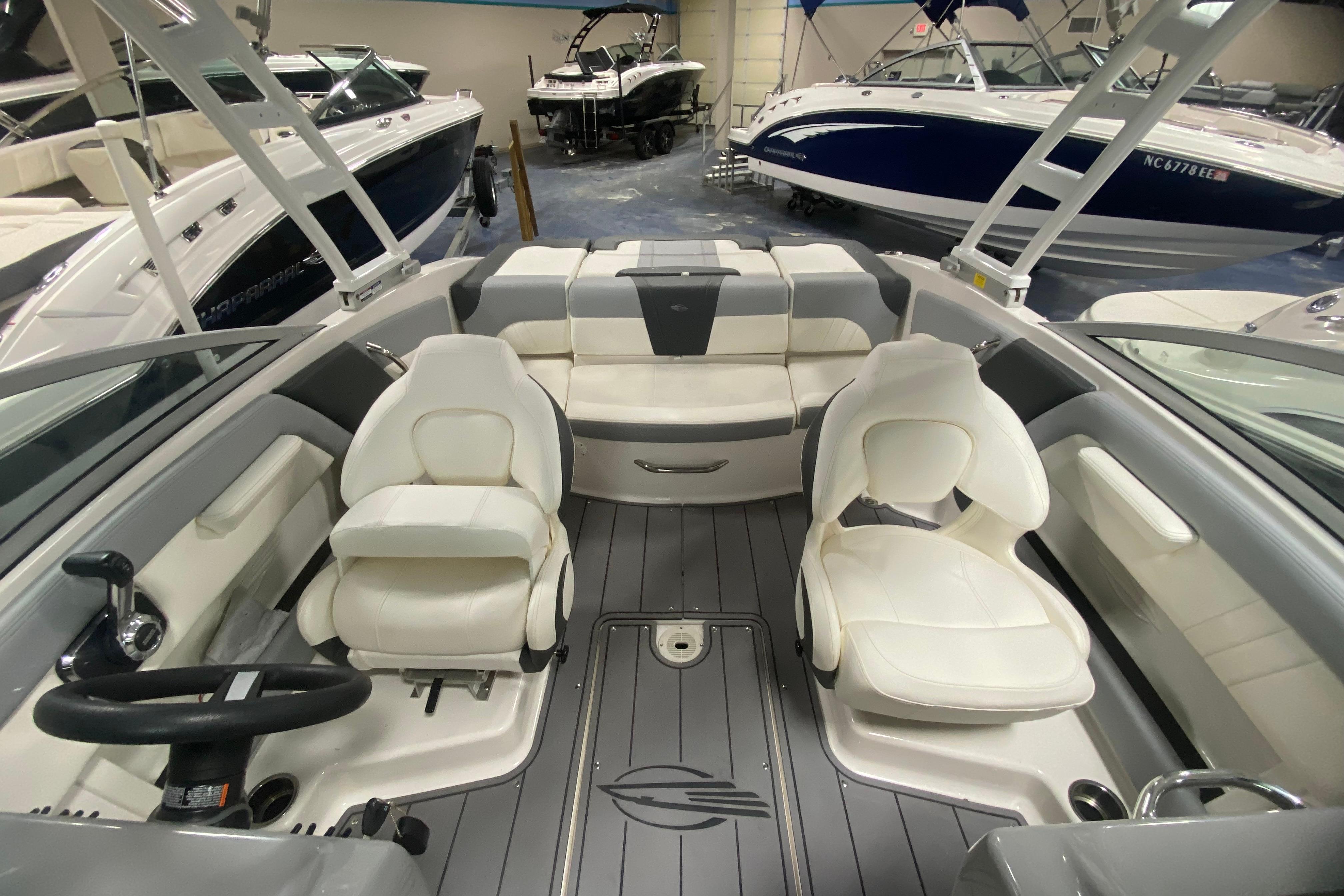 The 21 SSi's style is captivating, but its appeal is more than skin deep. Stainless steel hardware, composite seat bases, a cockpit drainage system, an Extended V-Plane running surface, and a molded fiberglass dash are keeping with the Chaparral DNA. Step up to the 21 SSI and enjoy wraparound seat backs in the bow, an anchor locker forward, and room for everyone.