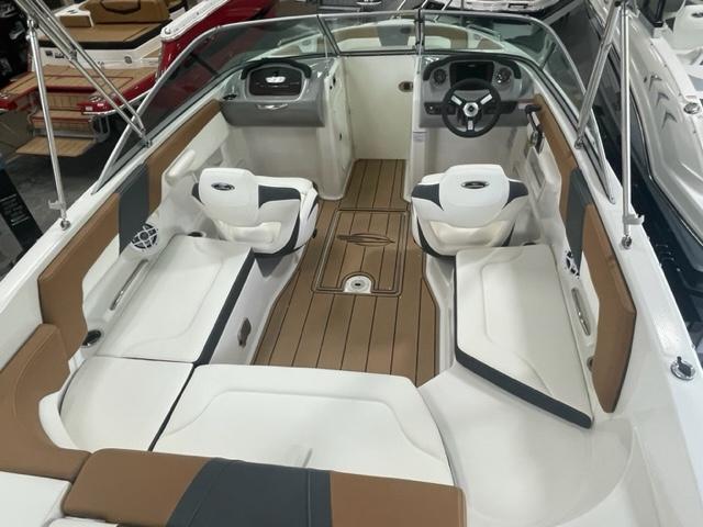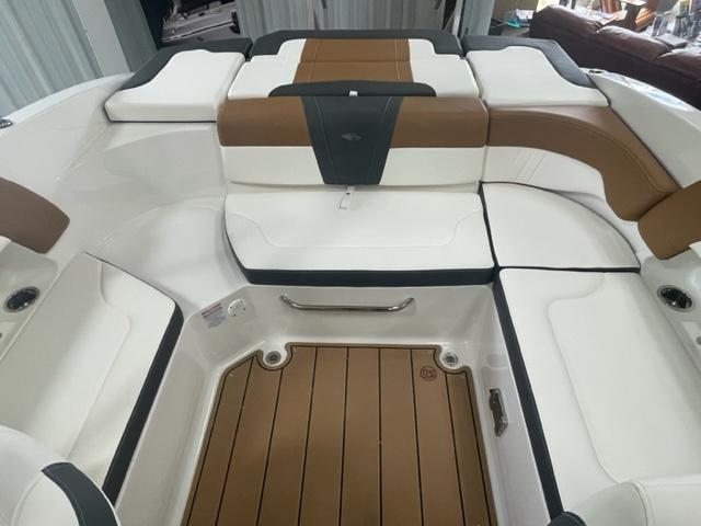 - Cockpit Layout: Two Bucket Seats (Slide and Swivel) with Logo Badging, U-Shaped Seating and Aft Hinged Sundeck with Walk-Thru, Lounge Position and Aft Facing Seat