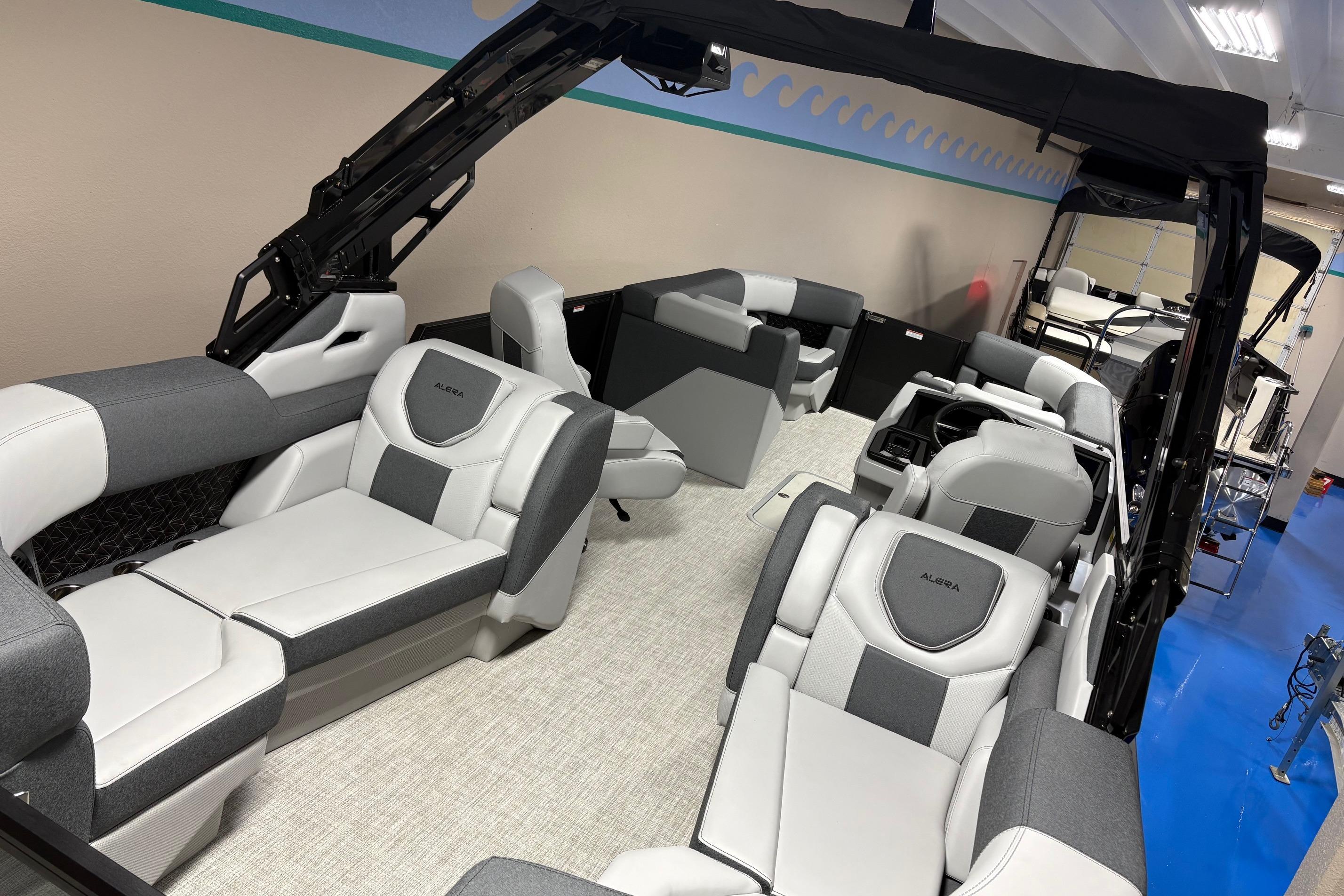 Its tritoon (triple pontoon) design enhances stability and buoyancy, while the wider deck layout offers increased space for seating, storage, and movement—perfect for social gatherings, watersports, or relaxing cruises. Equipped with a powerful Mercury Verado engine, the Model M delivers superior acceleration, towing capability, and reliability, ensuring smooth and responsive handling in various water conditions. Whether you're seeking speed, space, or style, the Alera Model M tritoon provides a balanced, high-performance boating experience.