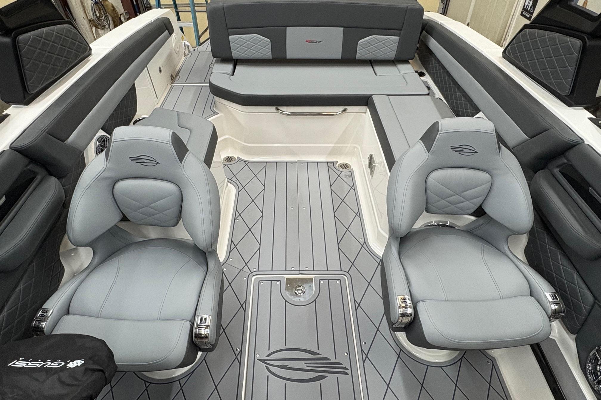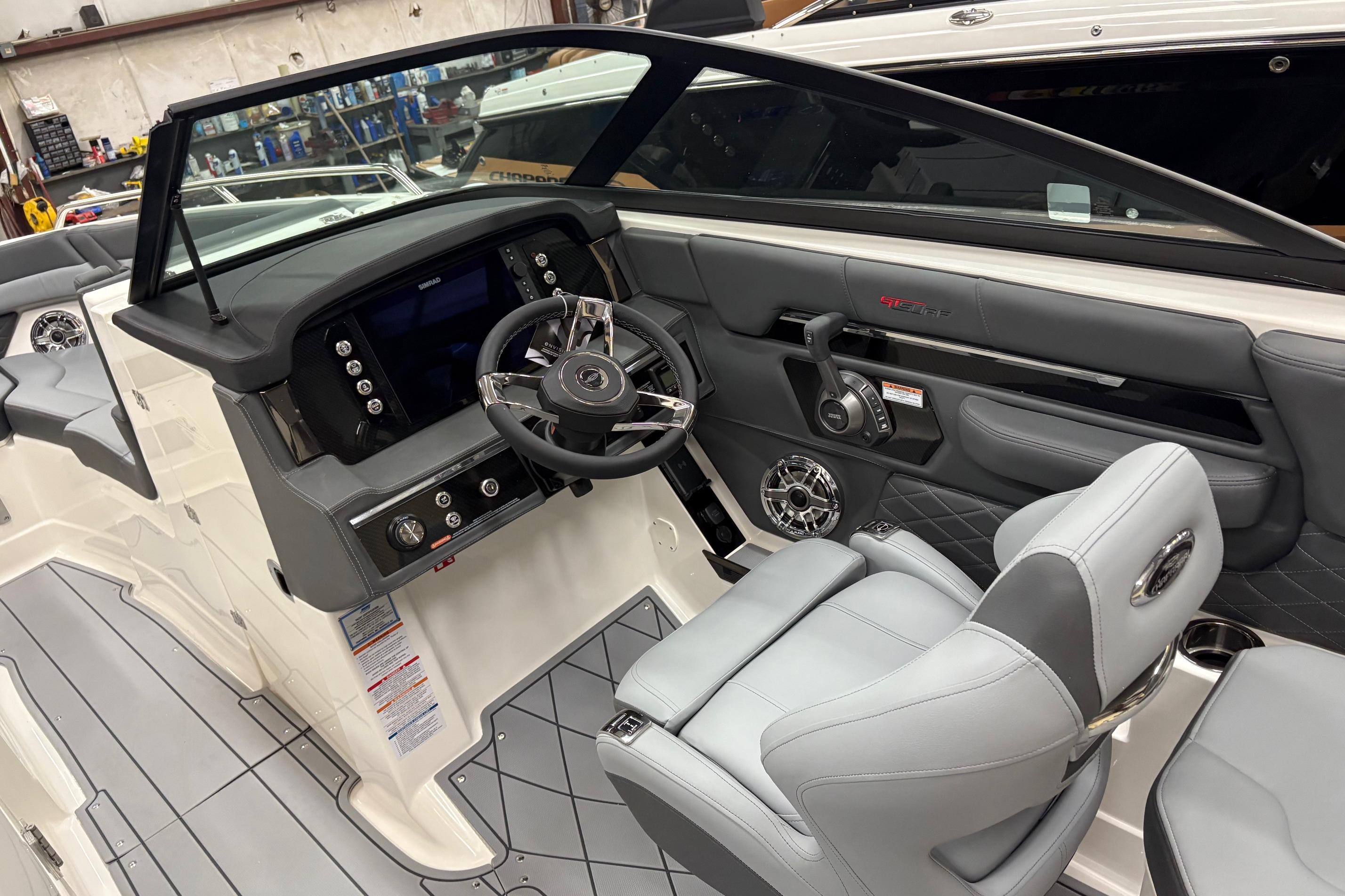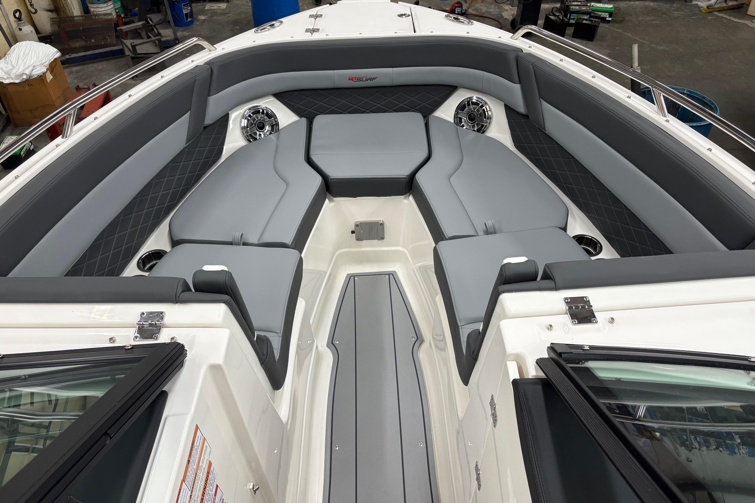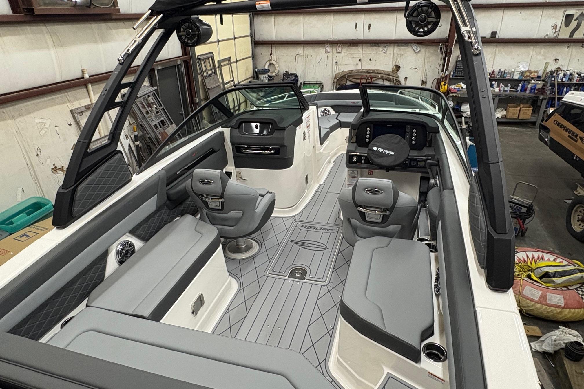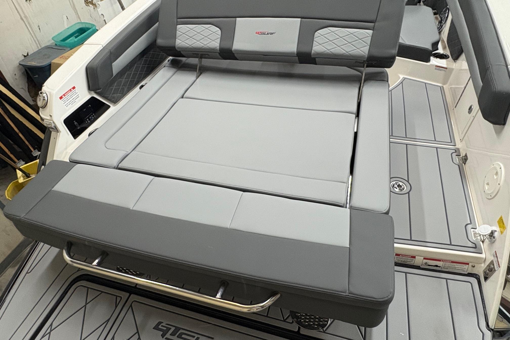 Surf the perfect wave all summer long with the 26 Surf. Malibu Surf Gates make this boat a surfer's paradise, and the EFX electric folding arch tower lets wakeboarders join in the fun. The award-winning Infinity Power Step makes reboarding a breeze with its one-button operation. A forward-facing drive keeps swimmers safe and the spacious cockpit will let everyone relax with plenty of space for storage.