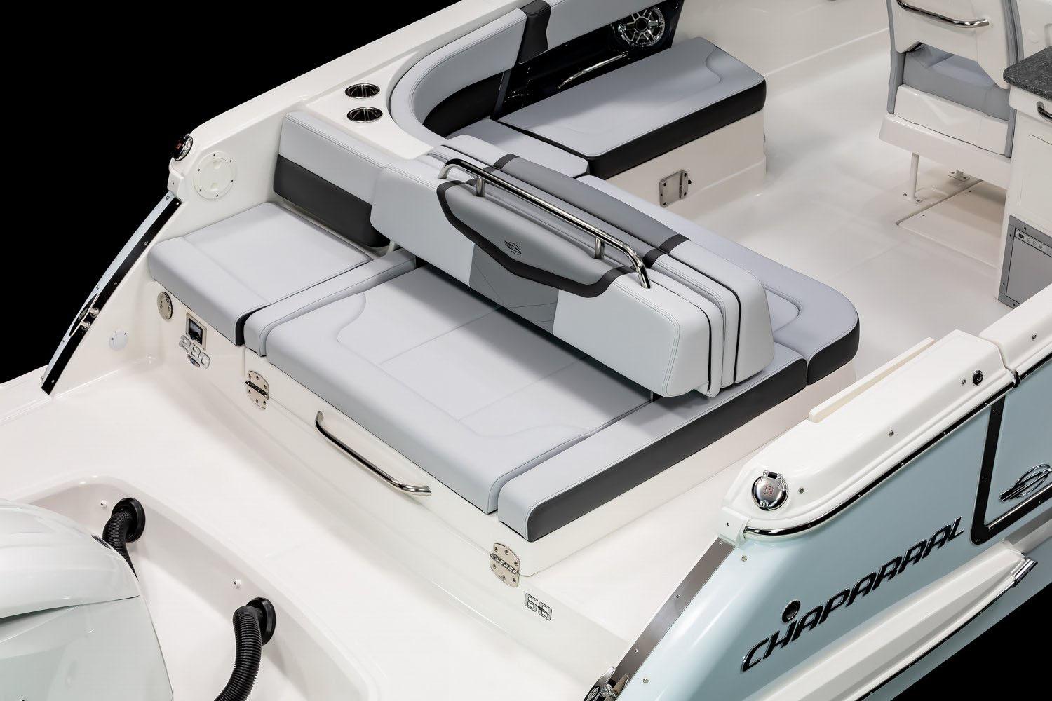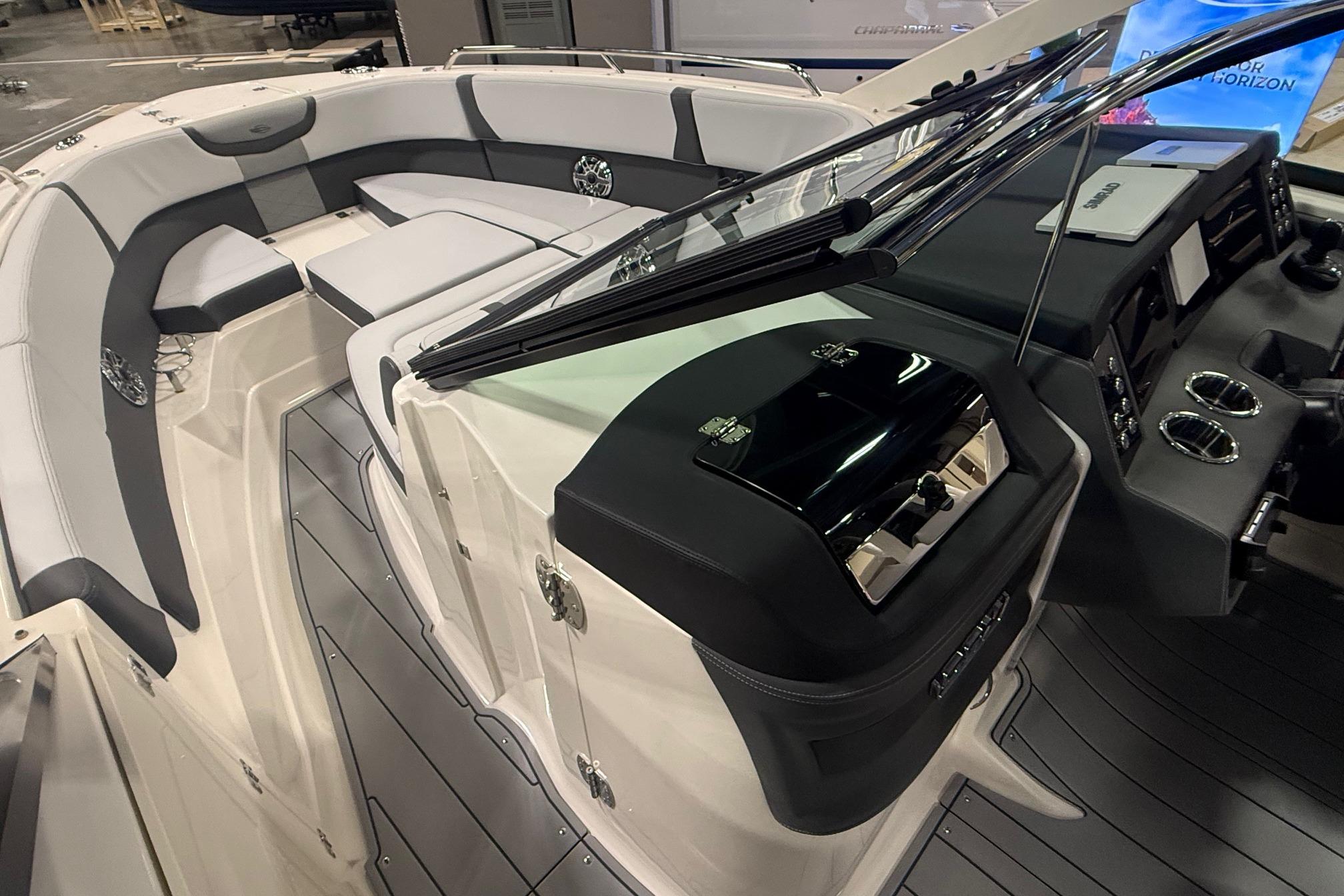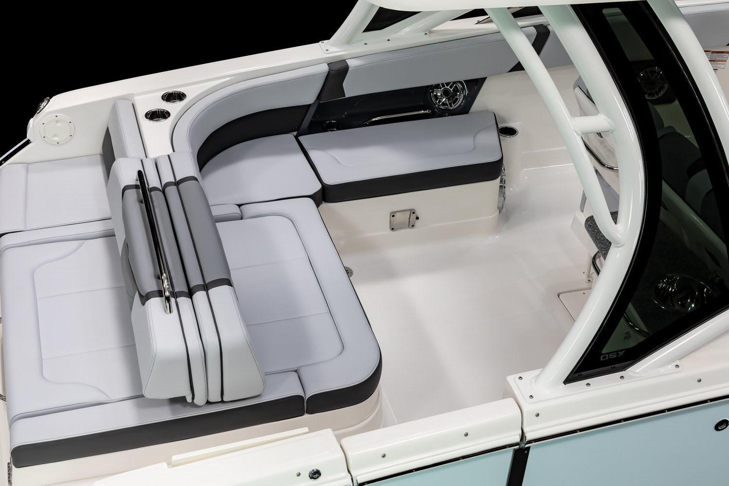 The 280 OSX is packed with premium features that make the boat feel larger than life. A double-wide bowrider seat, hardtop with skylight, and day cabin with an electric toilet are amenities that you won't want to live without after you try them. Supple silicone upholstery, thick bolster cushions, and abundant storage options make your trips comfortable and clutter-free. The Yamaha Helm master System will help you navigate tight marinas while the Bluetooth sound system blasts your favorite tunes. The double helm seat with folding armrests and flip-up bolsters let the captain and a crew member ride in style and comfort.
