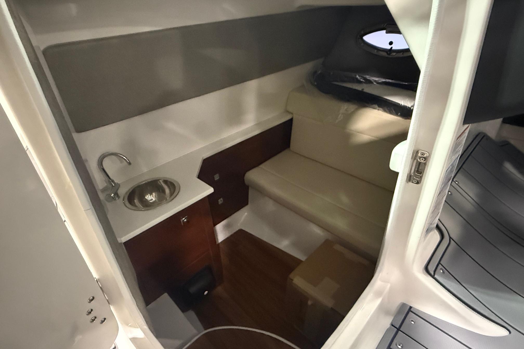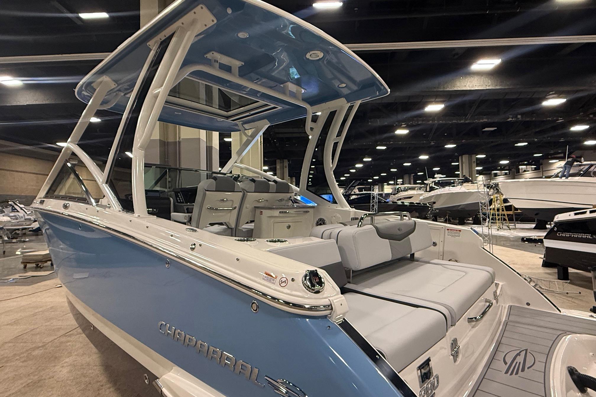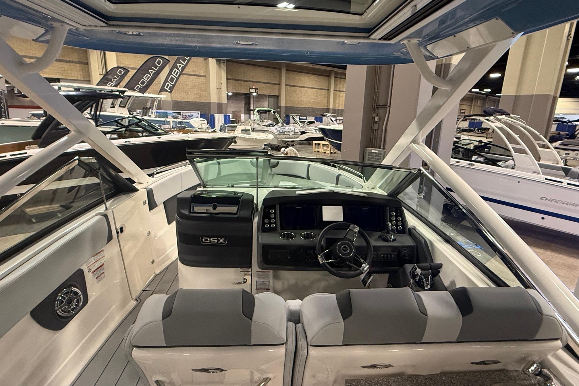 The 280 OSX is packed with premium features that make the boat feel larger than life. A double-wide bowrider seat, hardtop with skylight, and day cabin with an electric toilet are amenities that you won't want to live without after you try them. Supple silicone upholstery, thick bolster cushions, and abundant storage options make your trips comfortable and clutter-free. The Yamaha Helm master System will help you navigate tight marinas while the Bluetooth sound system blasts your favorite tunes. The double helm seat with folding armrests and flip-up bolsters let the captain and a crew member ride in style and comfort.