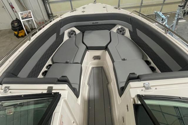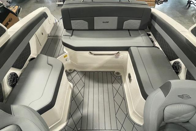 Look no further-the SSX 6 is breaking barriers and setting the standard for on-water comfort and performance. Equipped with a state-of-the-art oversized touchscreen display, the helm is designed for easy access, enhancing ergonomic navigation. The cockpit features spacious U-shaped aft seating, leading to the standard Infinity Power Step swim platform, which offers an exceptional reboarding experience. The SSX 6 is crafted with no compromises when it comes to luxury or power.