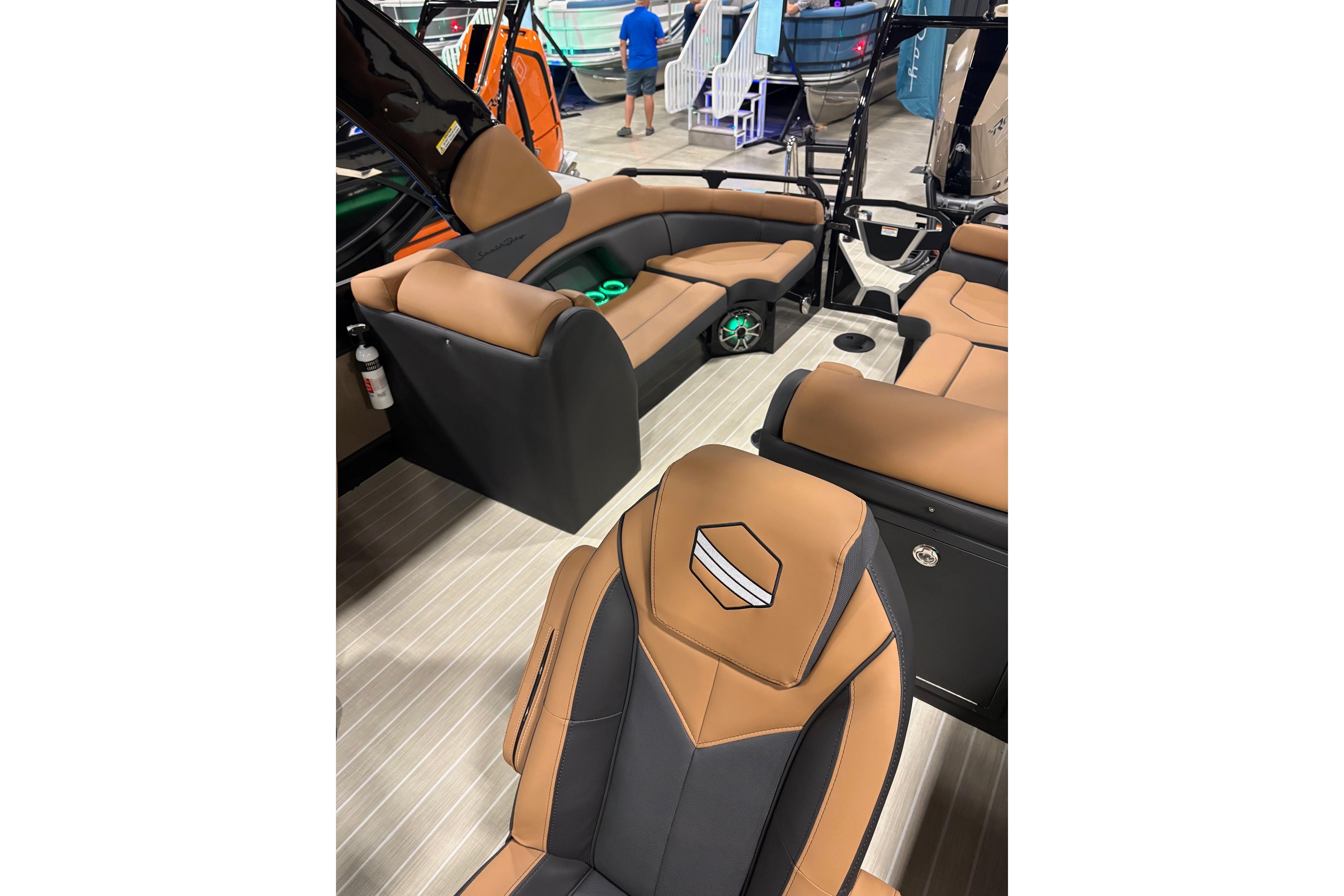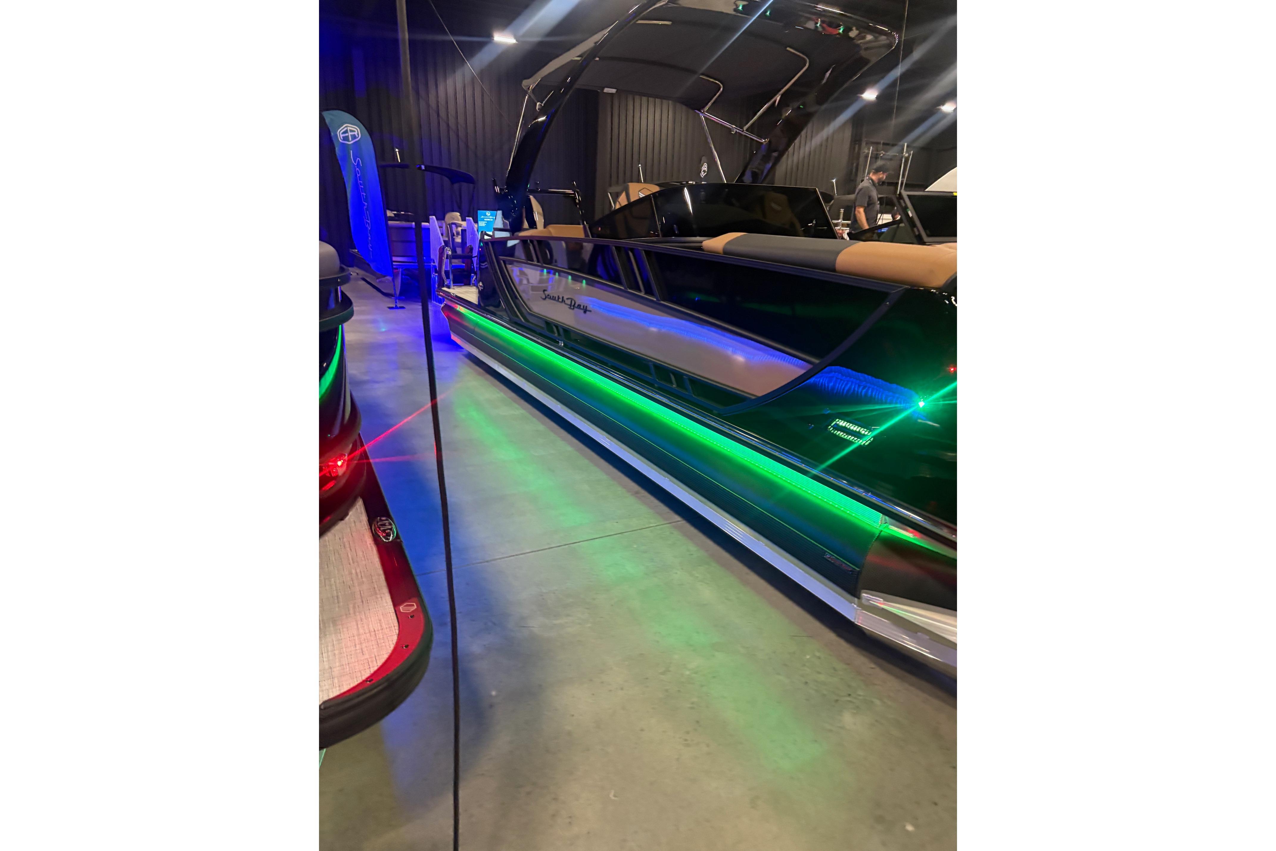 The South Bay Sport is where bold design meets serious power. With features like a 12.3"" touchscreen helm, electric-powered arch, and performance packages rated up to 900hp, it’s built for those who want to turn heads—and leave limits behind.