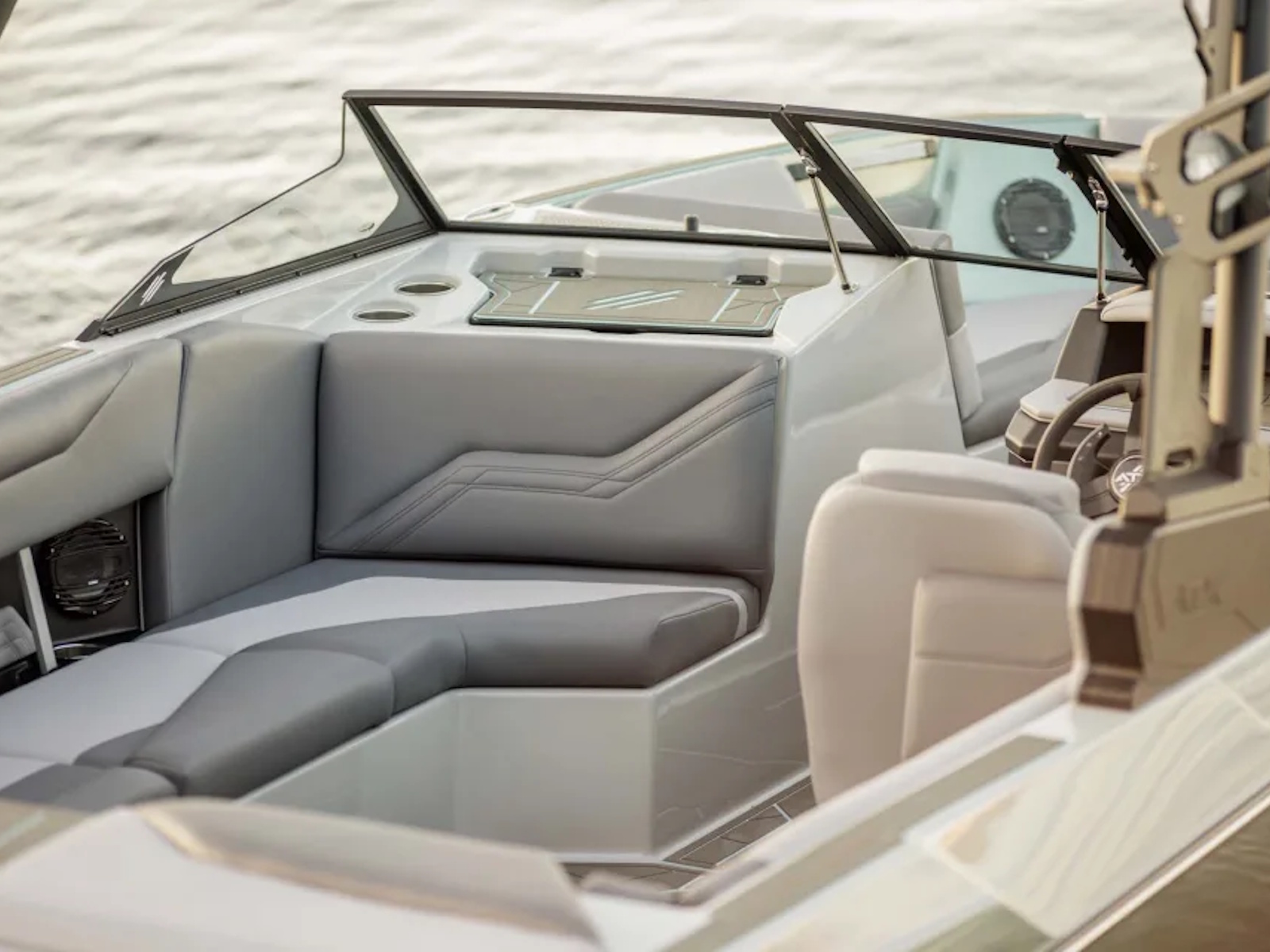 We loaded this boat with features that actually matter to families who use their boats. Built-in transom seating and standard reversible seating because everyone deserves a good spot to watch the action. This is what you get when you design around how people really boat.