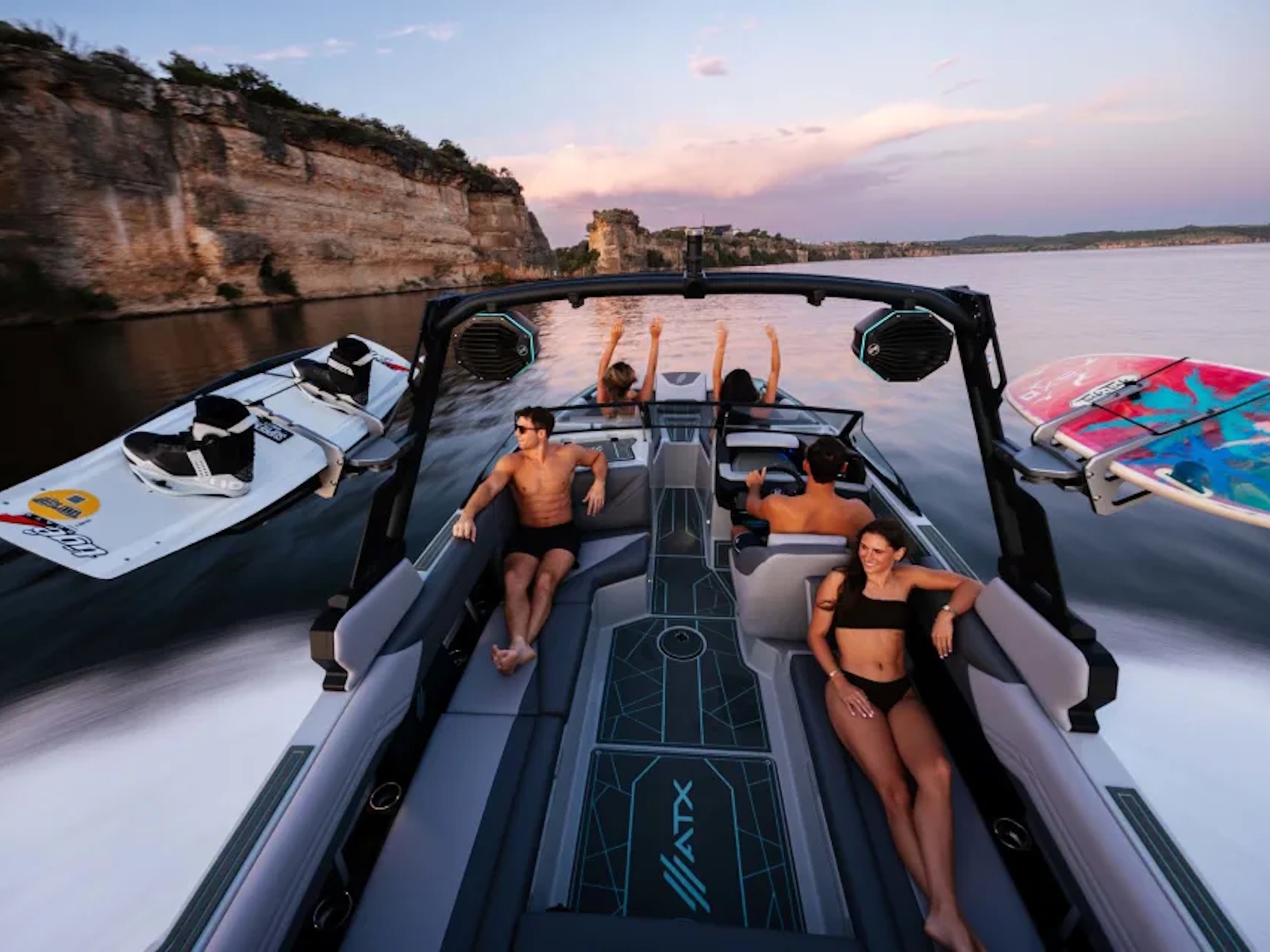 The ATX 24 Type-S delivers everything your crew needs in one value-packed package. We maximized space, performance, and value so you get the big boat experience without the big boat price tag. This is what happens when you build a wakesurf boat that works as hard as your family plays.