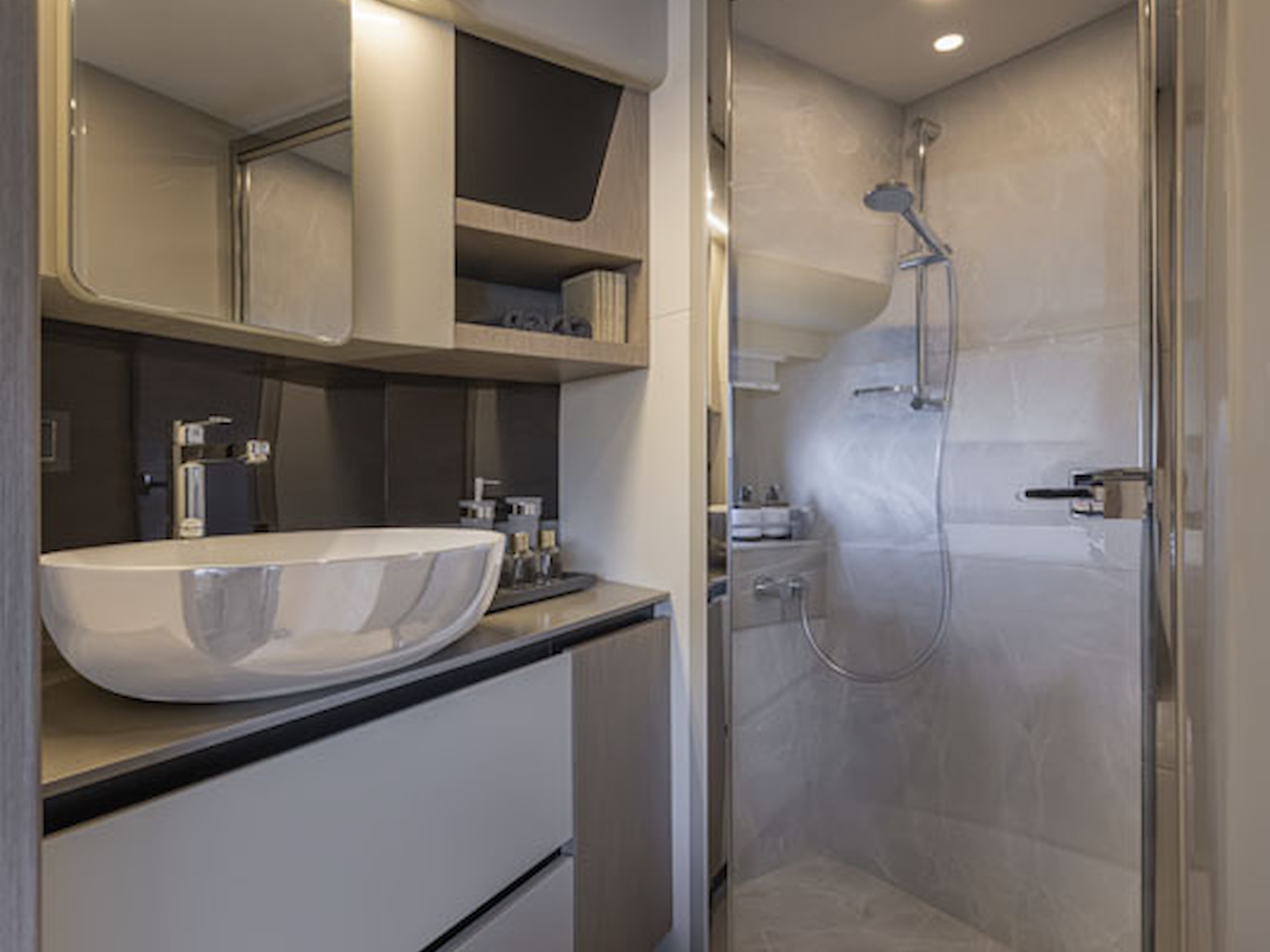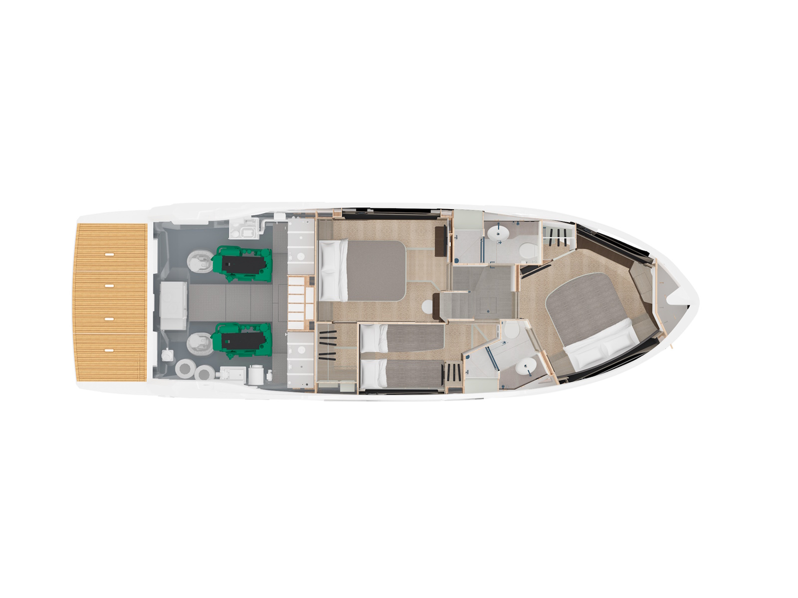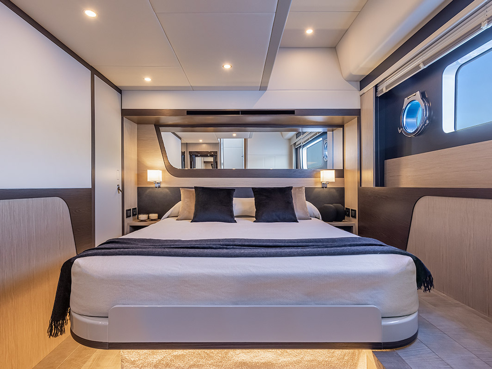 Innovative and forward-looking engineering, to ensure a unique journey also below deck, where three comfortable cabins with high ceilings offer unparalleled livability for yachts of this size.