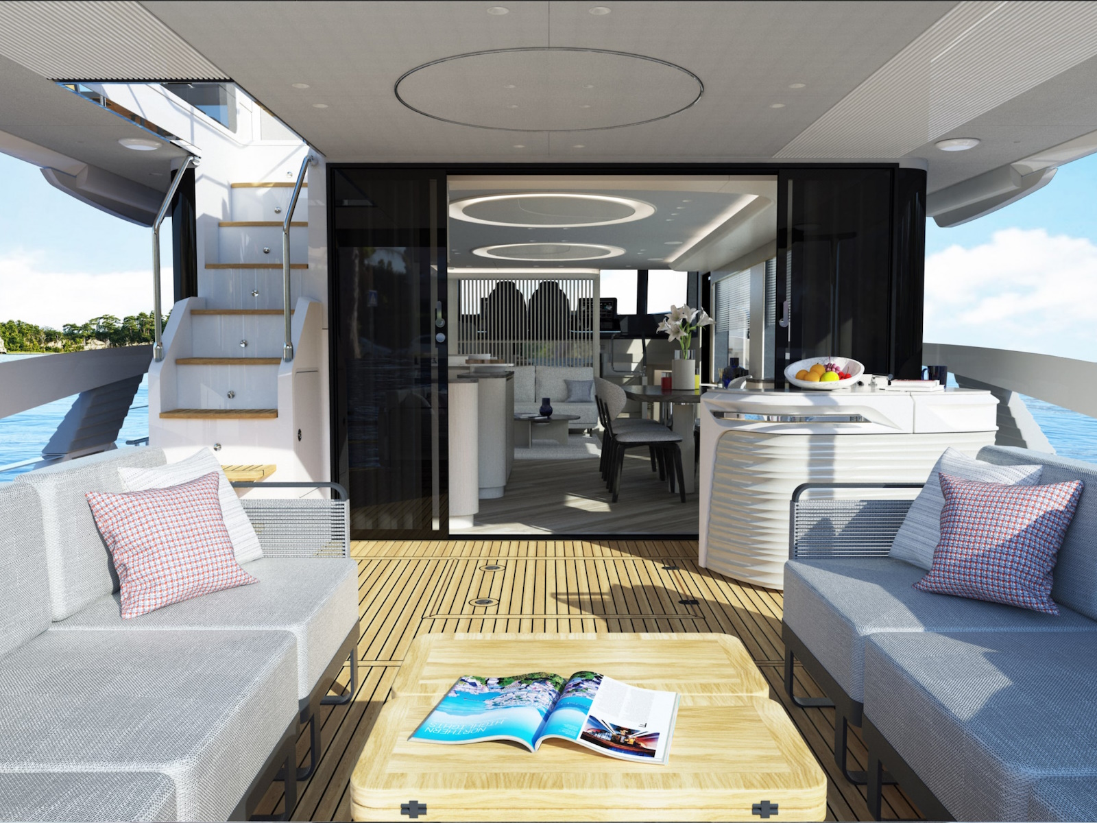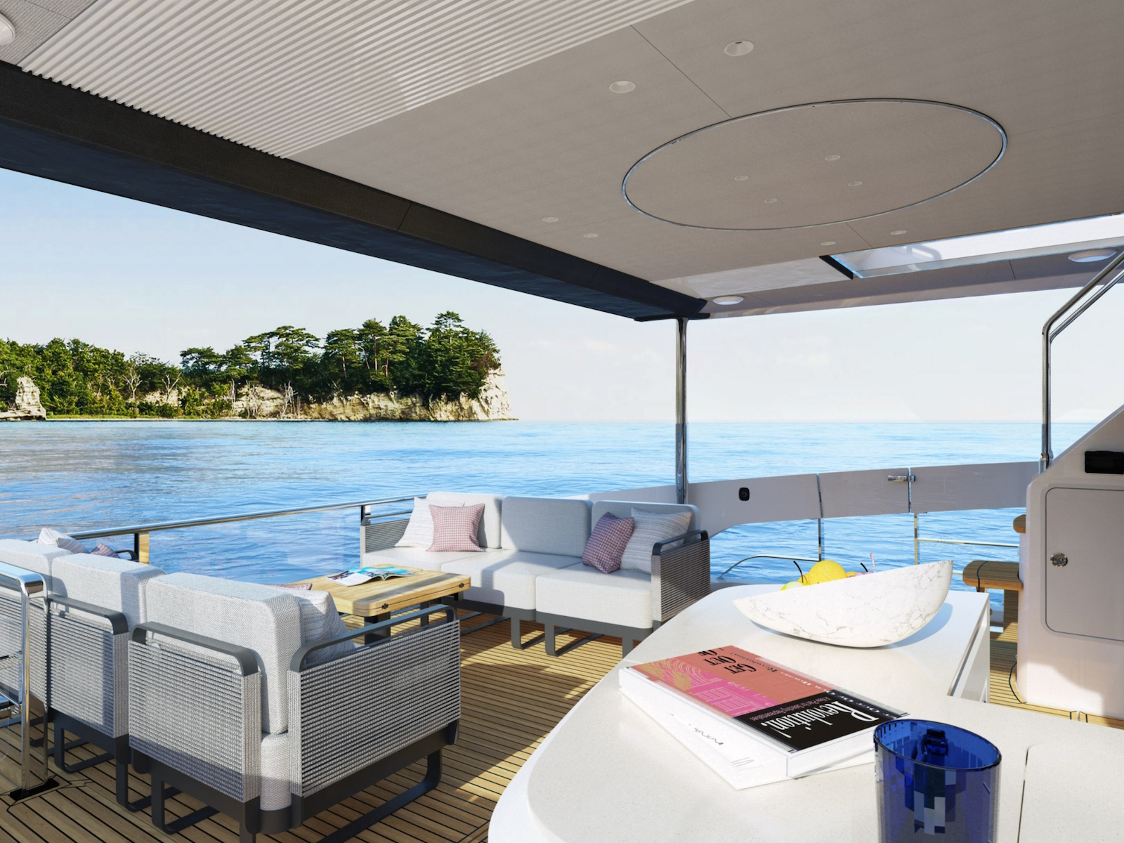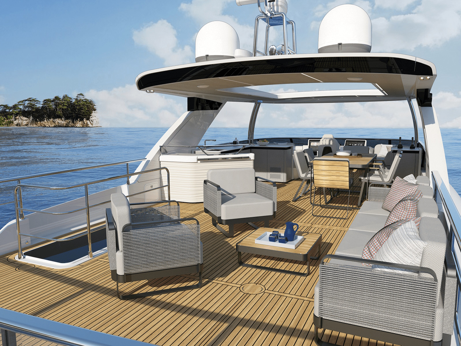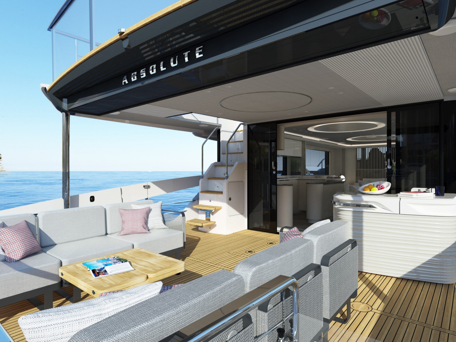 The new Navetta 70 introduces innovative design elements, elegant and on-trend, without forgoing some distinctive features of the Absolute brand, such as the iconic side glass railings.