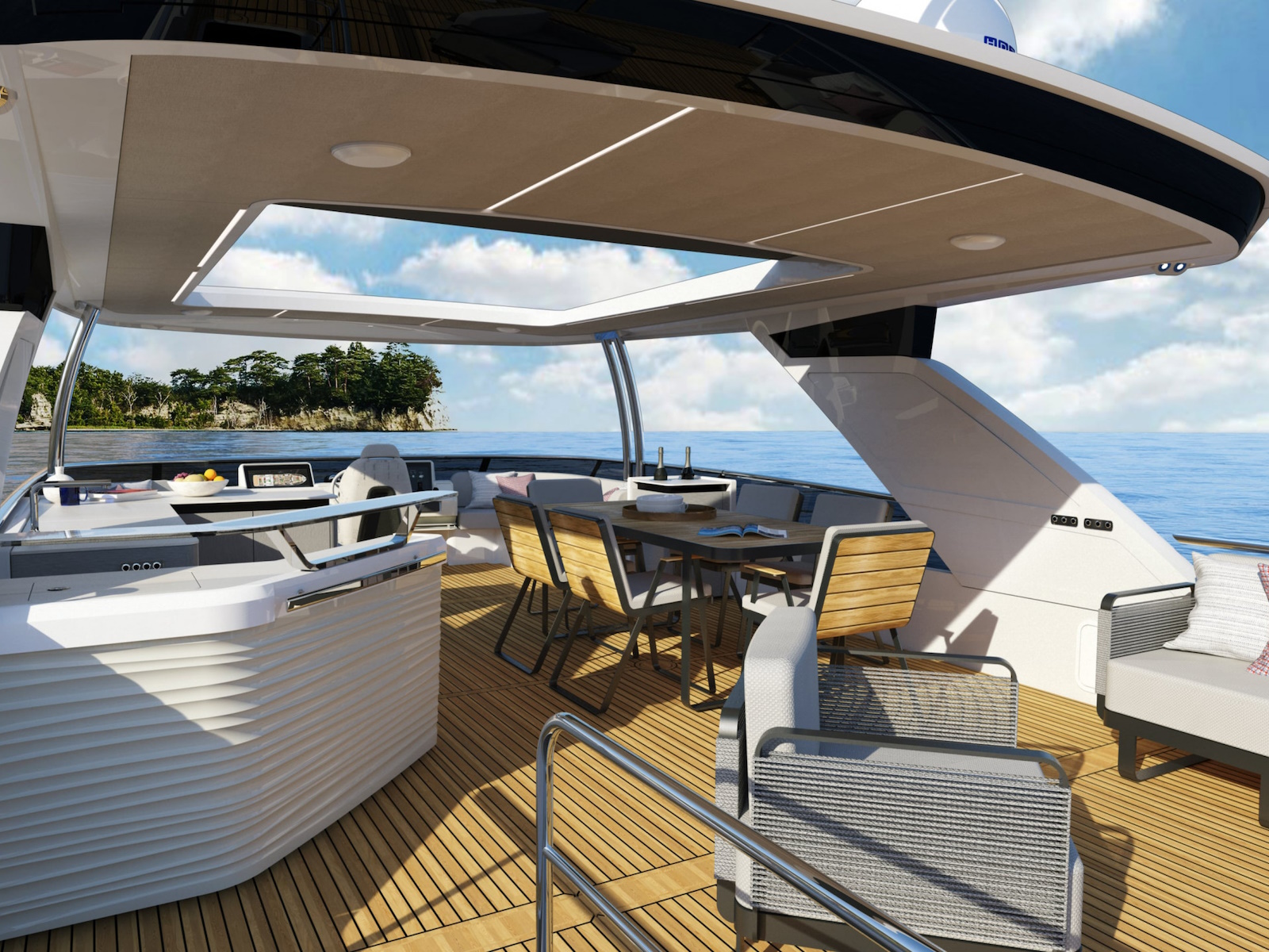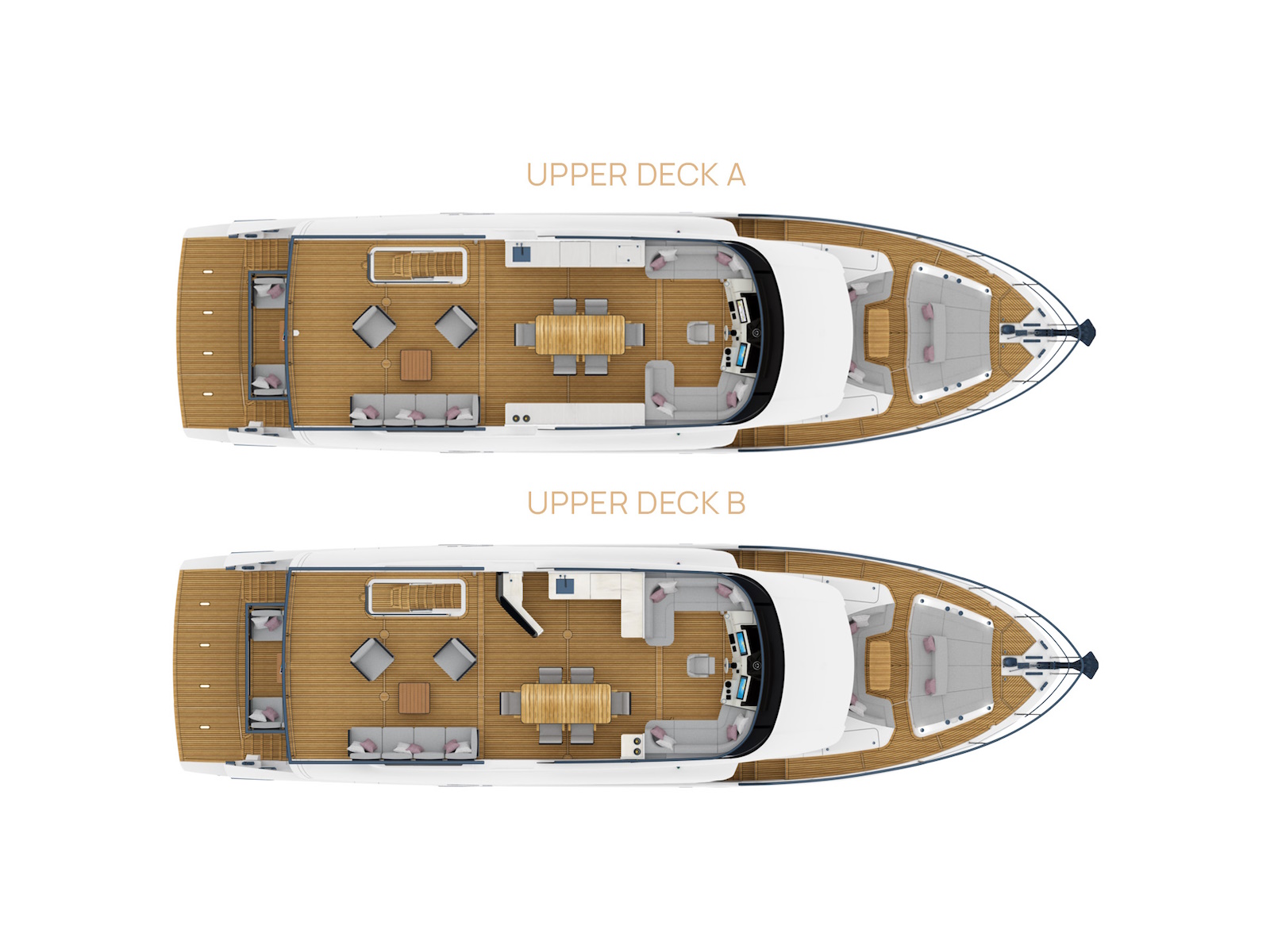 A completely revamped style element is undoubtedly the flybridge, available in two different configurations: A and B.
