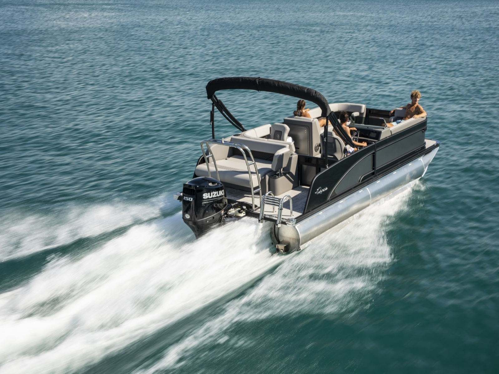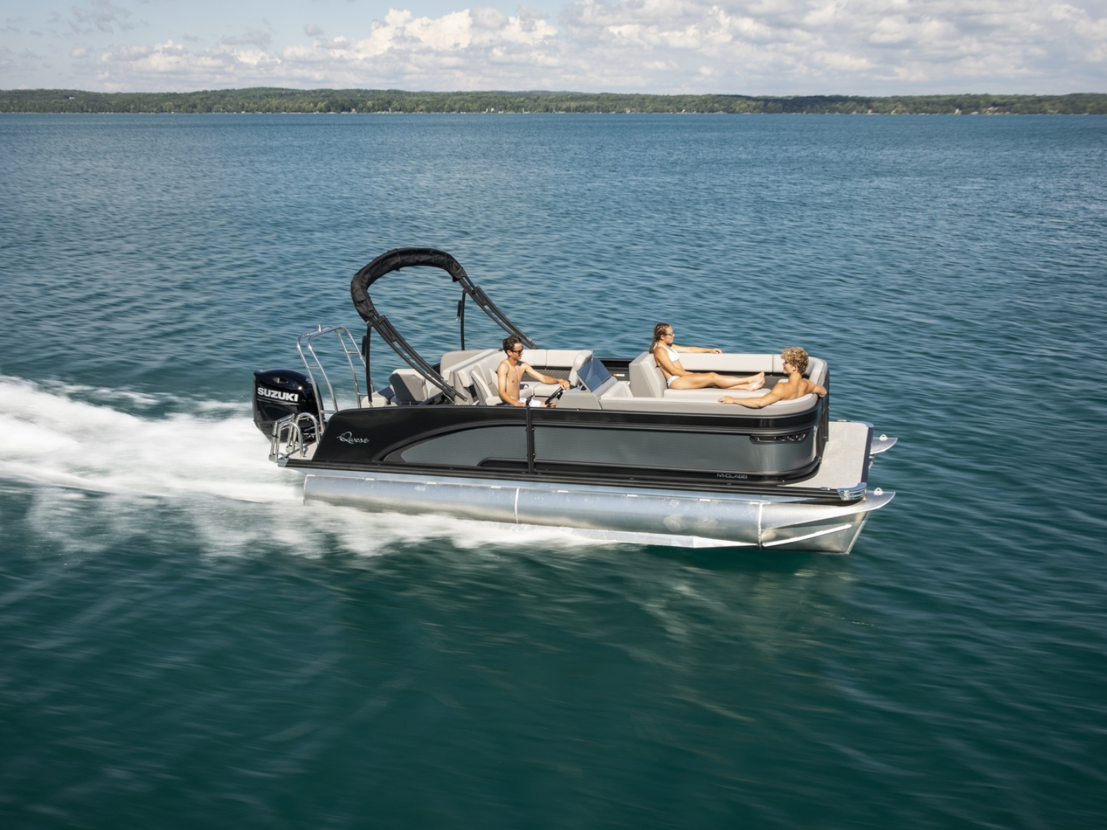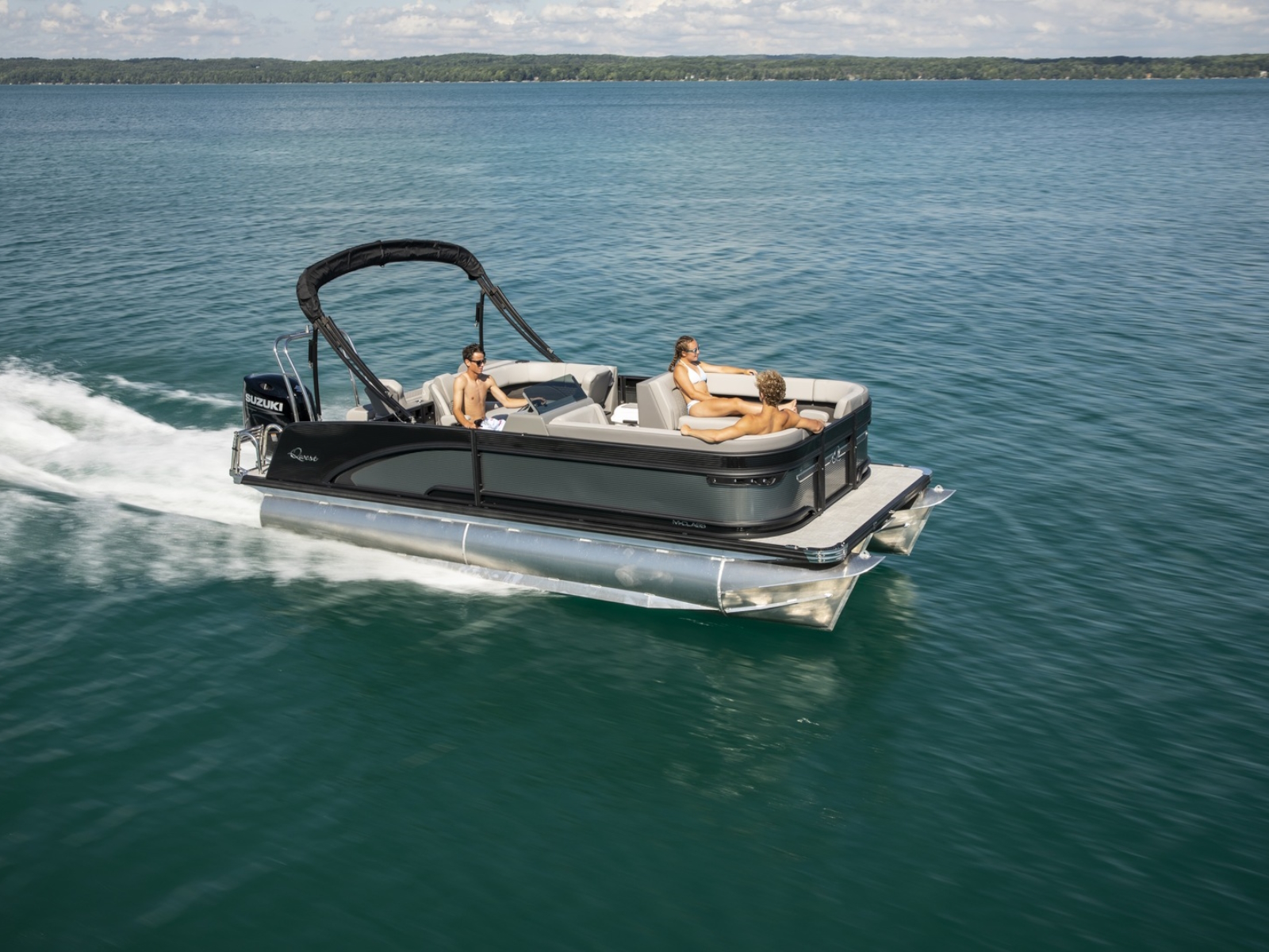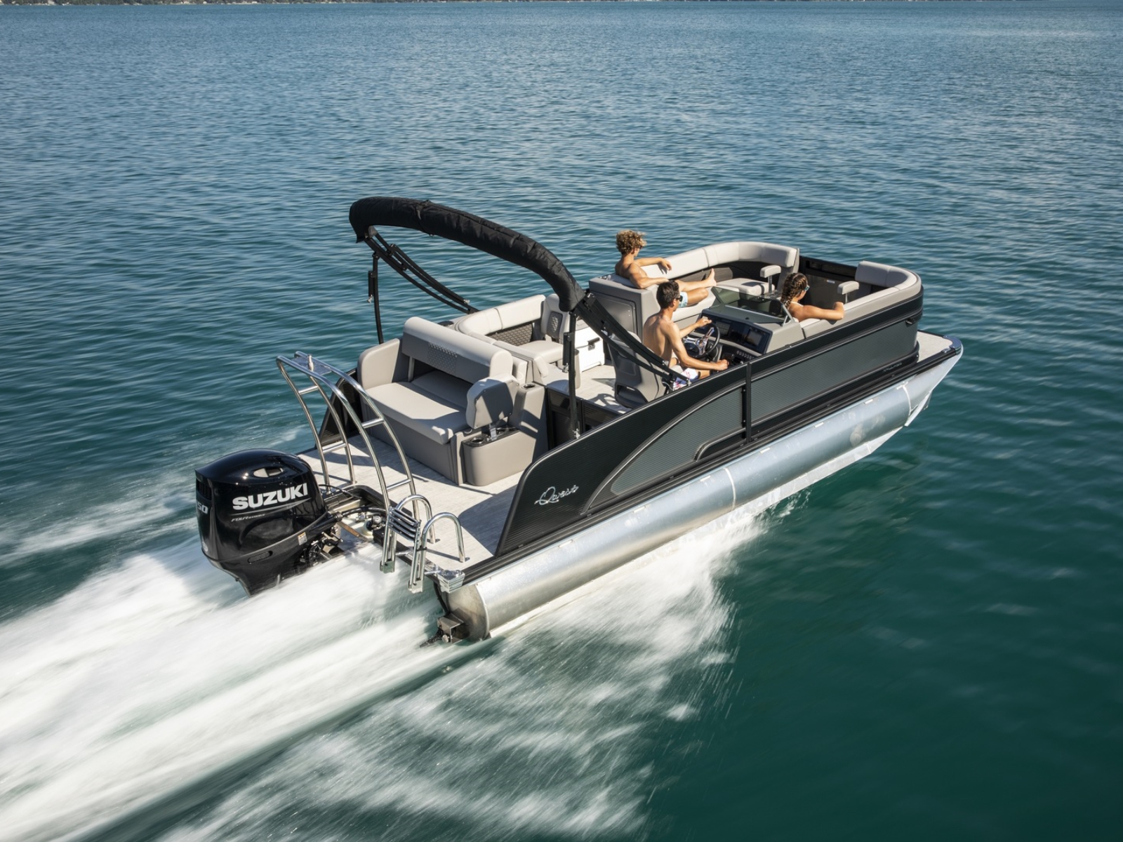 A Hawaiian term meaning a porch with no sides, our Lanai Series features a usable rear facing lounge and a spacious open “porch” that is perfect for jumping, swimming, fishing, as well as an open ingress to the boat. The ultimate fun-giver, the Lanai boasts Qwest Pontoon’s widest range of sizes.