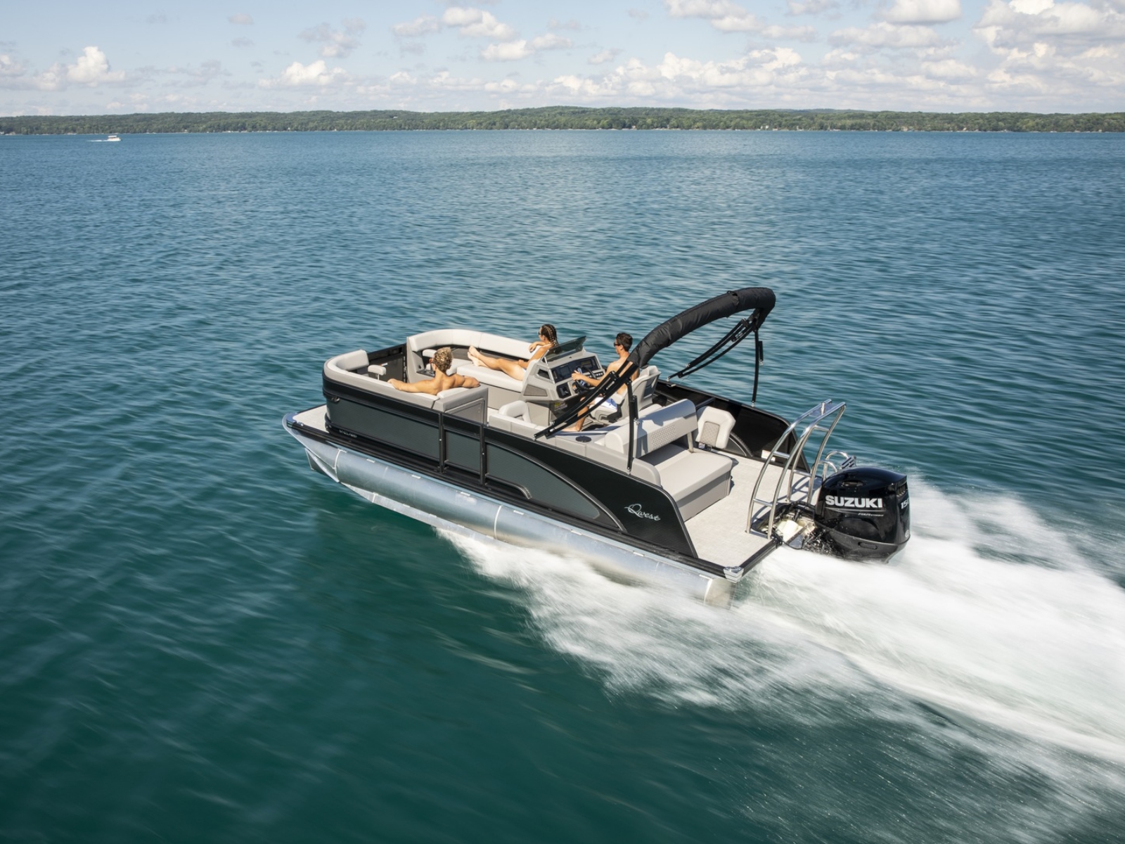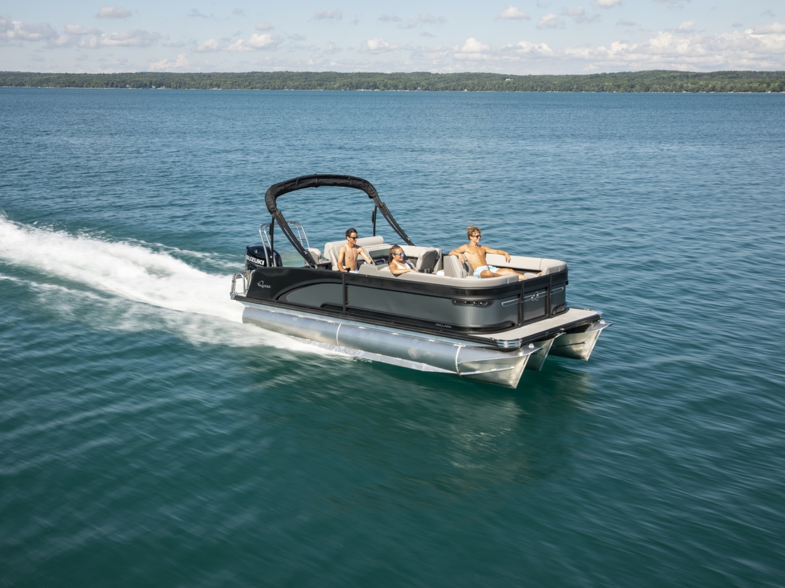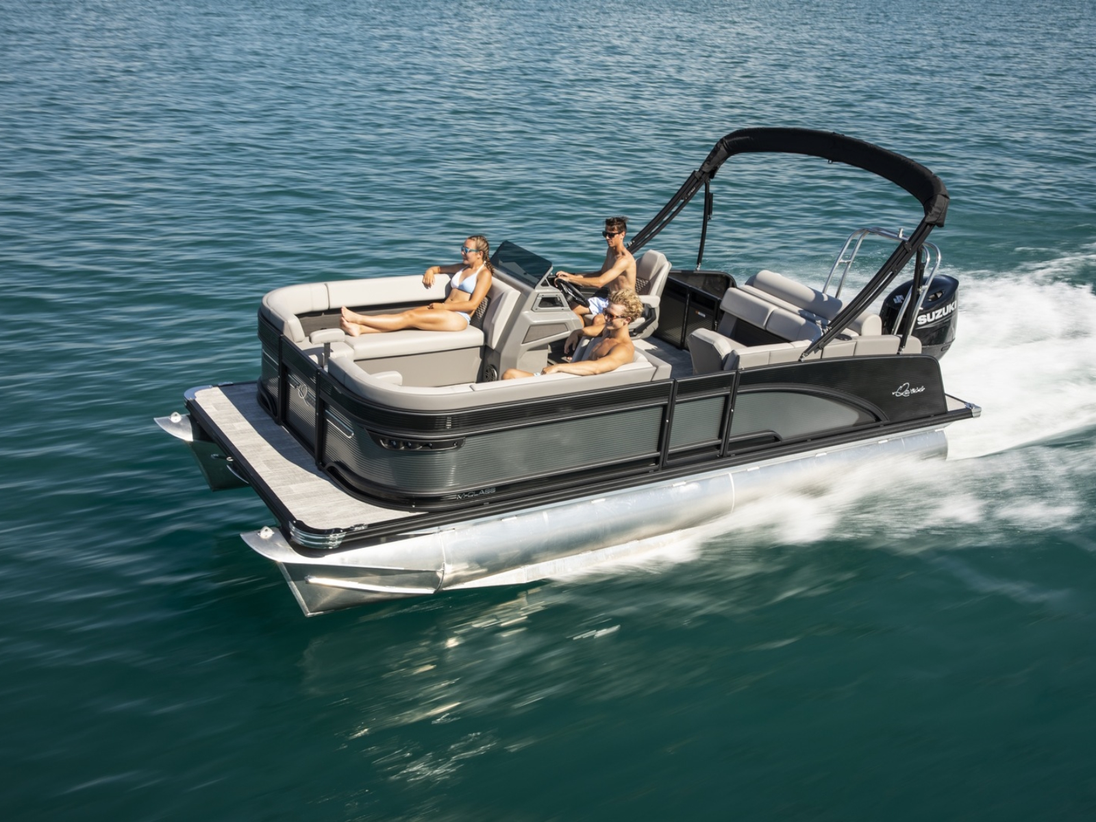 A Hawaiian term meaning a porch with no sides, our Lanai Series features a usable rear facing lounge and a spacious open “porch” that is perfect for jumping, swimming, fishing, as well as an open ingress to the boat. The ultimate fun-giver, the Lanai boasts Qwest Pontoon’s widest range of sizes.