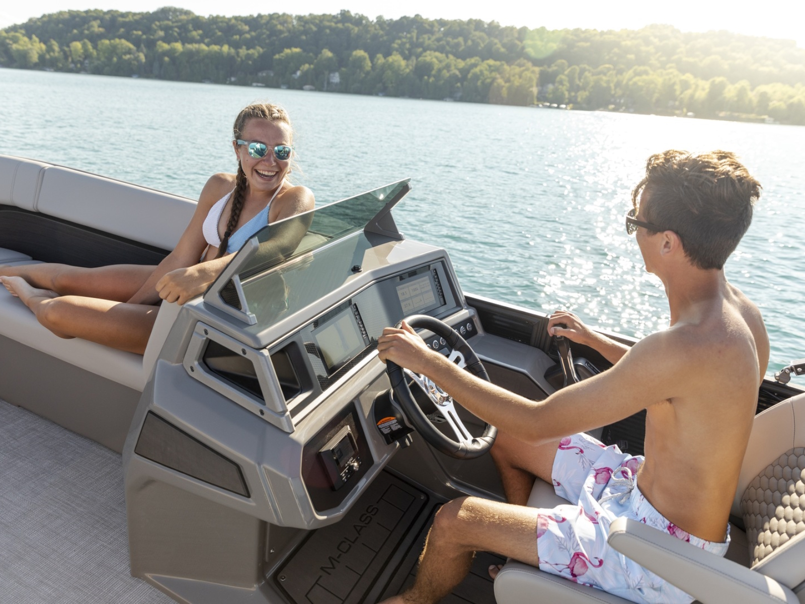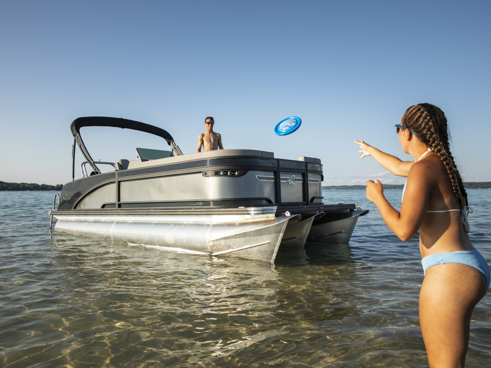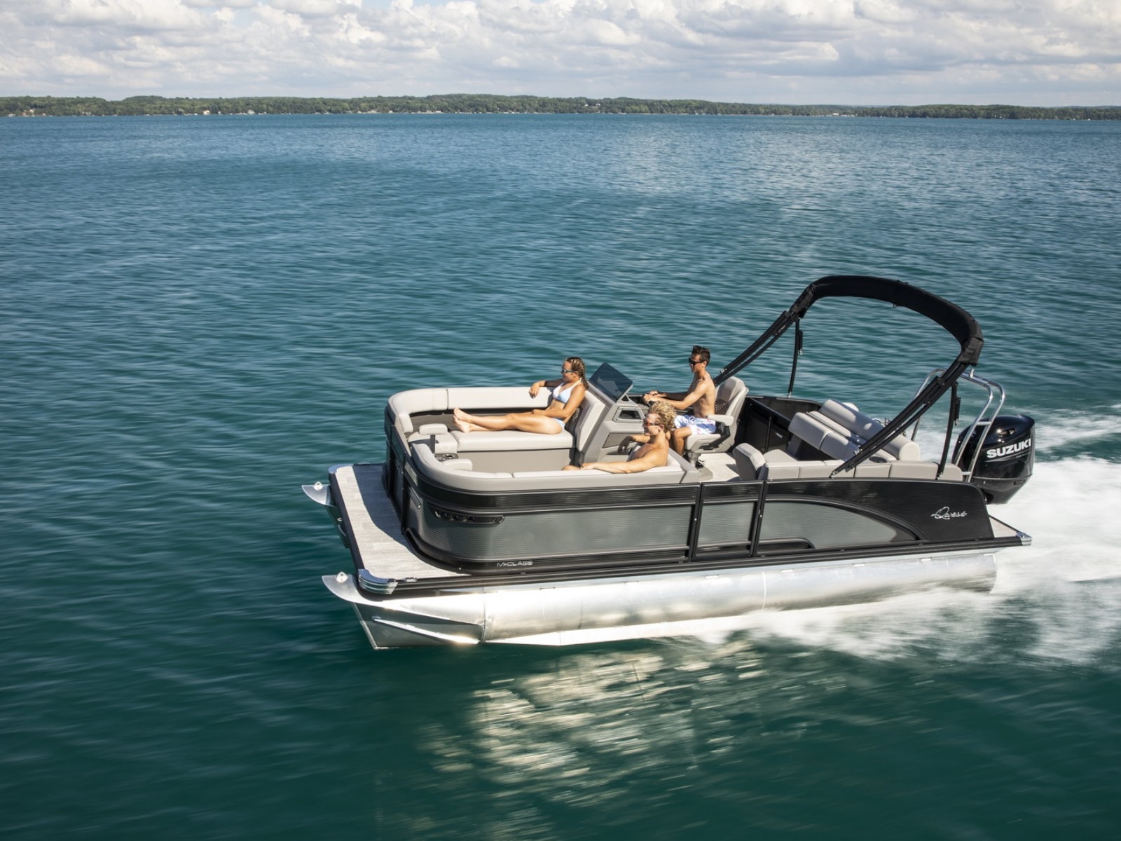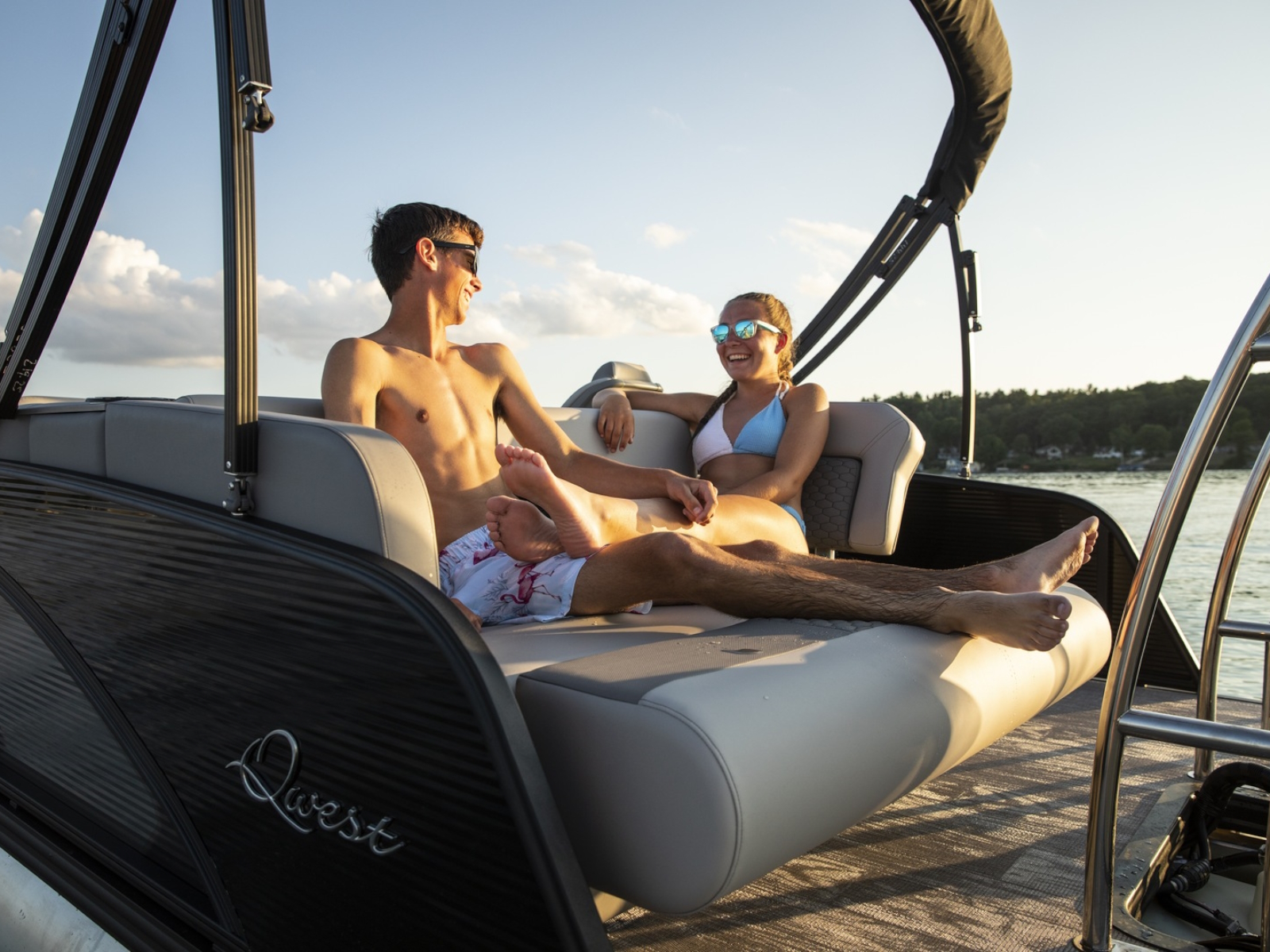 A Hawaiian term meaning a porch with no sides, our Lanai Series features a usable rear facing lounge and a spacious open “porch” that is perfect for jumping, swimming, fishing, as well as an open ingress to the boat. The ultimate fun-giver, the Lanai boasts Qwest Pontoon’s widest range of sizes.