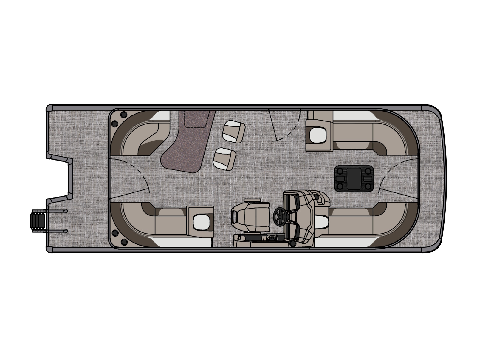 25 gallon direct fill transom tank | 24 gallon remote fill tank under sundeck with SST gas cap & vent (CR) | 38 gallon direct fill tank in center pontoon (ELW/VRBW)
