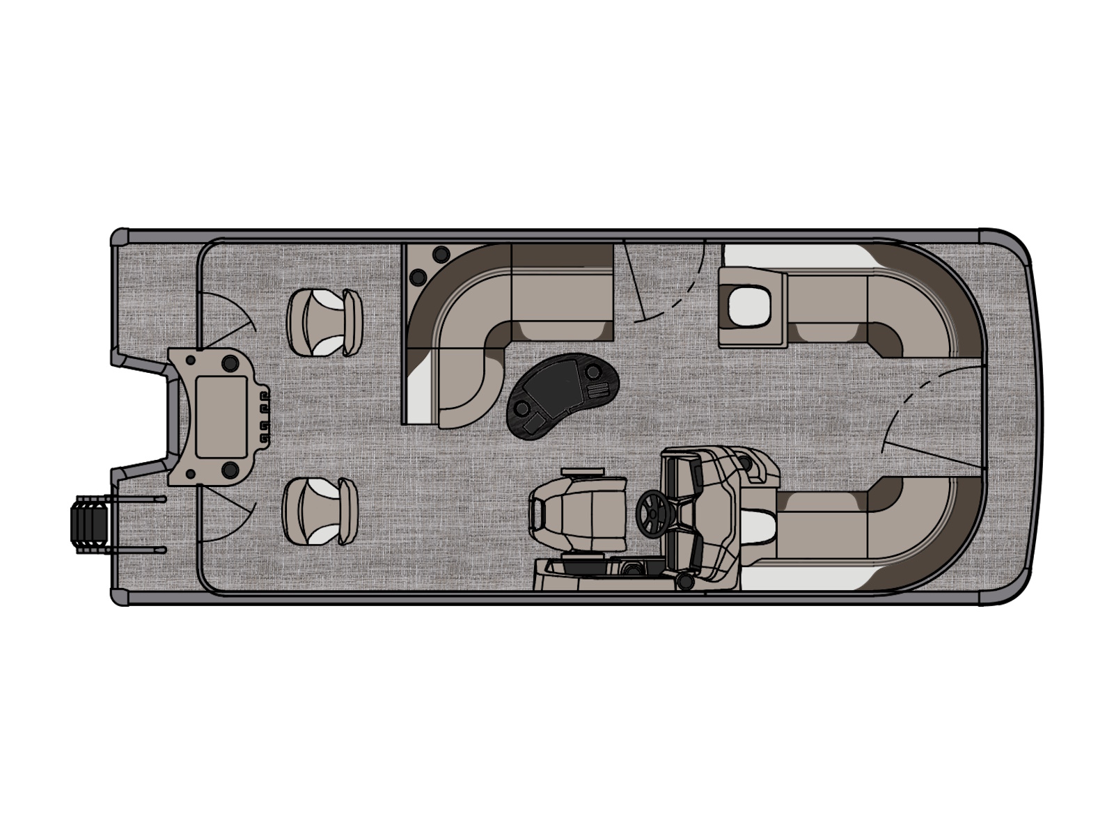 25 gallon direct fill transom tank | 24 gallon remote fill tank under sundeck with SST gas cap & vent (CR) | 38 gallon direct fill tank in center pontoon (ELW/VRBW)