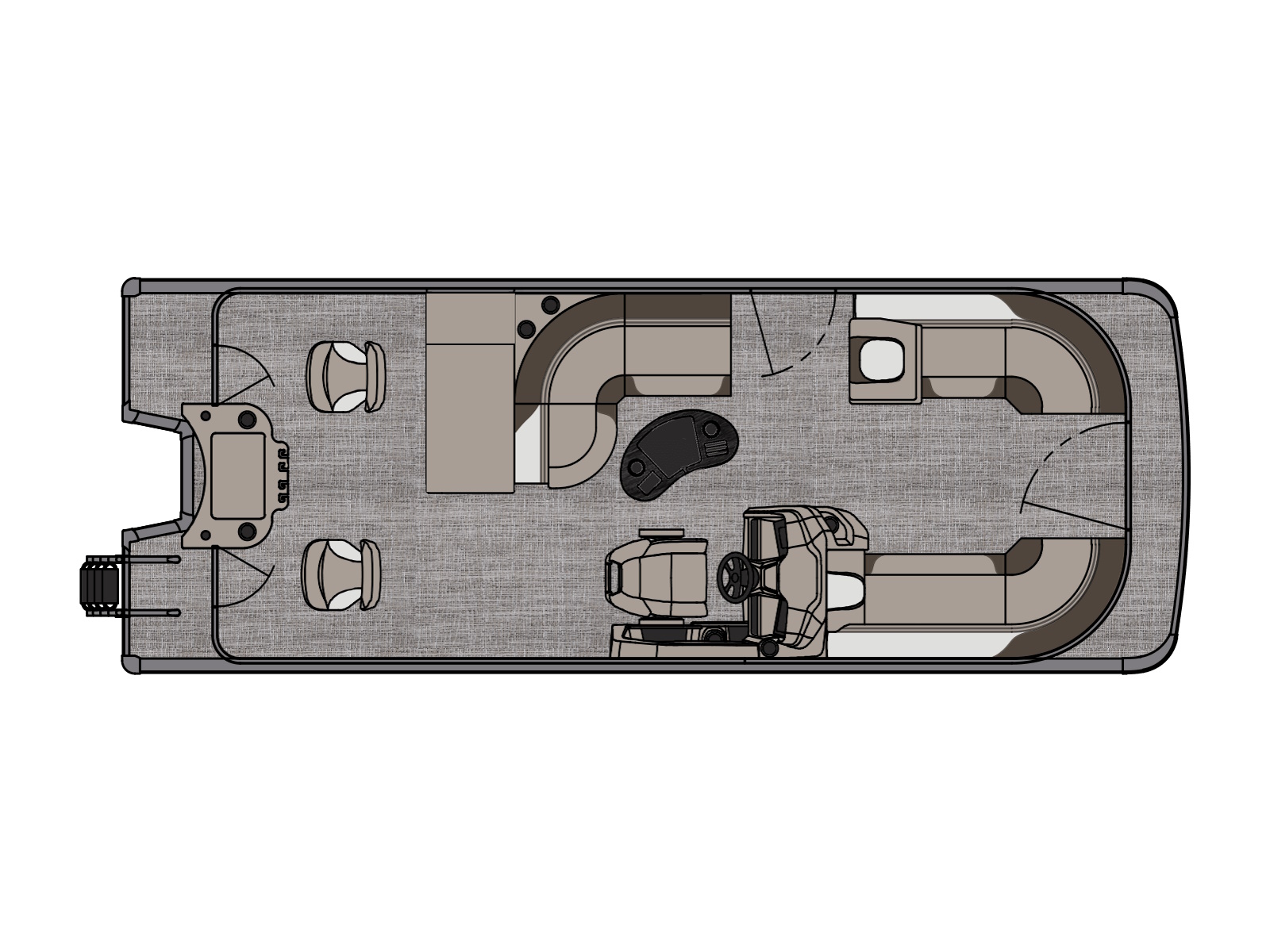 25 gallon direct fill transom tank | 24 gallon remote fill tank under sundeck with SST gas cap & vent (CR) | 38 gallon direct fill tank in center pontoon (ELW/VRBW)