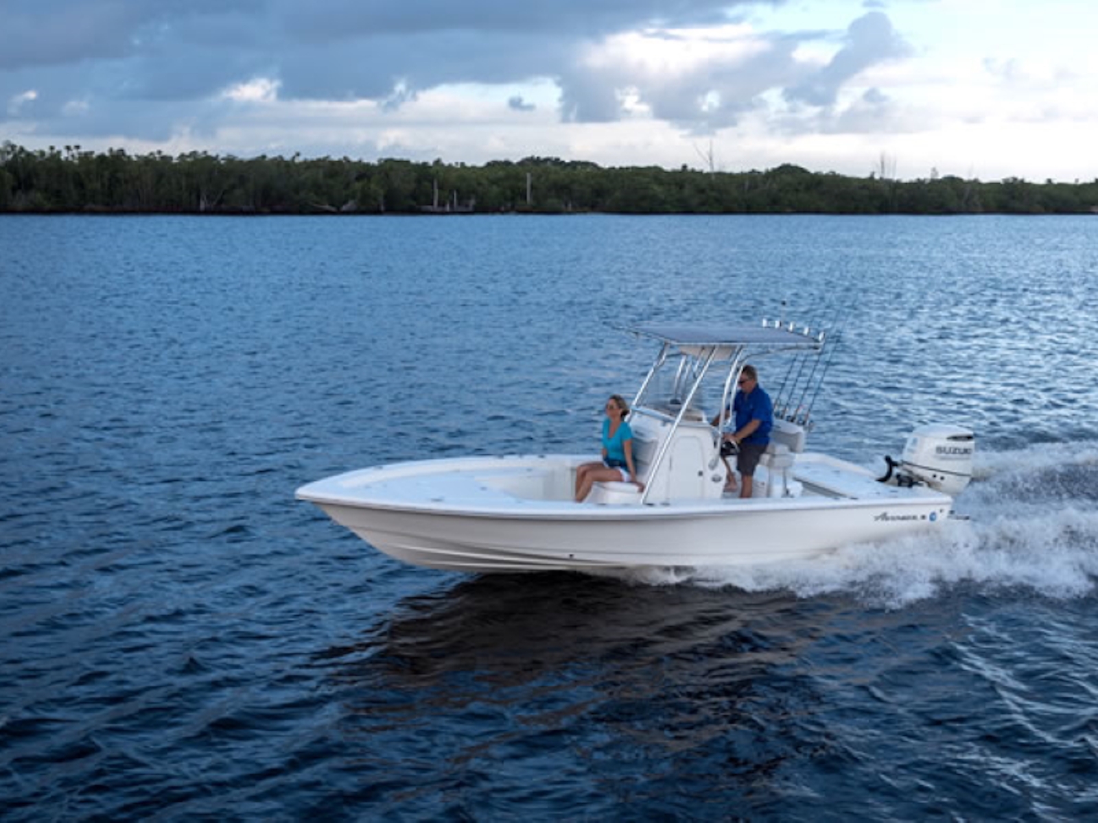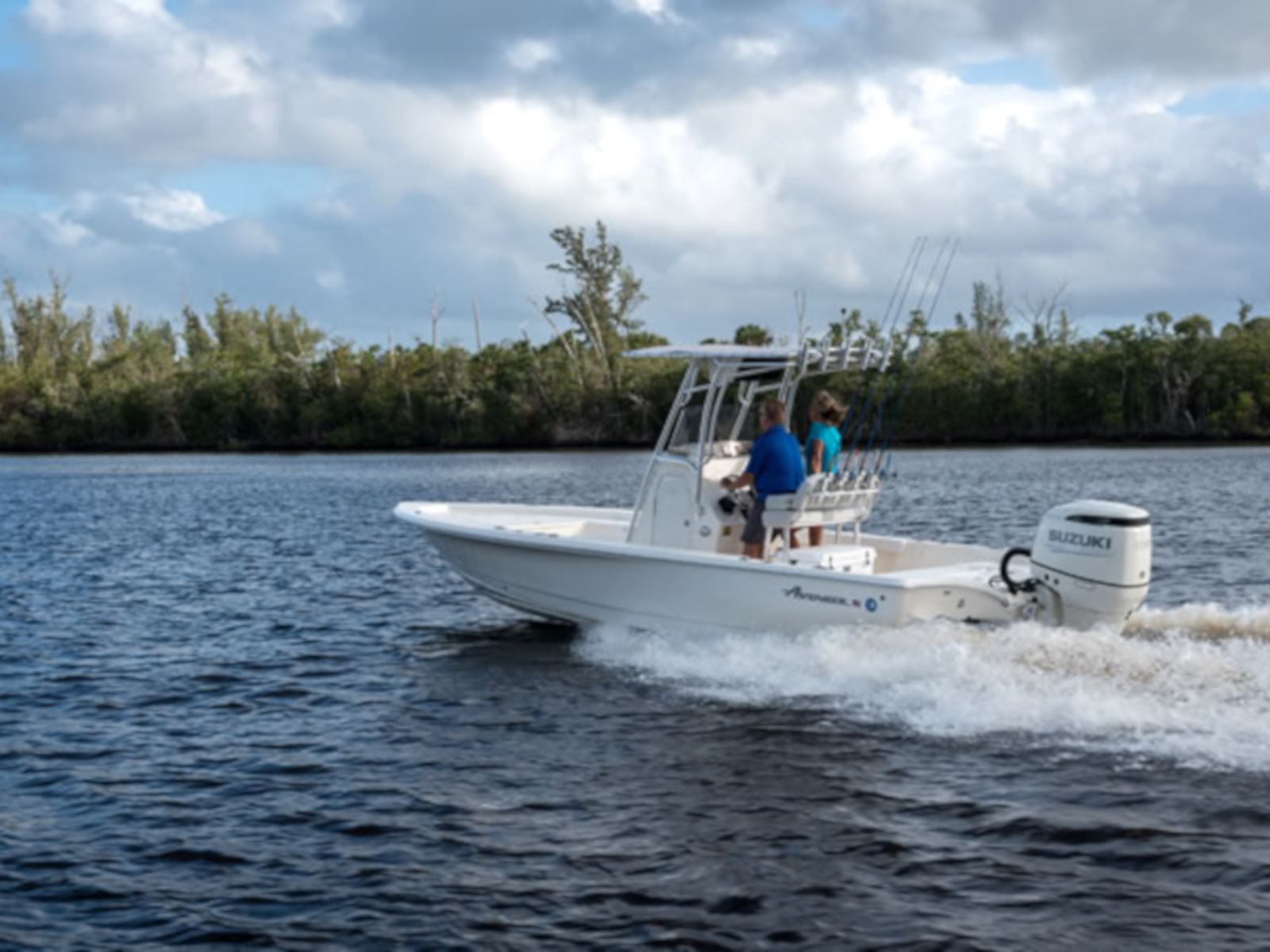 The Avenger AV-24 has an overall length of 24 feet 8 inches and a beam of 8 1/2 feet .... built with the serious fisherman in mind. This stable fishing platform is complimented with standard equipment like two live release and one bait well, dual lockable rod storage boxes, and an anchor locker built to accommodate both bow and stern anchors. The Avenger AV-24 is rated for a single engine of up to 300 HP and features an 89 gallon capacity fuel load, making your favorite fishing spot easily and quickly accessible.