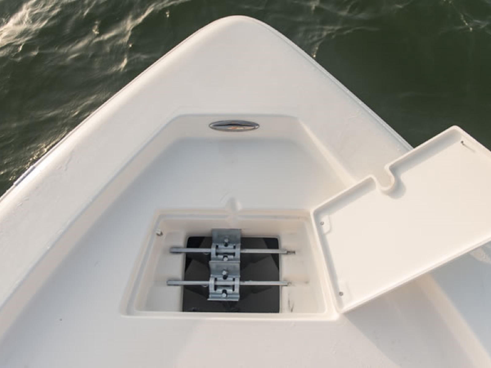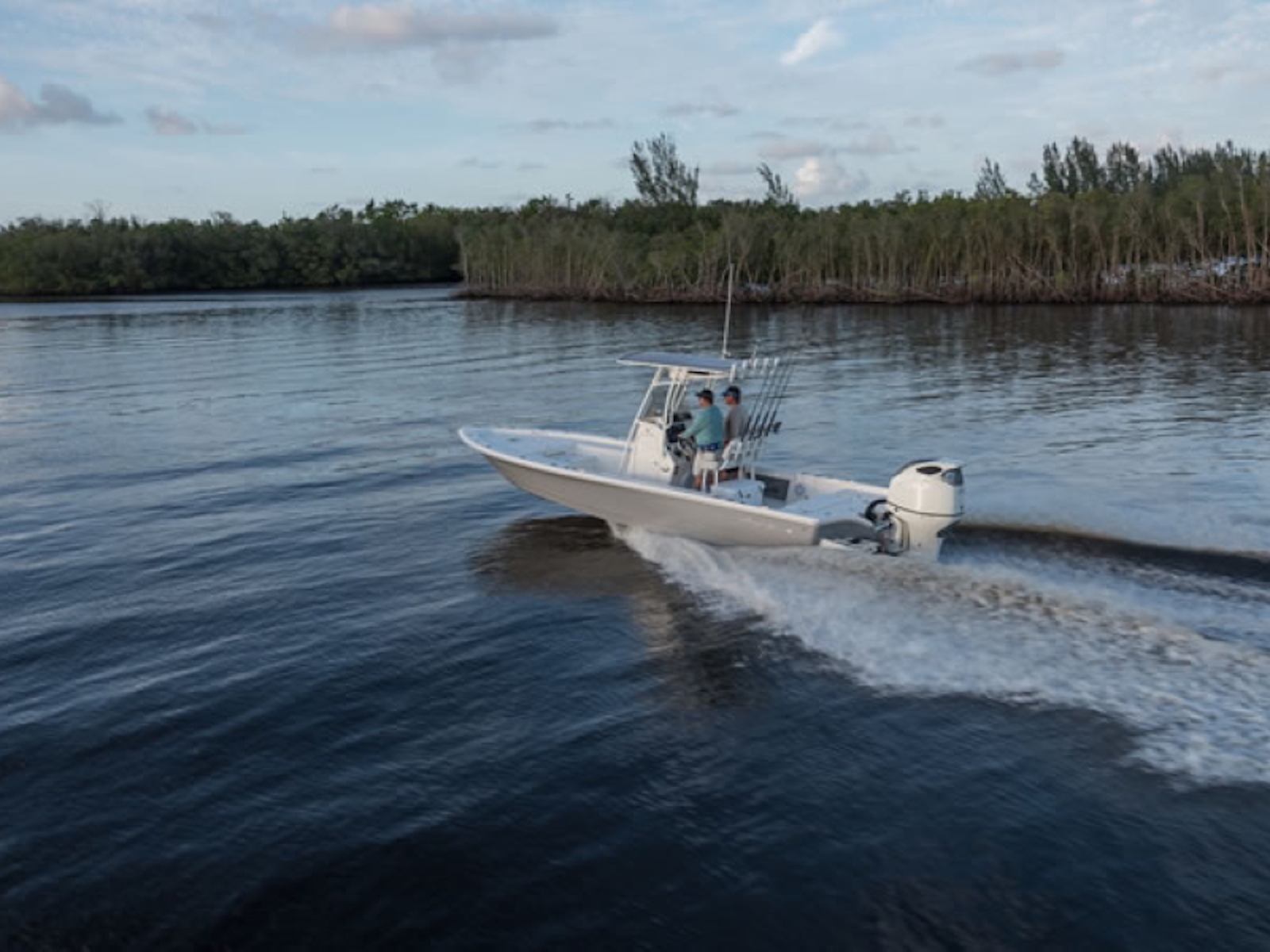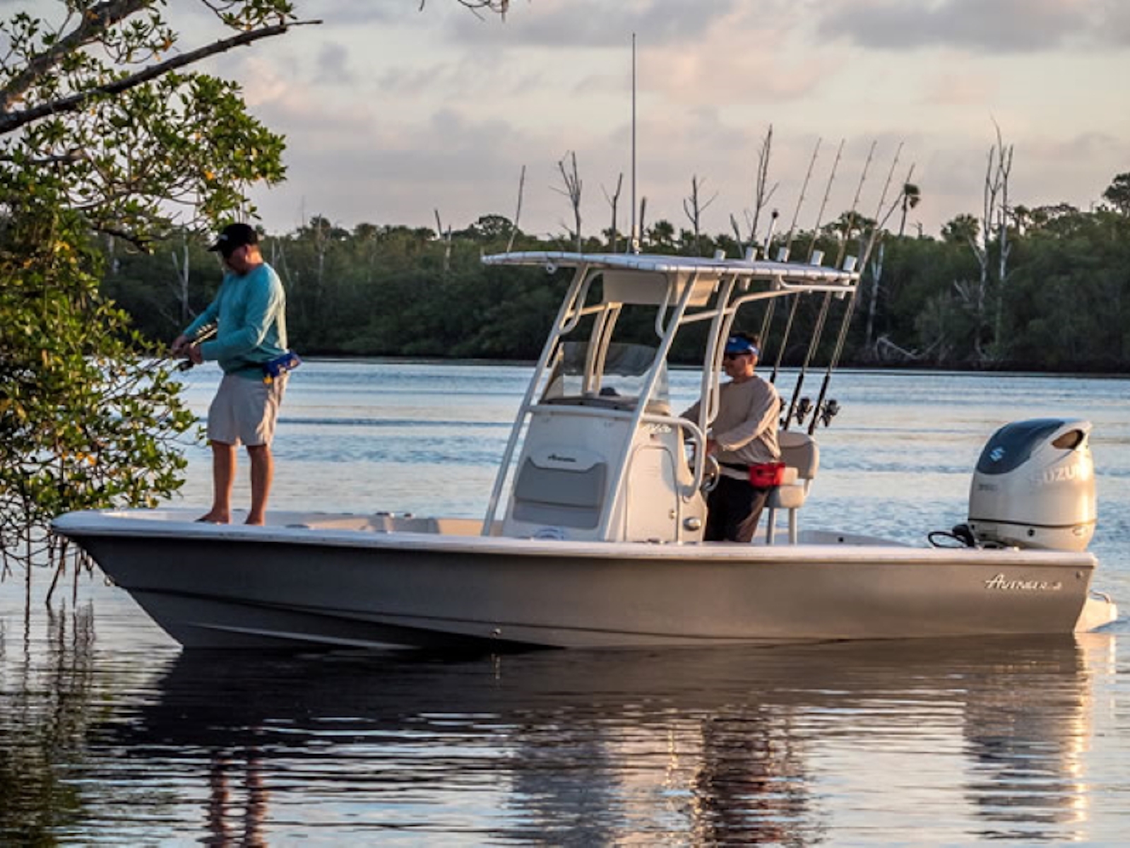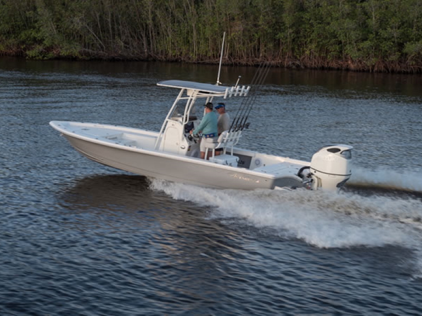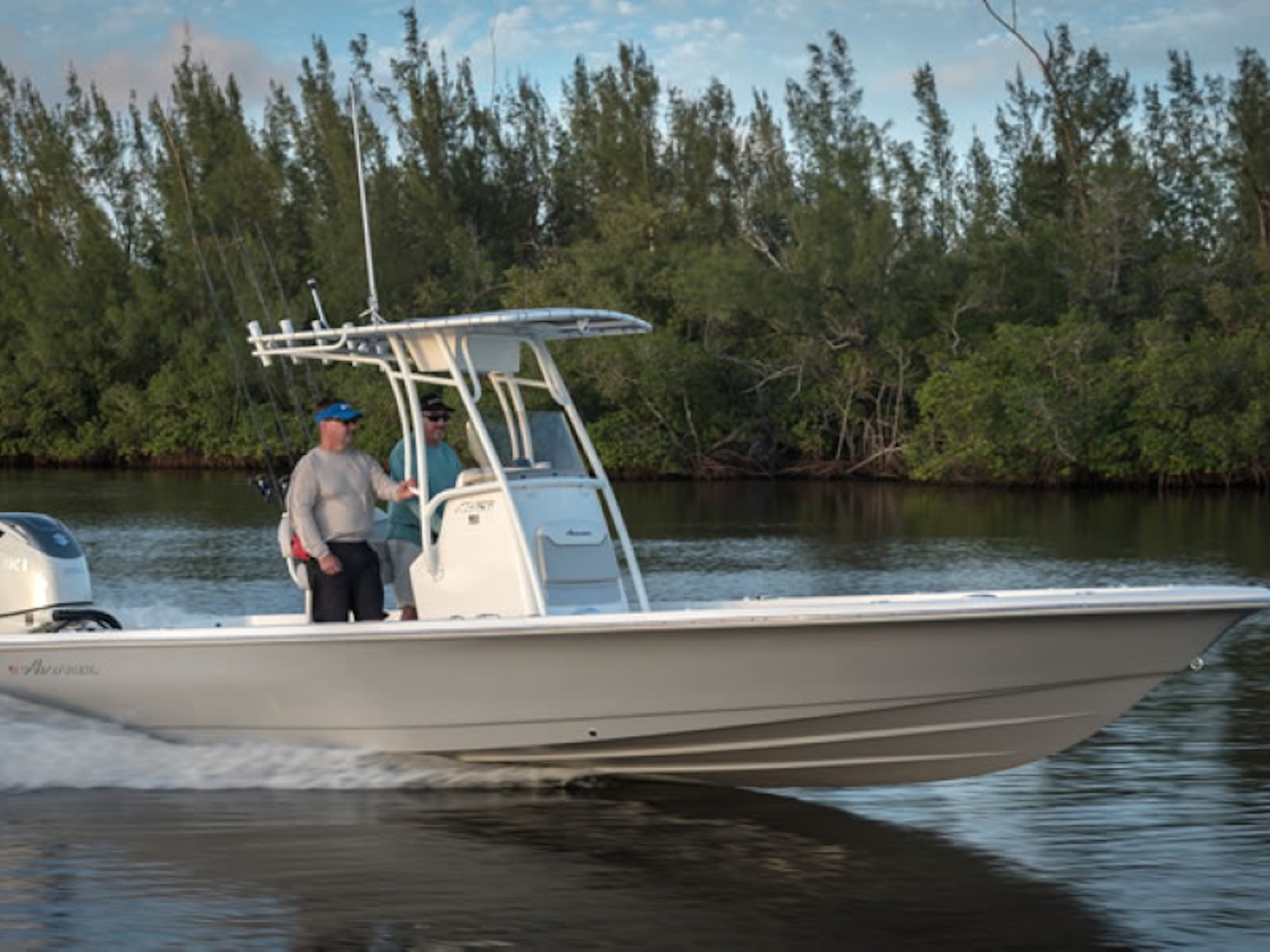 The Avenger AV-26 has an overall length of 26 feet 2 inches and a beam of 8 1/2 feet built with the serious fisherman in mind. This stable fishing platform is complimented with standard equipment like two live release and one bait well, dual lockable rod storage boxes, and an anchor locker built to accommodate both bow and stern anchors. The Avenger AV-26 is rated for a single engine of up to 400 HP and features an 89 gallon capacity fuel load, making your favorite fishing spot easily and quickly accessible