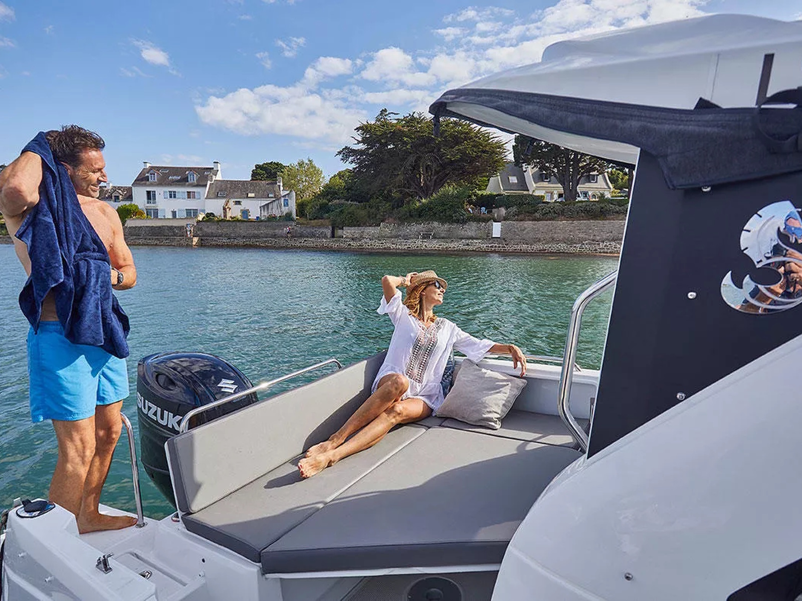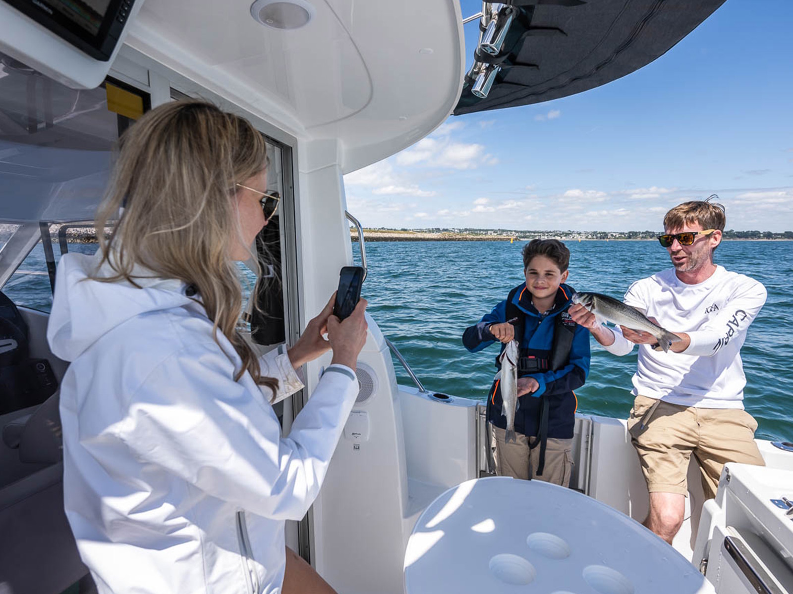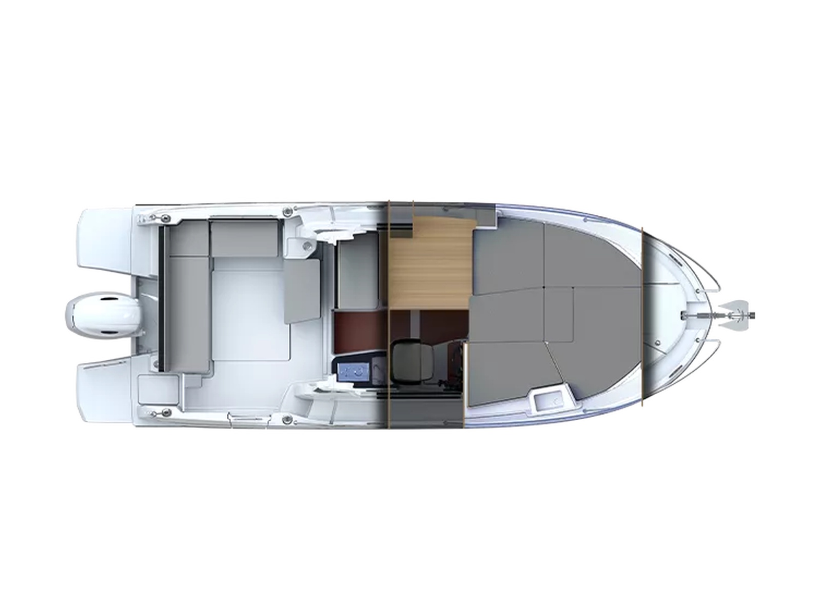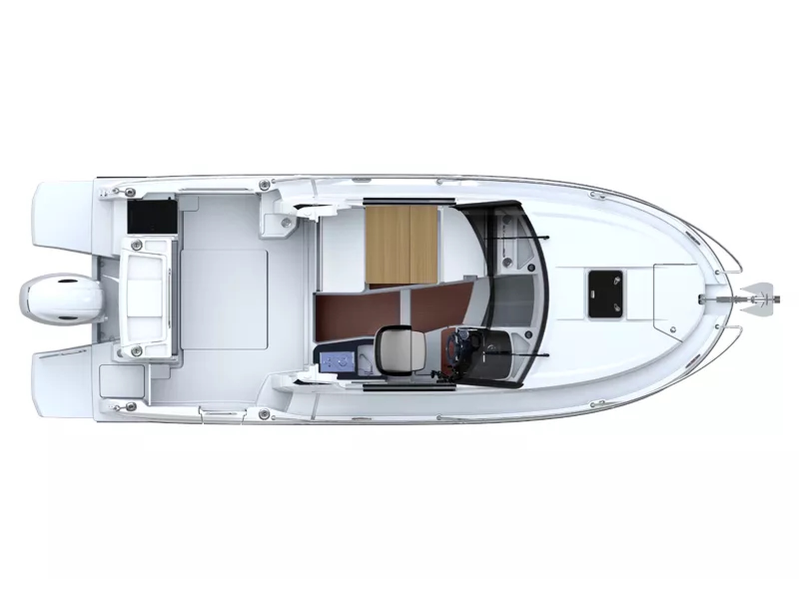 In the Fishing version, the aft benchseat is replaced by a fishing station equipped with rod-holders, cup-holders, cutting board and storage space for lures and hooks.