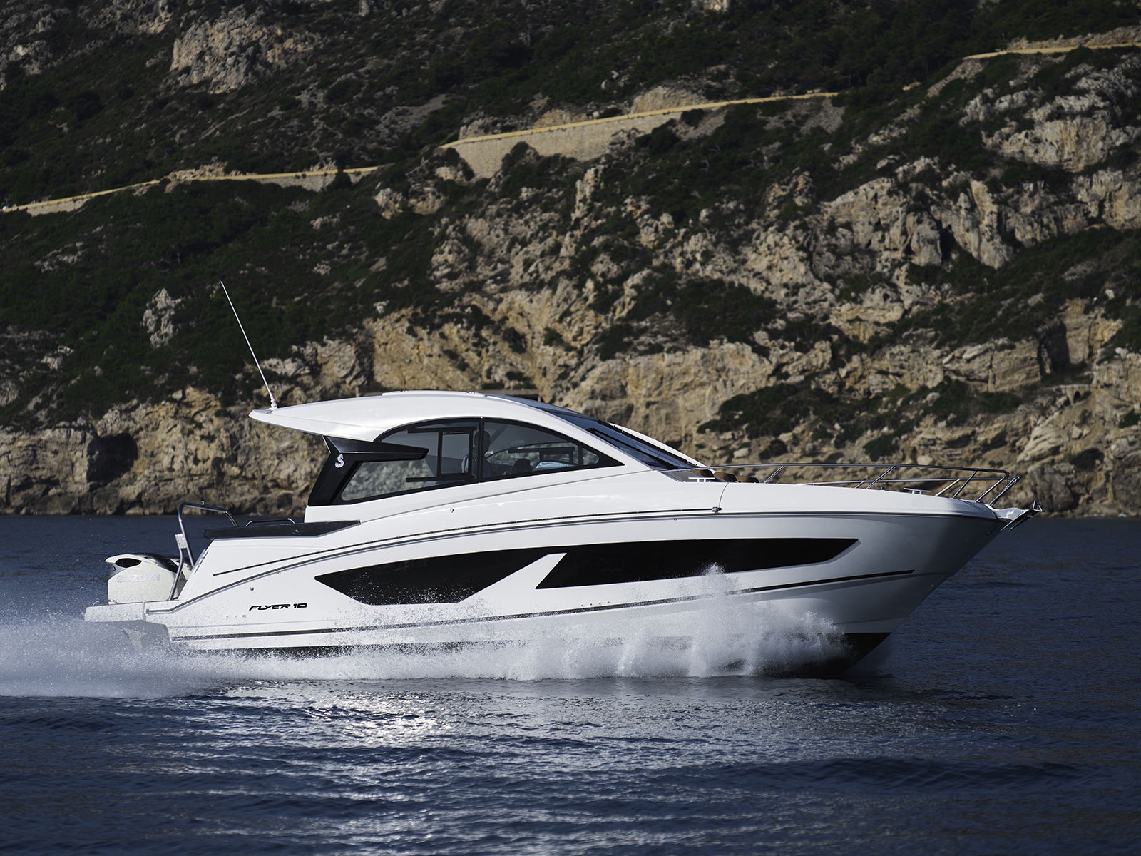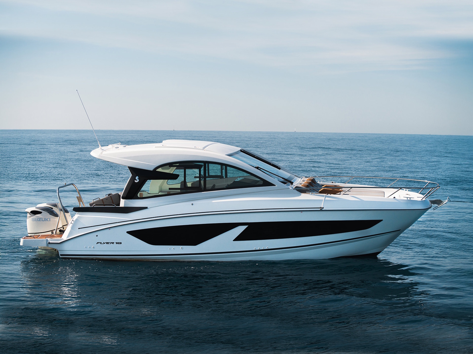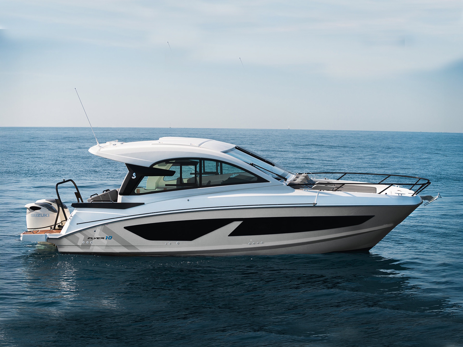 With an outboard motor of up to 600 hp, the Flyer 10 Sport Top can reach speeds of up to 35 knots.