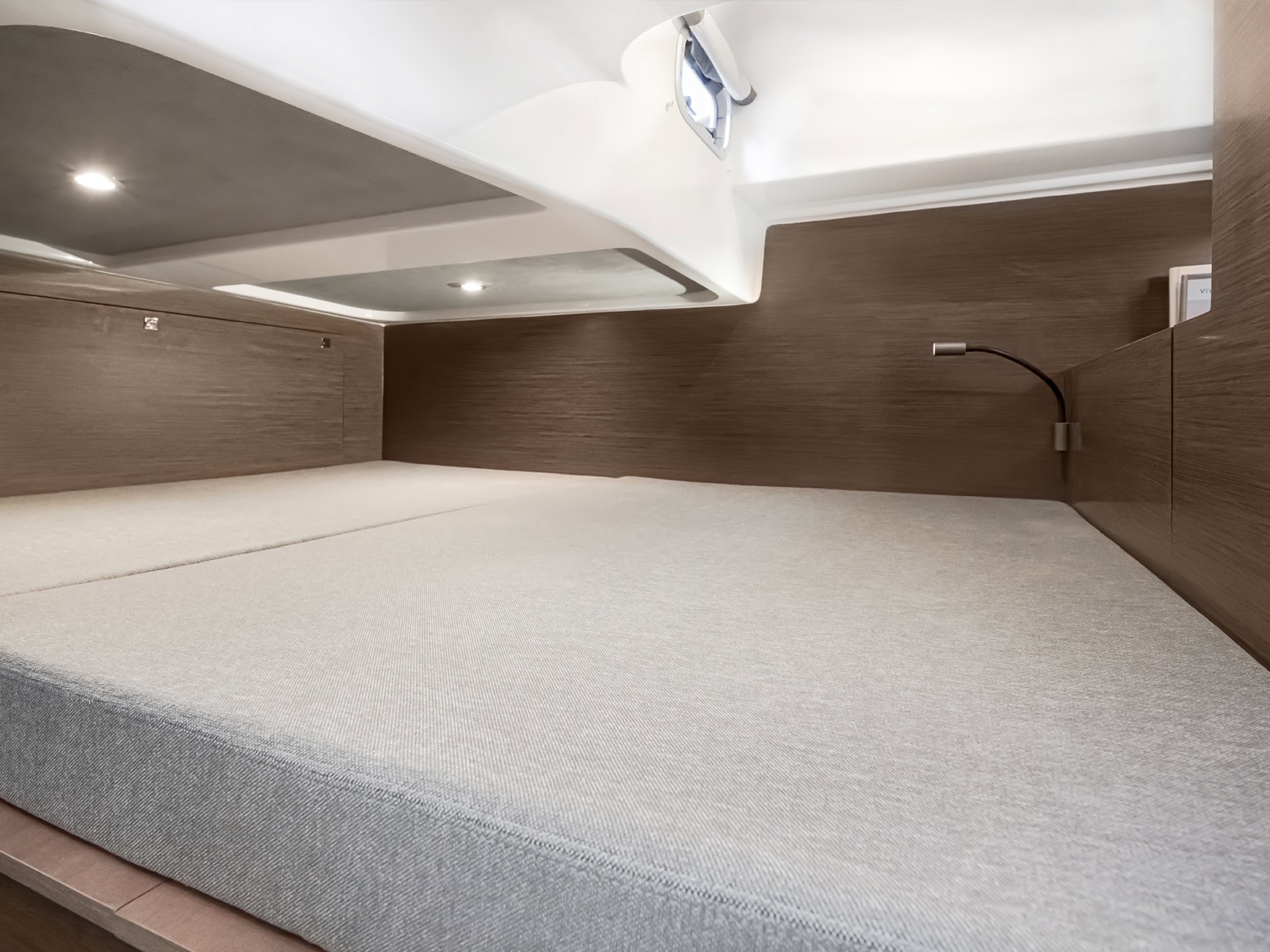 - Large foredeck sunbathing area for 3 people equipped with armrests and cup holders