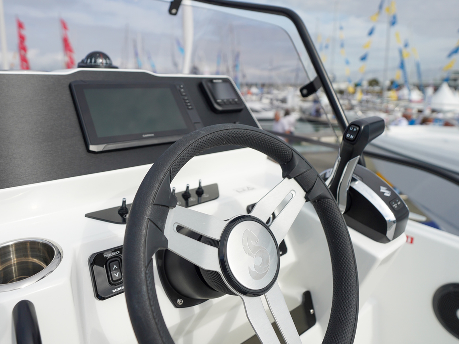 The console has a wraparound windshield and hand rails which make movements on the two symmetrical side decks much safer.