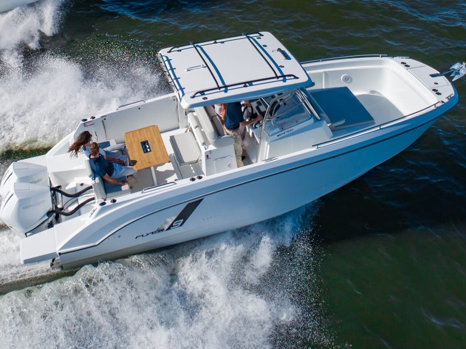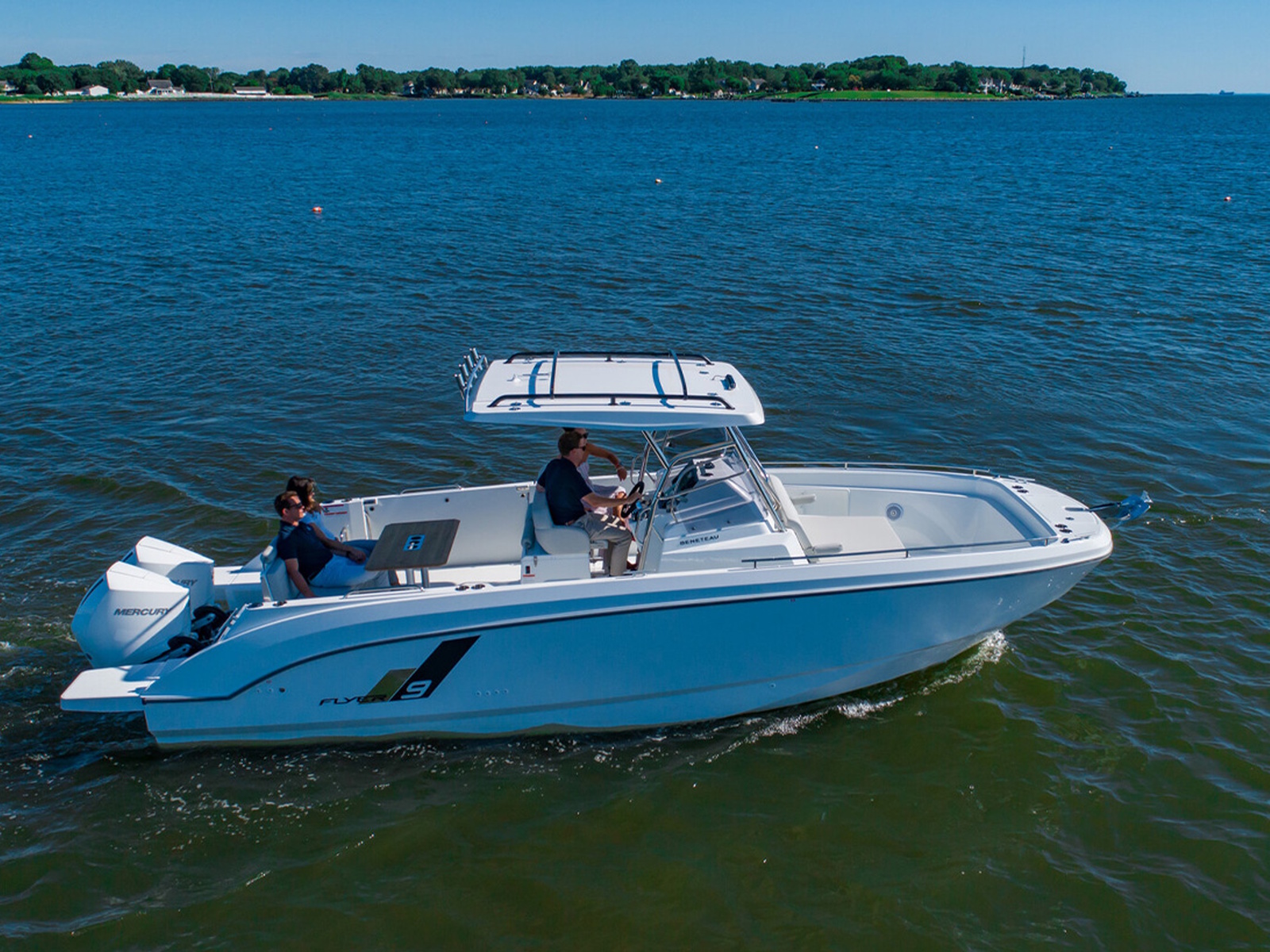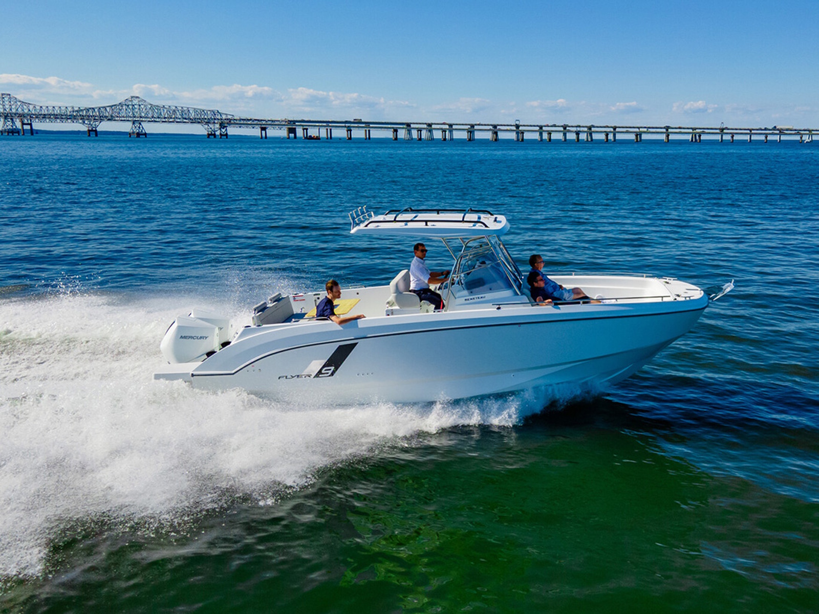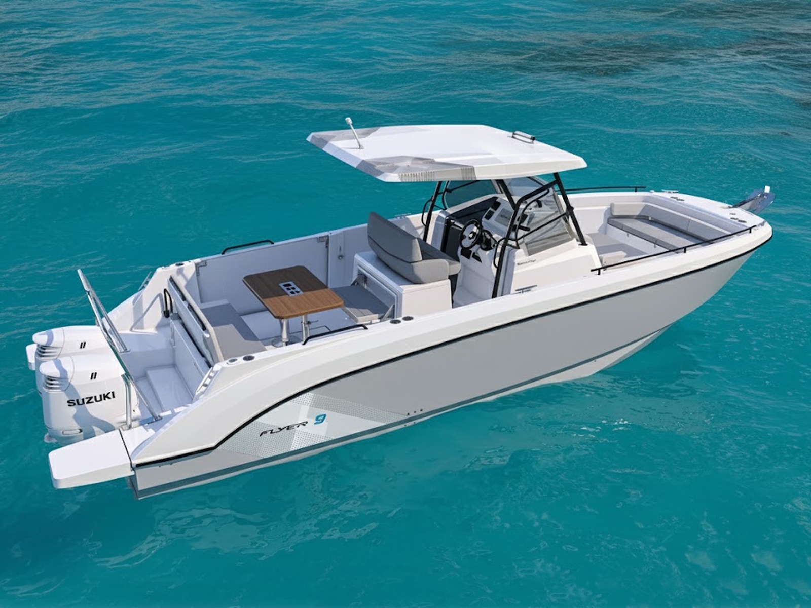 With a large unobstructed area on the deck, high gunnels, the opening side platform to enlarge the cockpit and the sporty design, the Flyer 9 SPACEdeck is perfect for all nauticals activities.