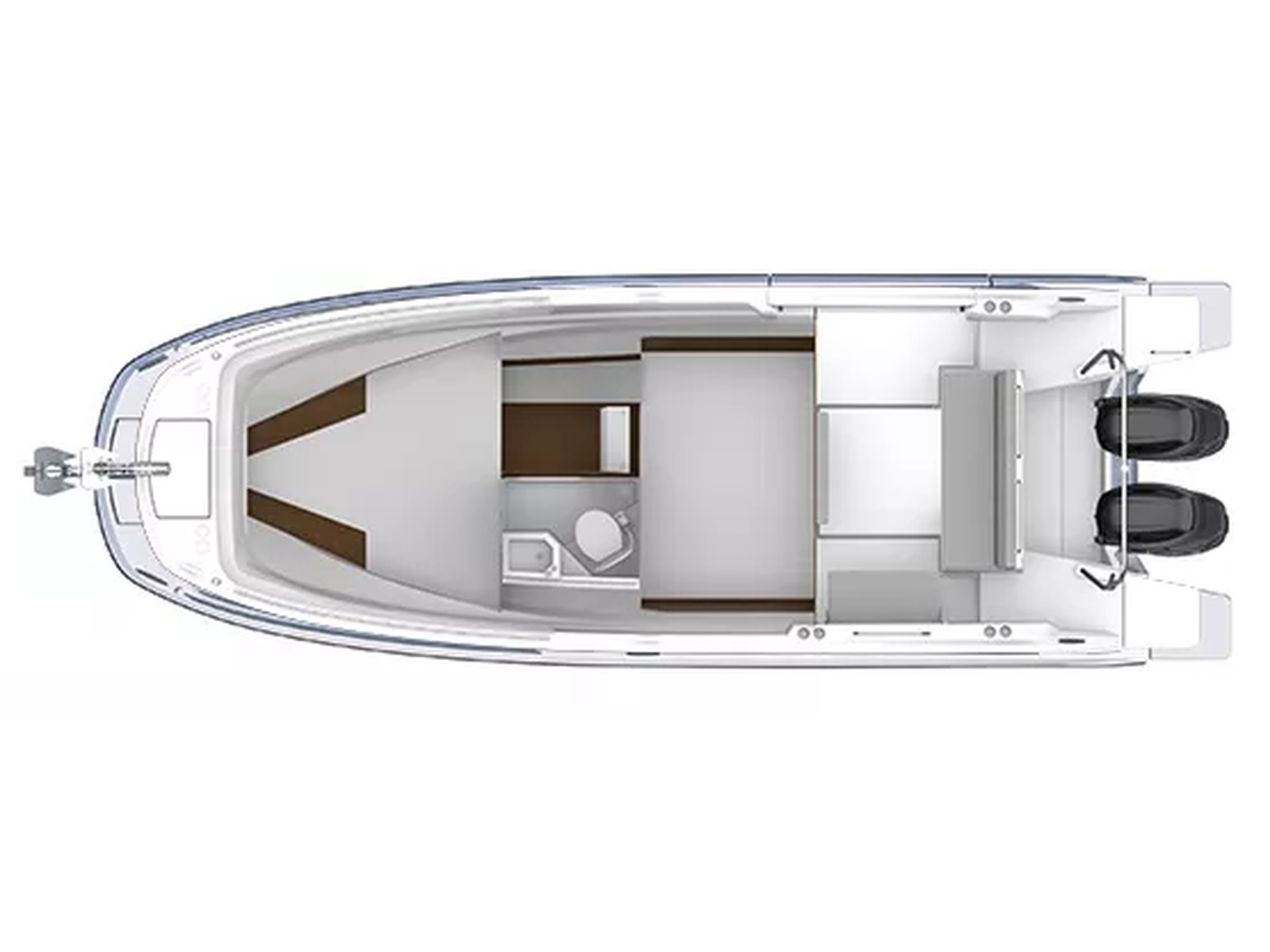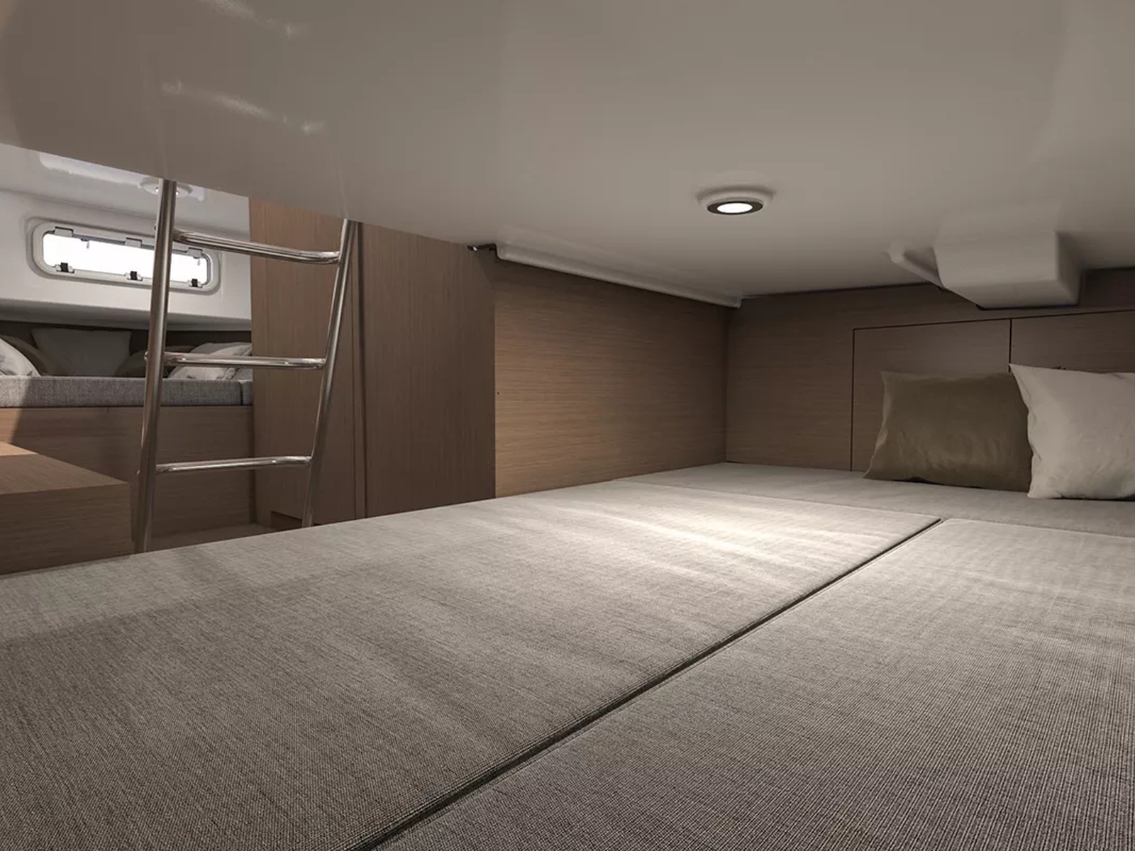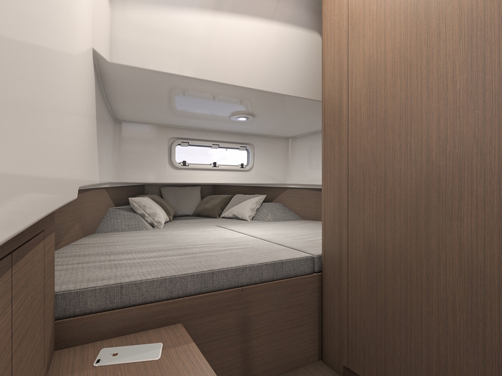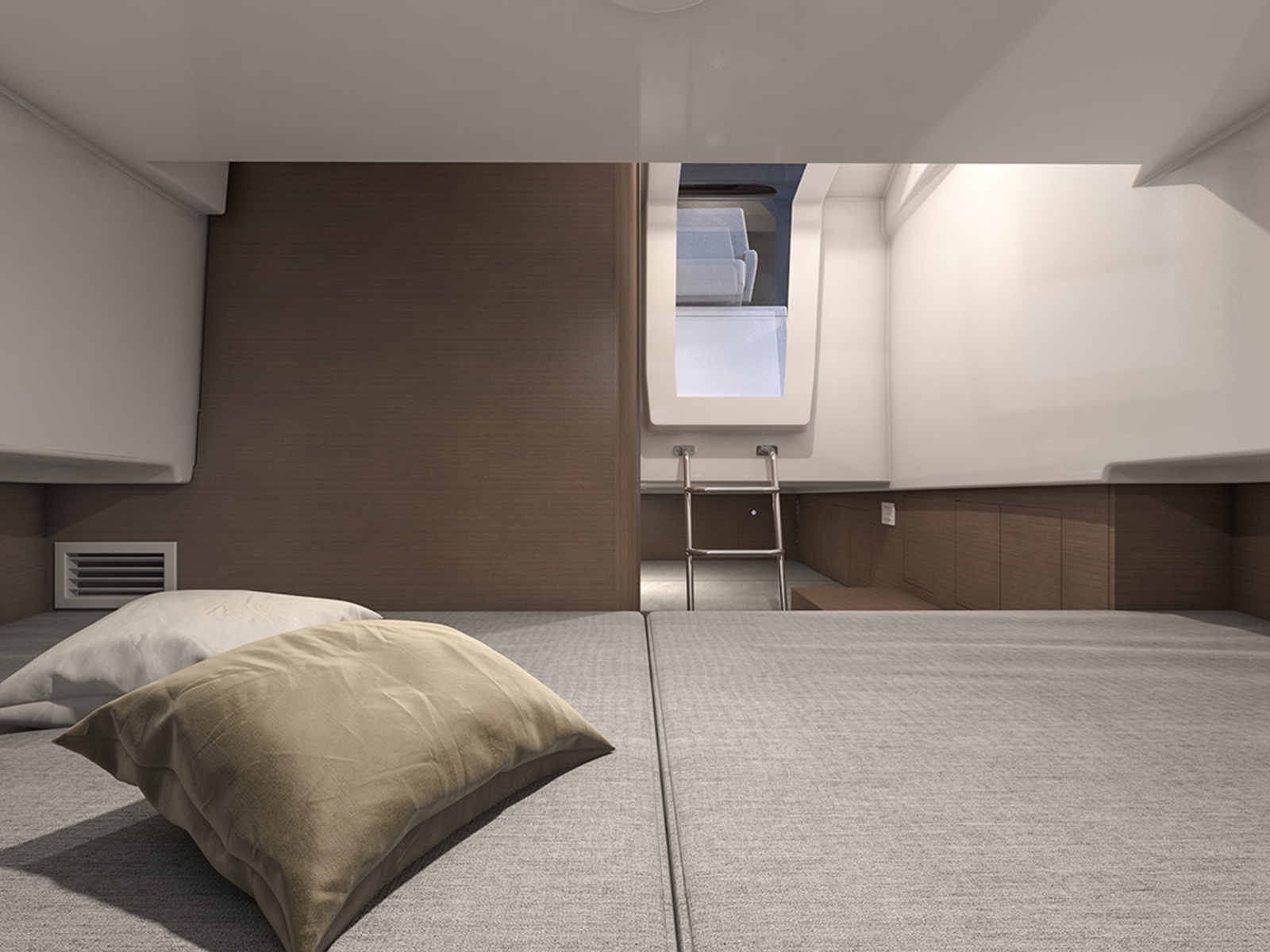 A feat on an open hull: the Flyer 9 SPACEdeck can accommodate 4 people for a night on board thanks to the two berths.