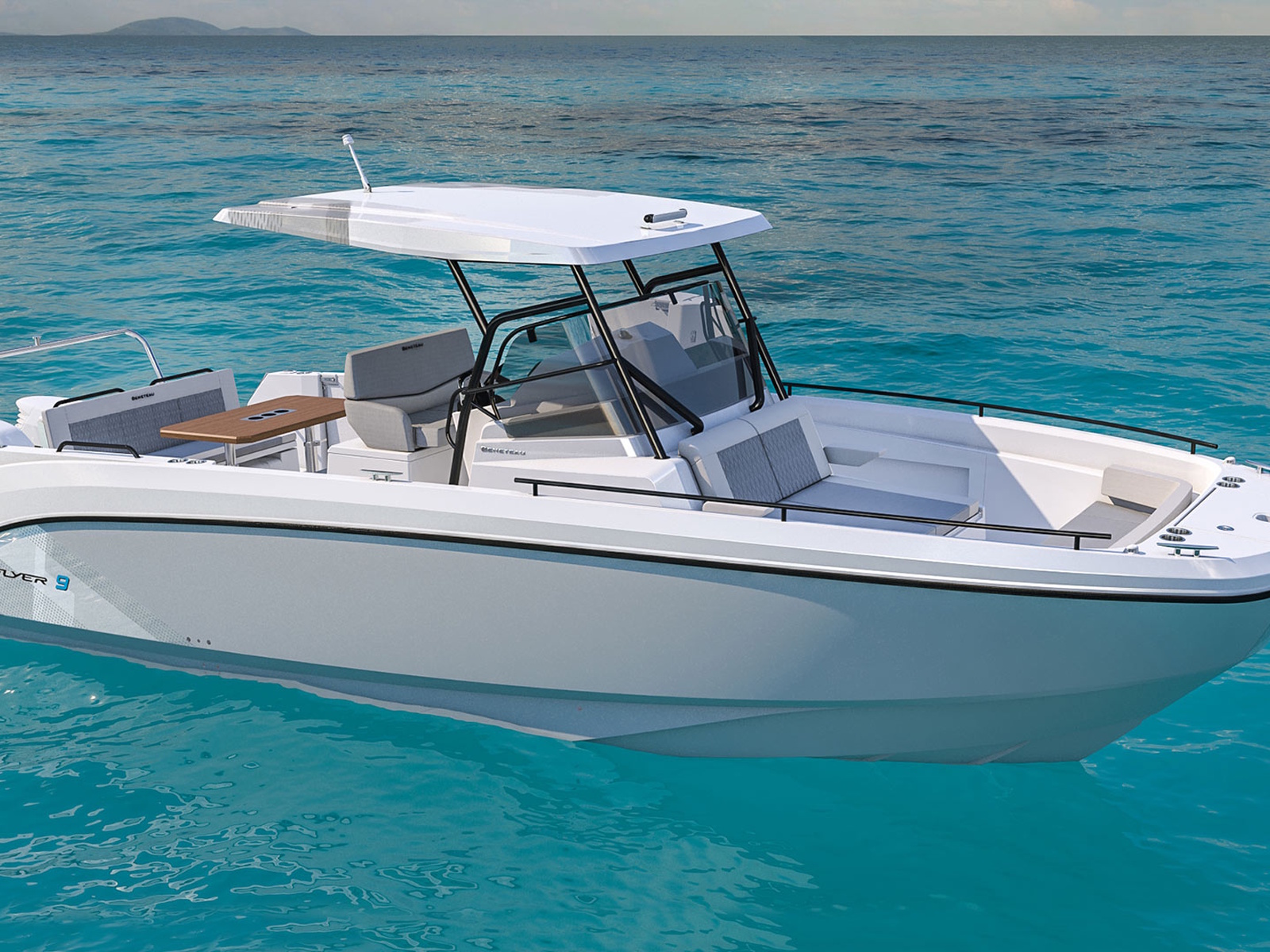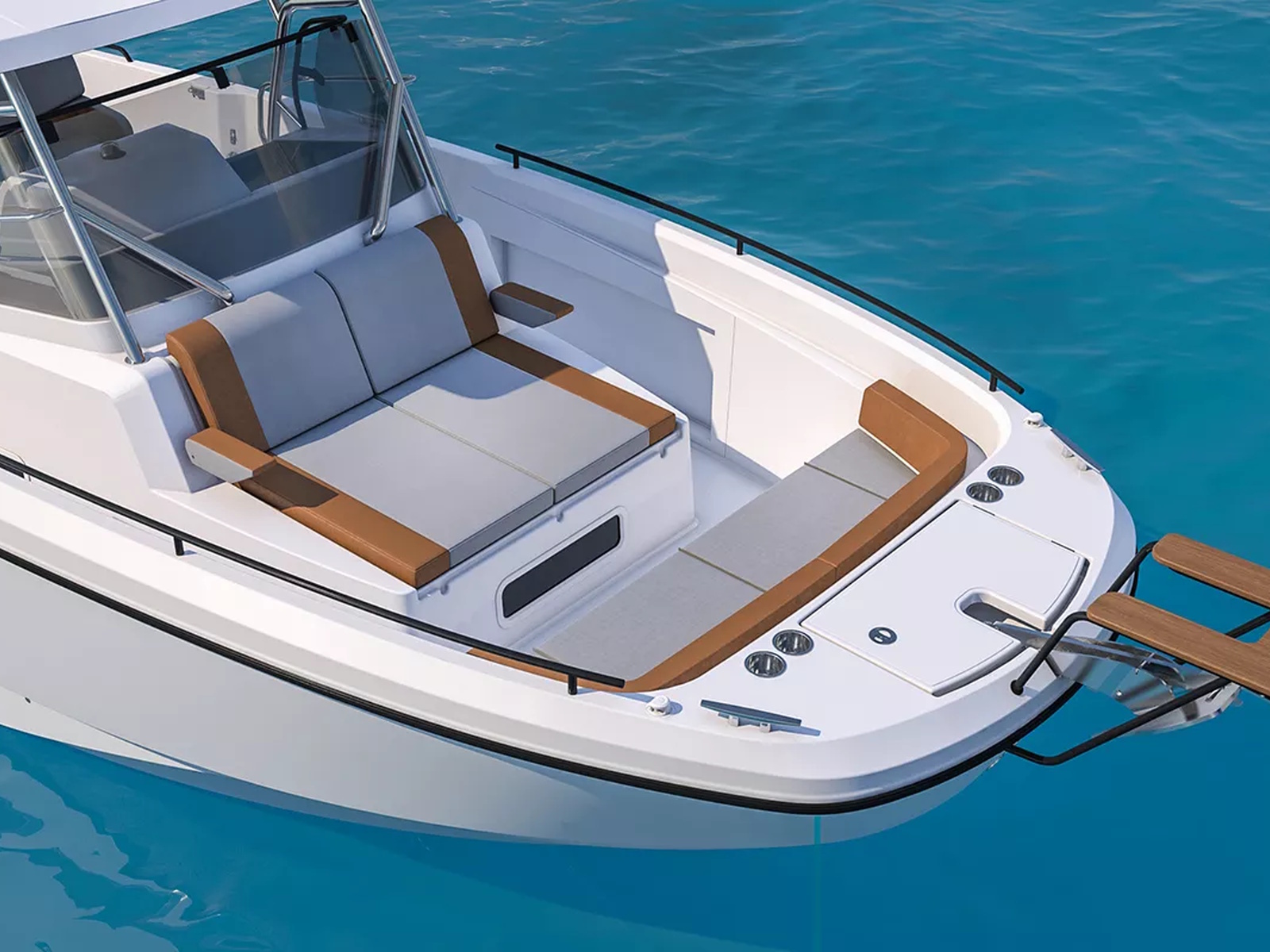 Functional and ergonomic, the Flyer 9 SPACEdeck displays impressive modularity, fulfilling the expectations of anyone who enjoys boating, whether it is for sunbathing, water sports with friends, sharing a meal with family, or fishing.