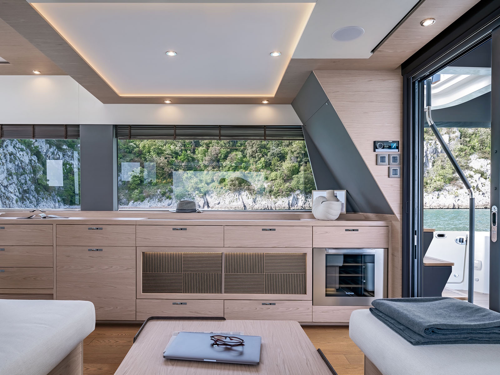 The ergonomics are remarkably good – everything is where it should be – and the seating arrangements set a new standard of comfort, both in the captain’s chairs and the lovely daybed to port.