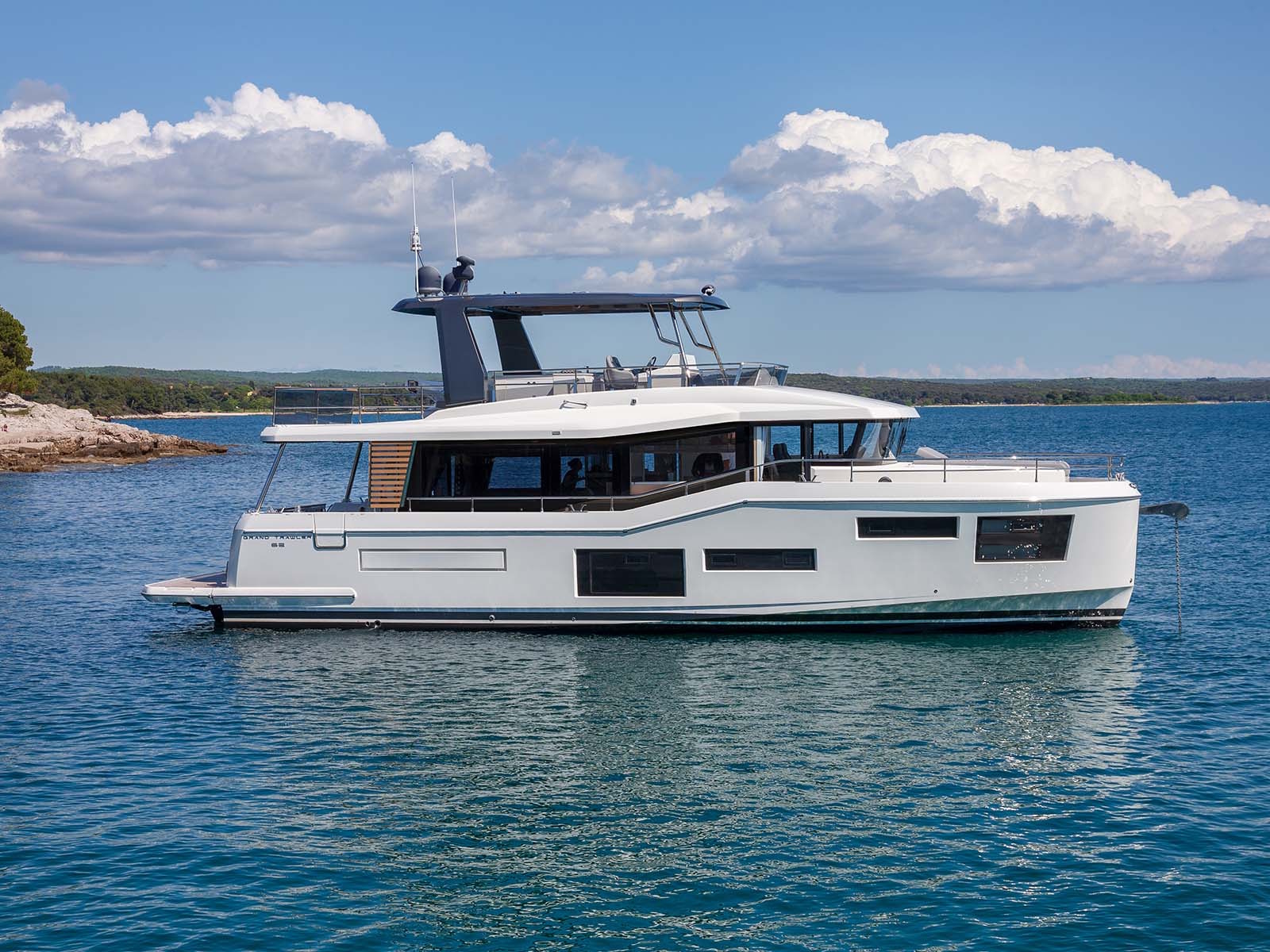 What’s more, she offers in standard equipment many features that are often optional – Sleipner fins, upgraded batteries and tableware to name a few – meaning that the Grand Trawler is ready to go the distance from the moment you get the keys in hand.