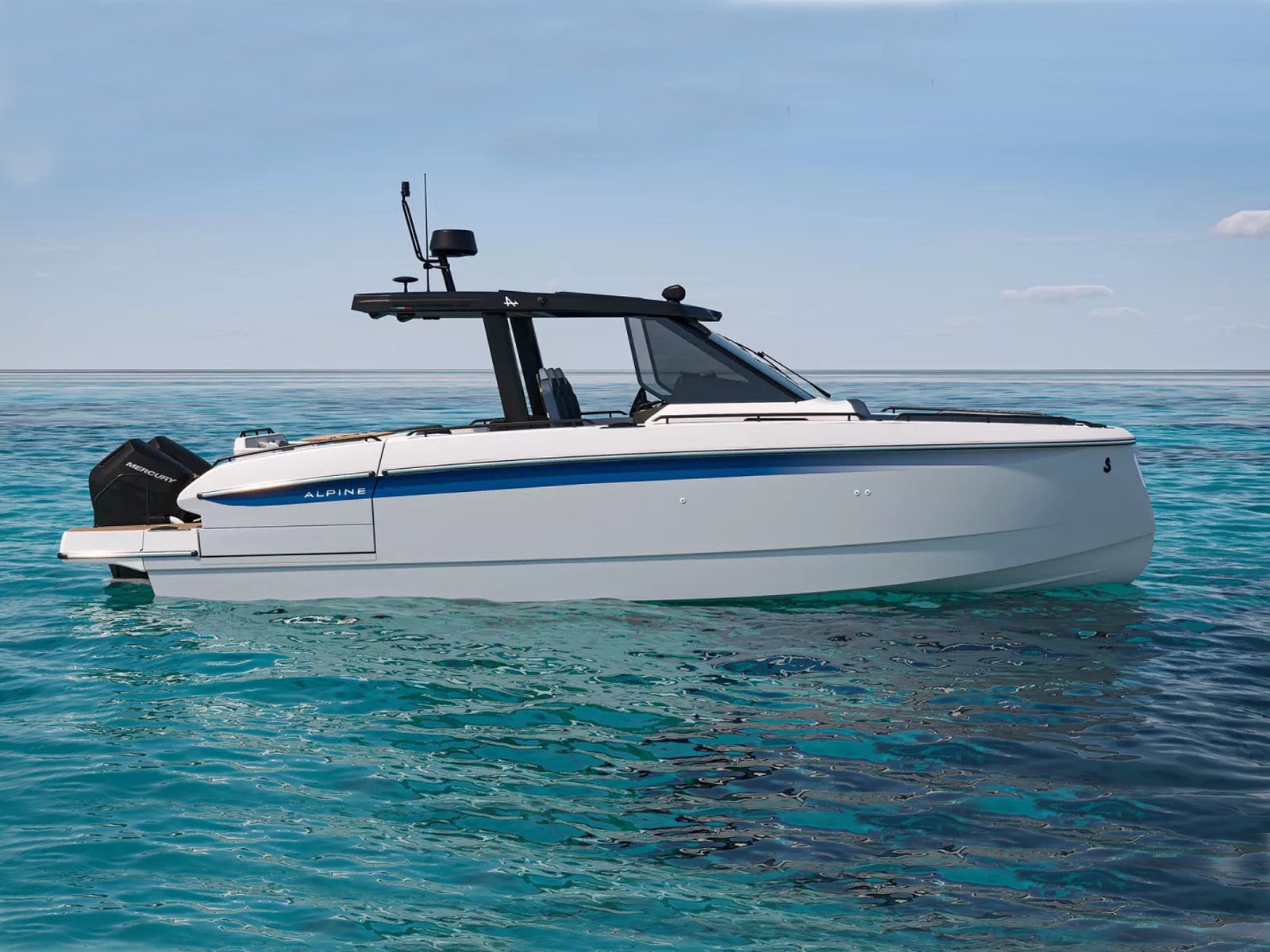 The exciting new partnership with with the high-end sport speciality brand Alpine allows BENETEAU to offer a limited edition version of the new Gran Turismo yachts, featuring such elements as a striking Signal Grey hull complemented by sleek black accents on the engine covers, light fittings, door handles, cleats, rails, screen mounts, and the helm console. Inside, Navy Blue highlights enhance the furniture, upholstery, and embroidery, creating a unique and unforgettable atmosphere. The result will spark fascination wherever you go.