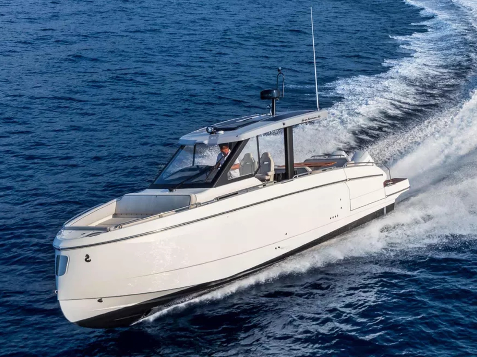 The exciting new partnership with with the high-end sport speciality brand Alpine allows BENETEAU to offer a limited edition version of the new Gran Turismo yachts, featuring such elements as a striking Signal Grey hull complemented by sleek black accents on the engine covers, light fittings, door handles, cleats, rails, screen mounts, and the helm console. Inside, Navy Blue highlights enhance the furniture, upholstery, and embroidery, creating a unique and unforgettable atmosphere. The result will spark fascination wherever you go.