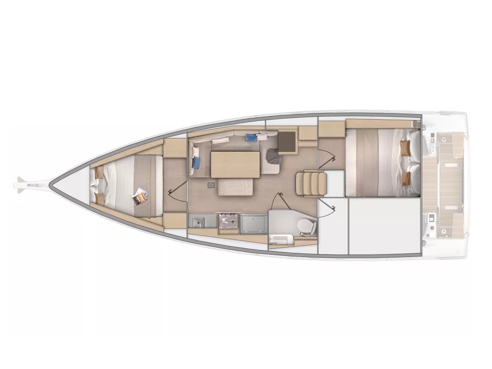 - Owner cabin with double bed positioned to starboard