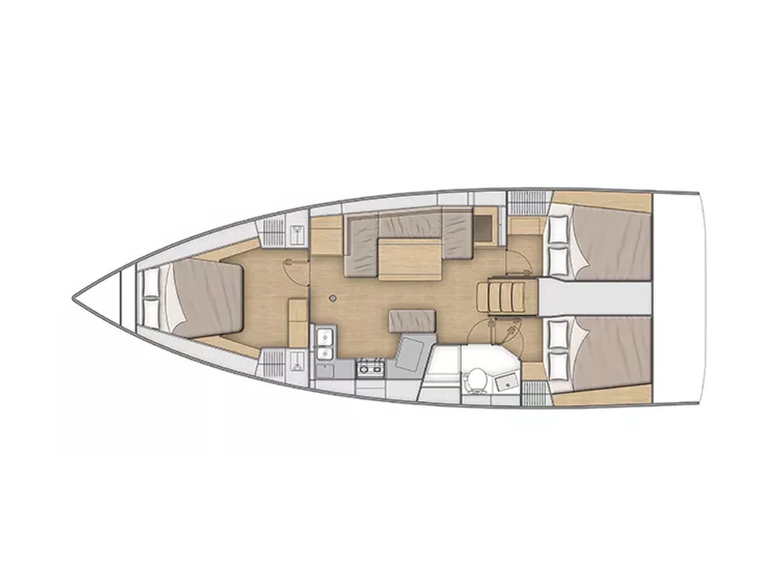 - Two front cabins with double berths