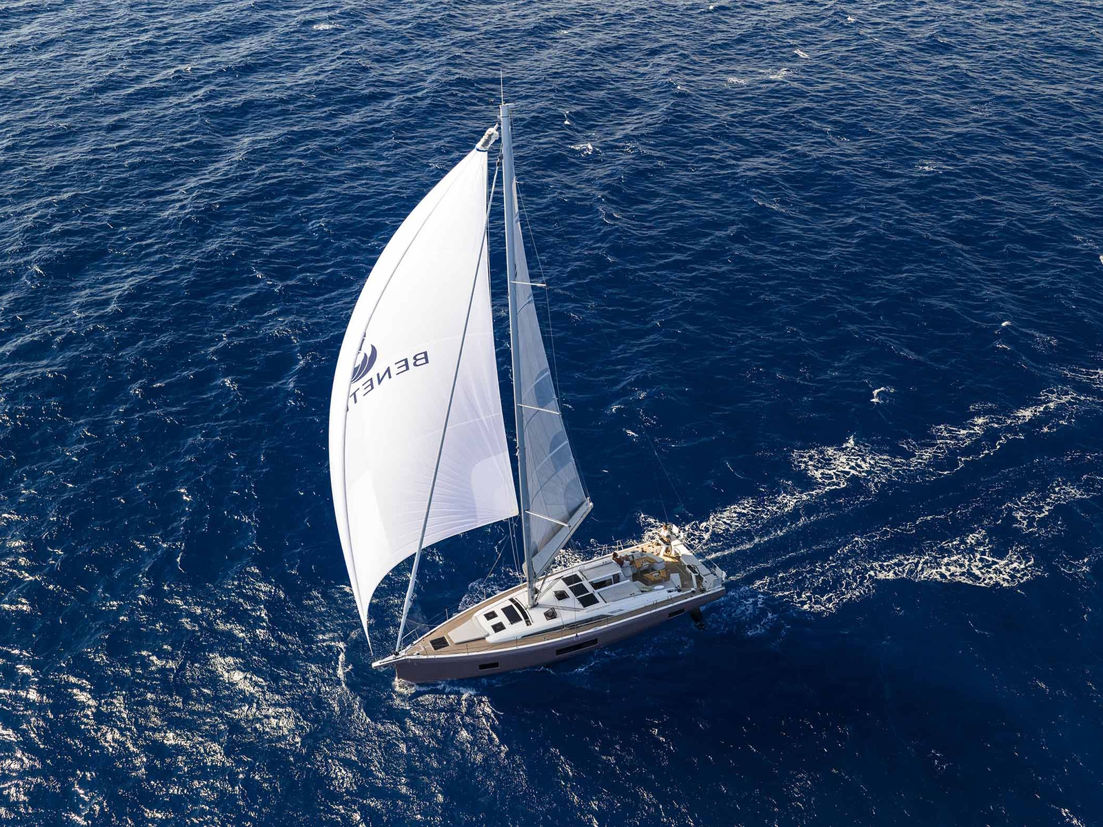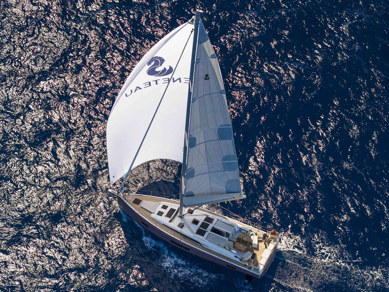 Under sail; the aft cockpit becomes an intuitive manoeuvring station with a clear separation between primary and secondary winches, making it easier to keep your lines tidy. The step provides secure access to the gangway. At the helm, the skipper charts his course with precision using a 12-inch display that provides excellent visual comfort in all weather.