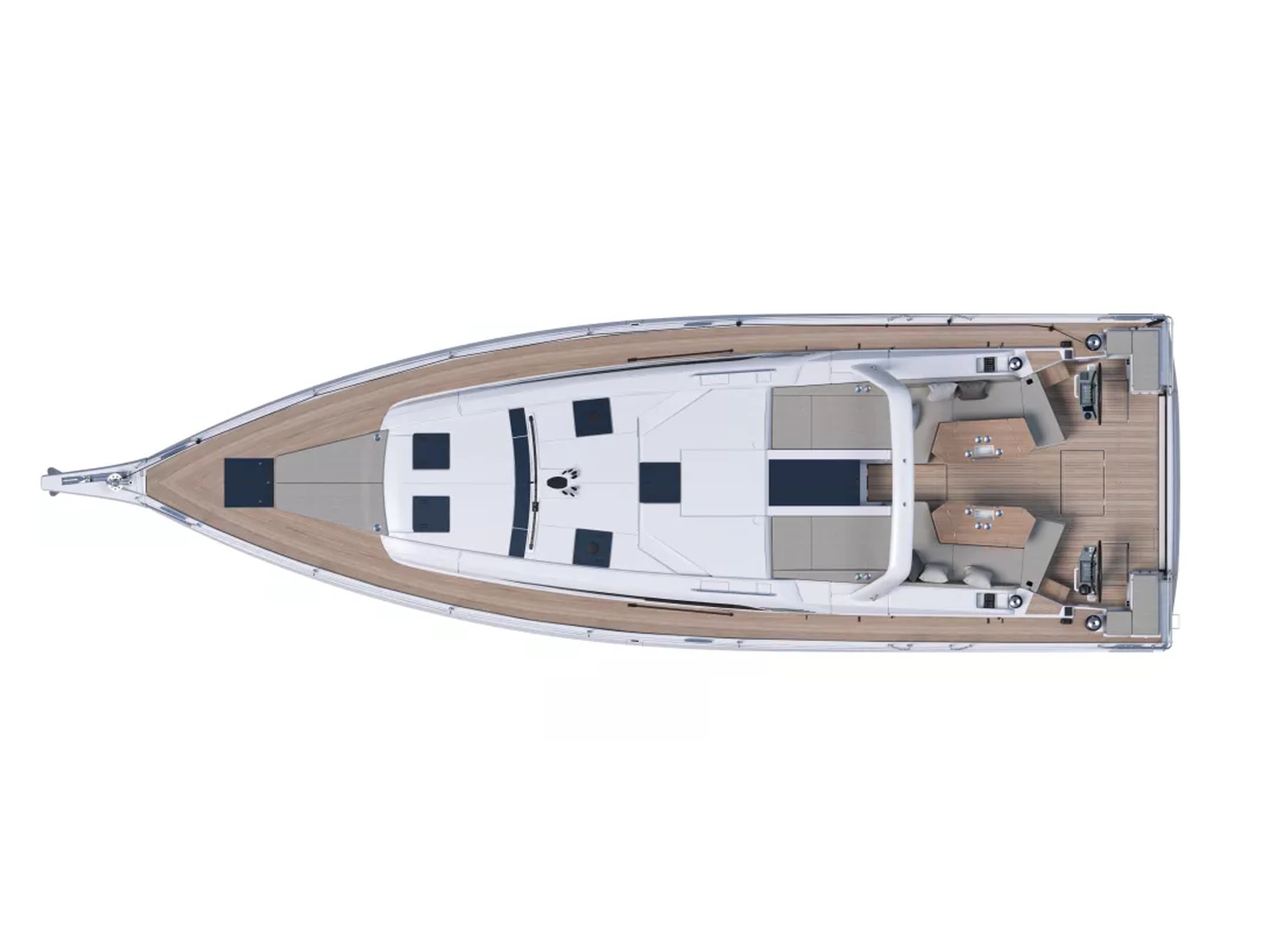 - Extra wide access to the side deck between the helm station and the cockpit
