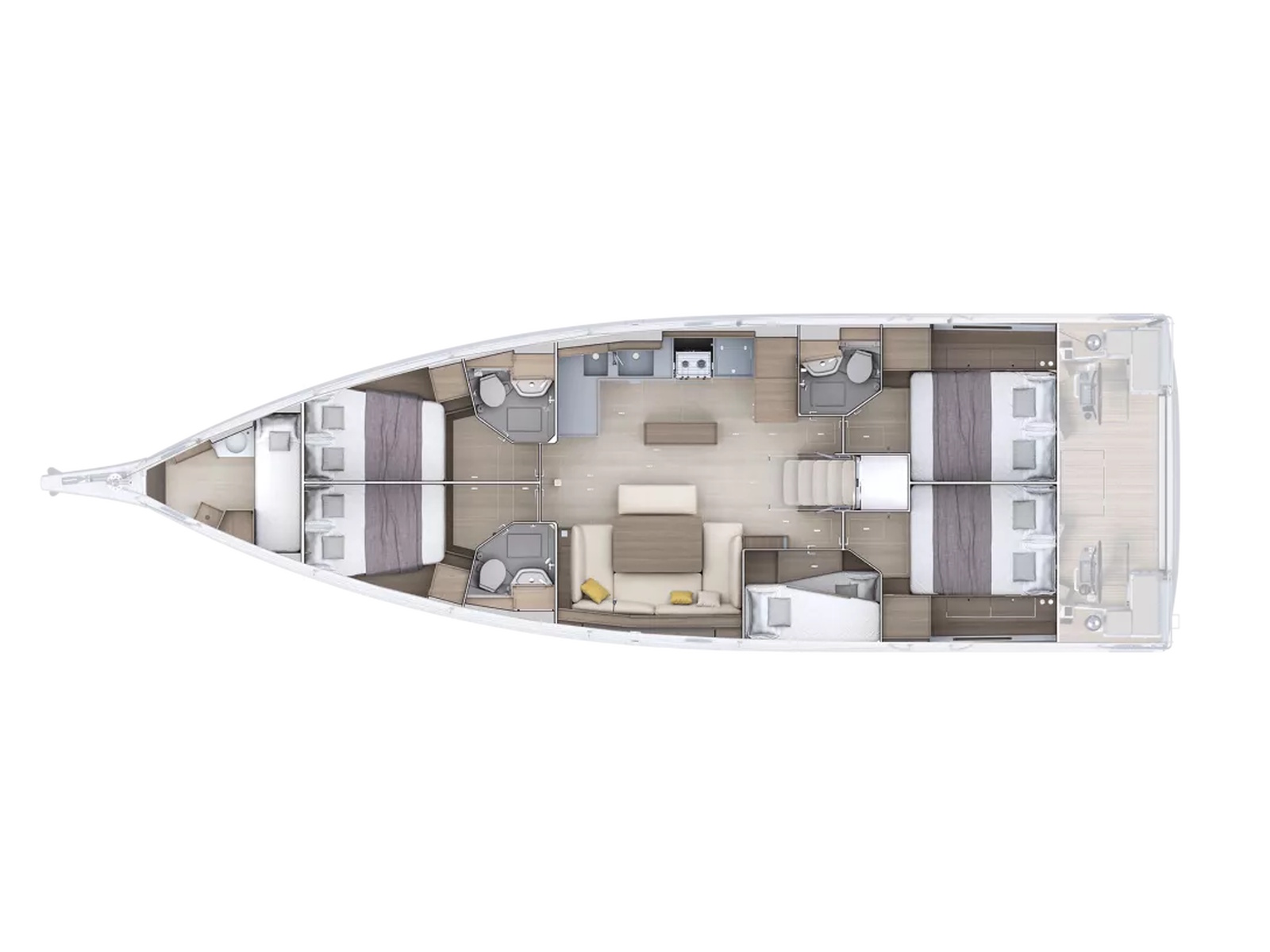Every detail, innovation and item of material, inside and out, has been carefully designed to elevate your sailing experience, whether you are sailing solo or with family. In addition, the bow cabin offers additional space, perfect for a crew member or for reserving for guests.