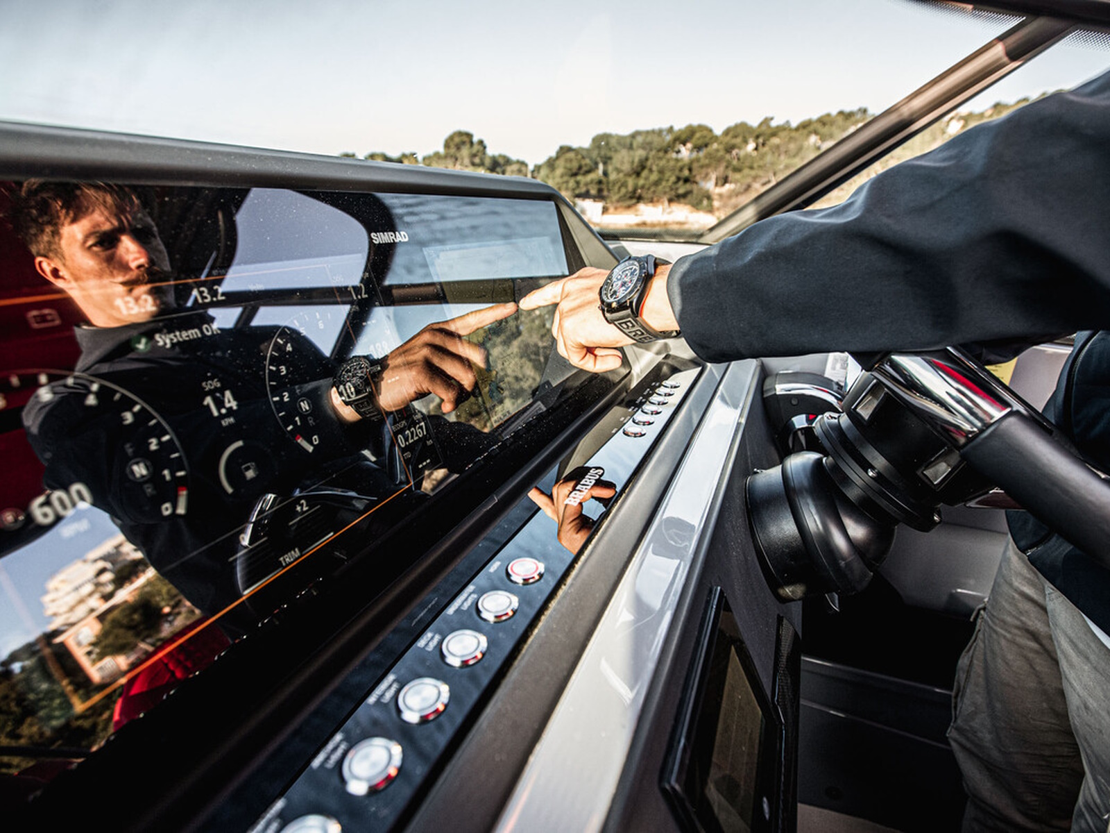 Maximum comfort and control - A clean, cool looking and aesthetically pleasing helm. The steering wheel has an intelligent Steering module giving push-button control for machinery such as the bow-thruster, trim tabs, and the Fusion Marine audio.