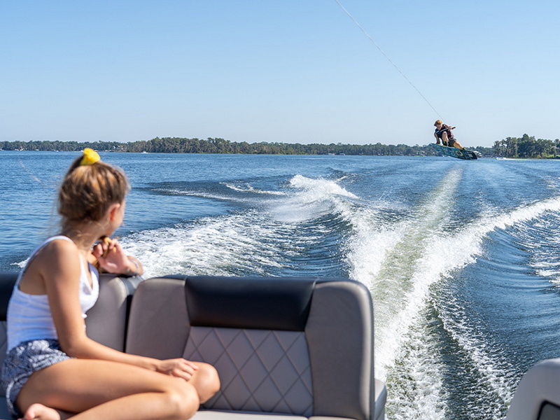 Cruising at the helm of this 23-footer brings together a unique combination of style, comfort and elegance. The Calandra 23 has an ample amount of storage and cockpit space for friends and family - this boat lives for the weekend. From tie-ups in your favorite cove, to pulling your favorite watersport activity, or cruising the open water, this Bryant does it all with ease. No matter where you take your Calandra 23, you’re already at the perfect destination.