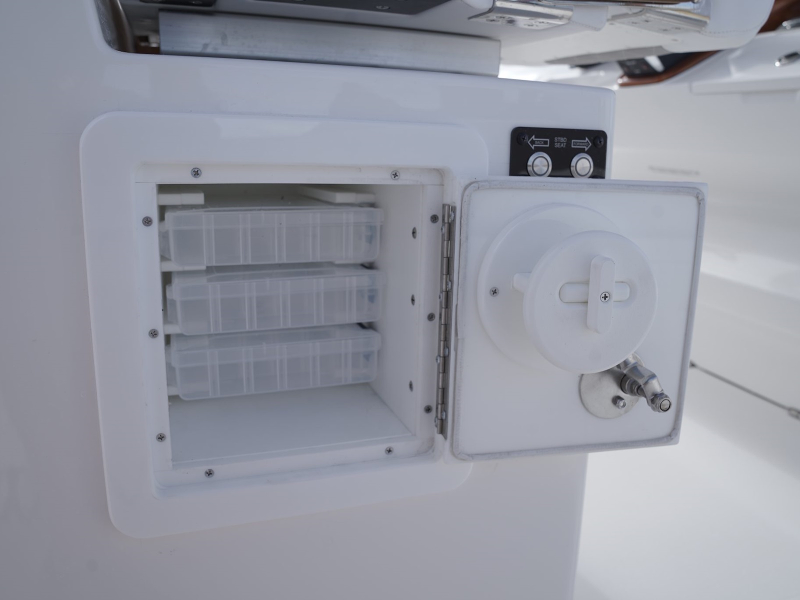 - Starboard tackle storage with fire extinguisher