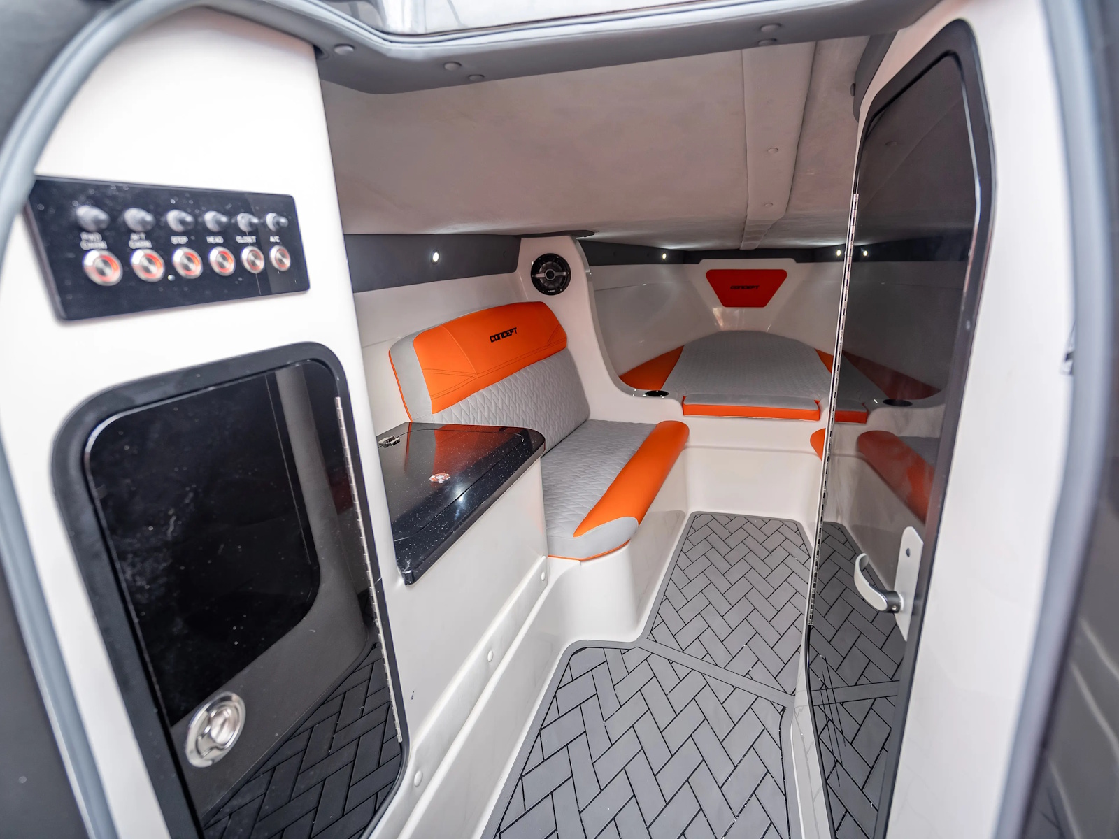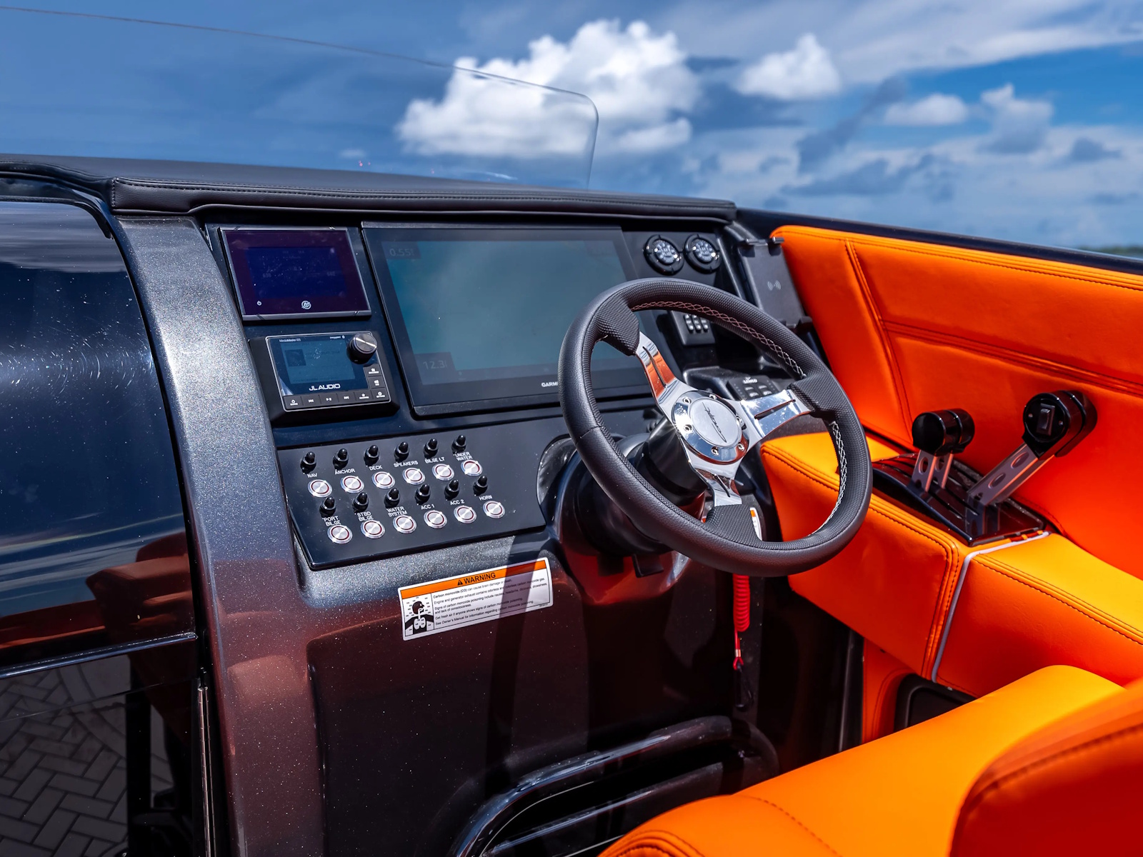 Equipped to accommodate up to twin Mercury 500R engines, this boat delivers an exhilarating 1000 horsepower, propelling you across the water with unrivaled speed and power. At the helm, you’ll find a state-of-the-art navigation and comprehensive vessel information at your fingertips. Embrace the future of marine innovation and performance where every journey is powered by the latest in technological excellence.