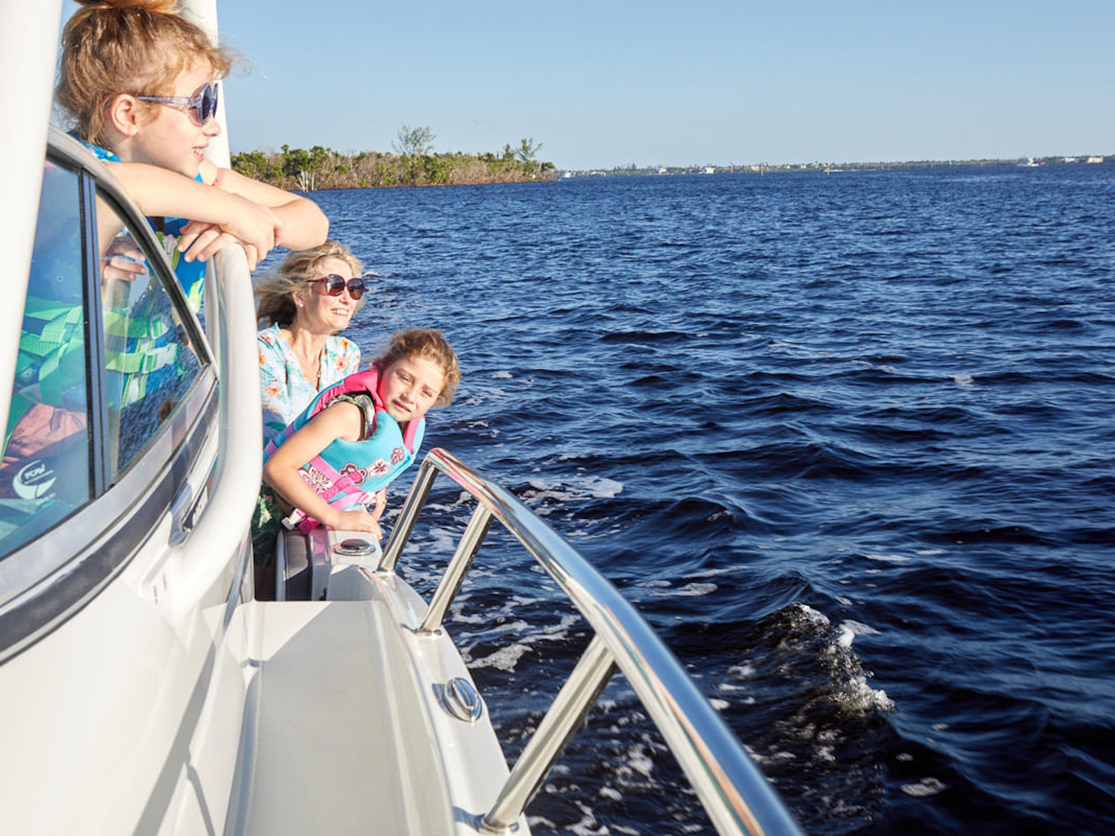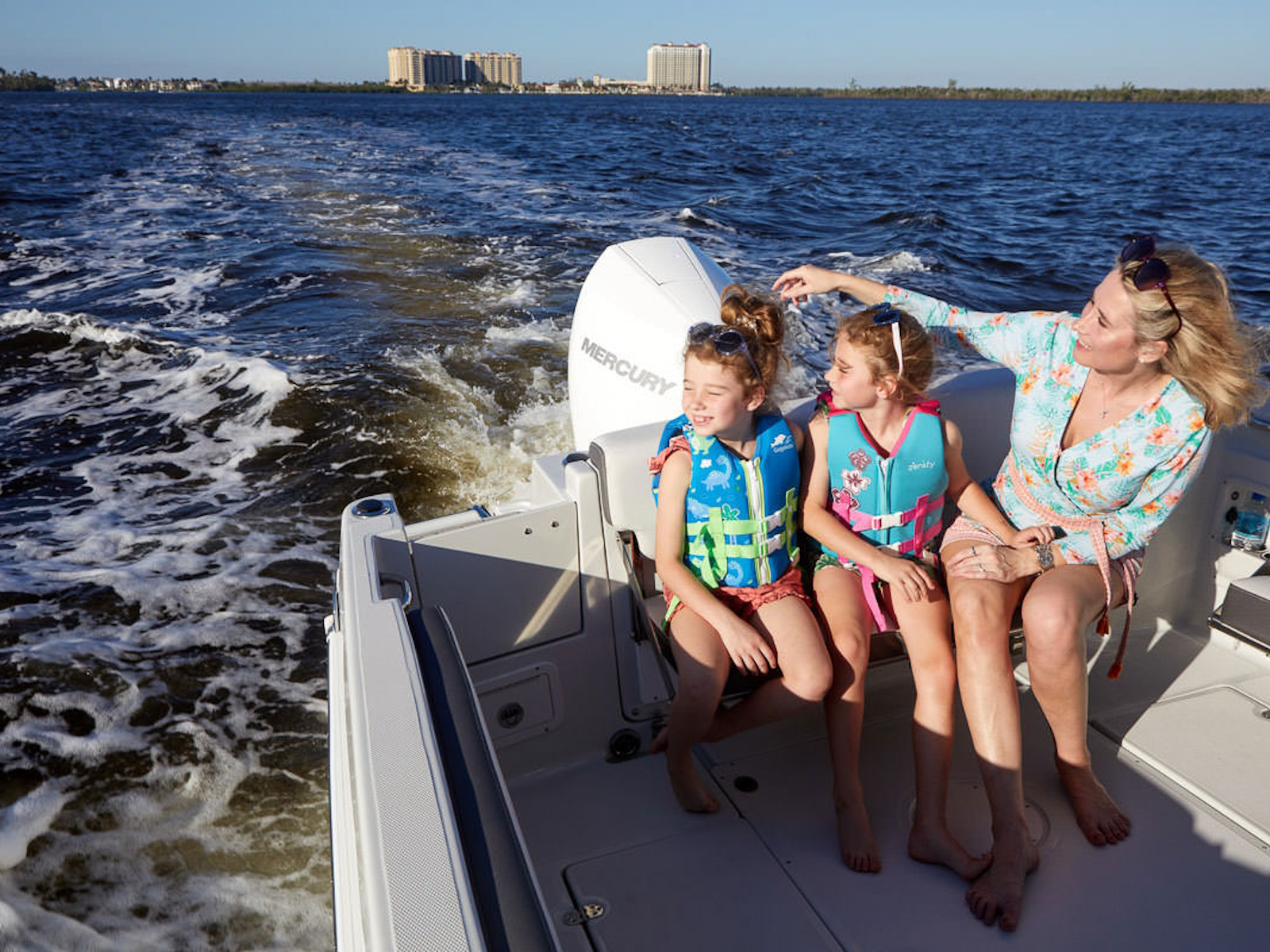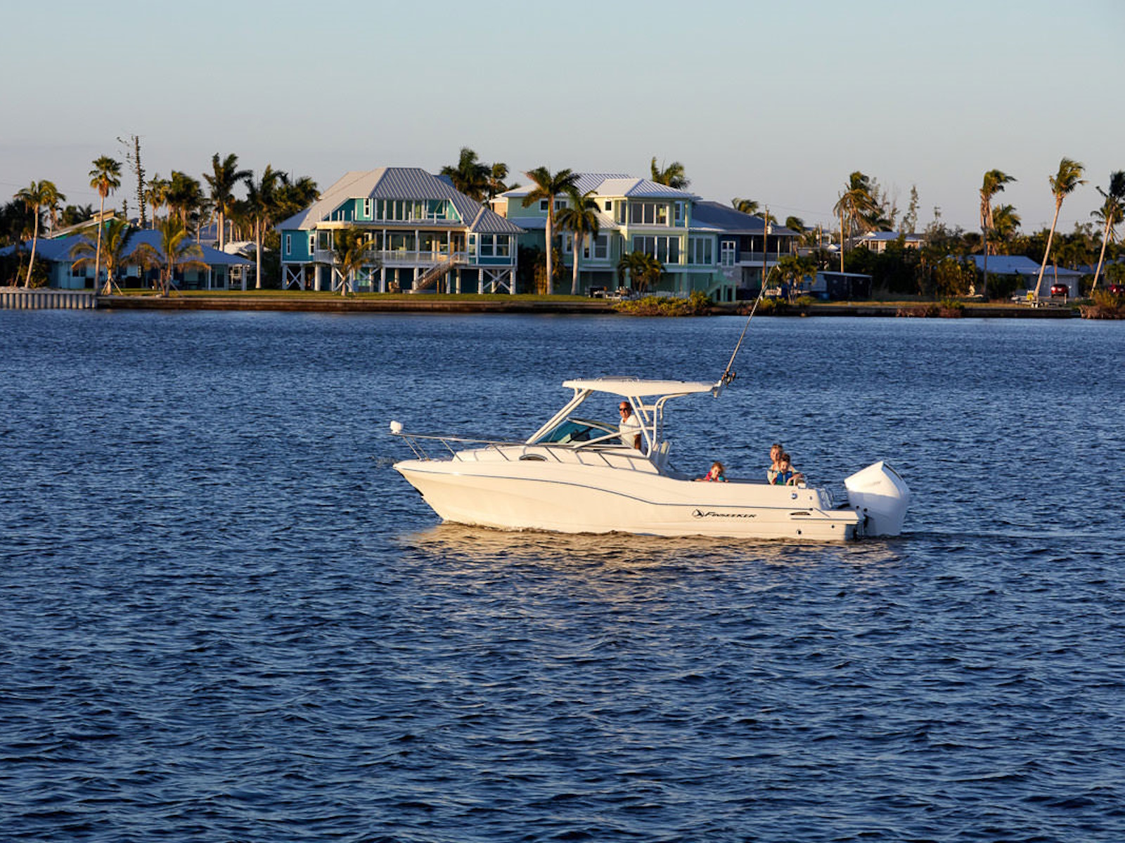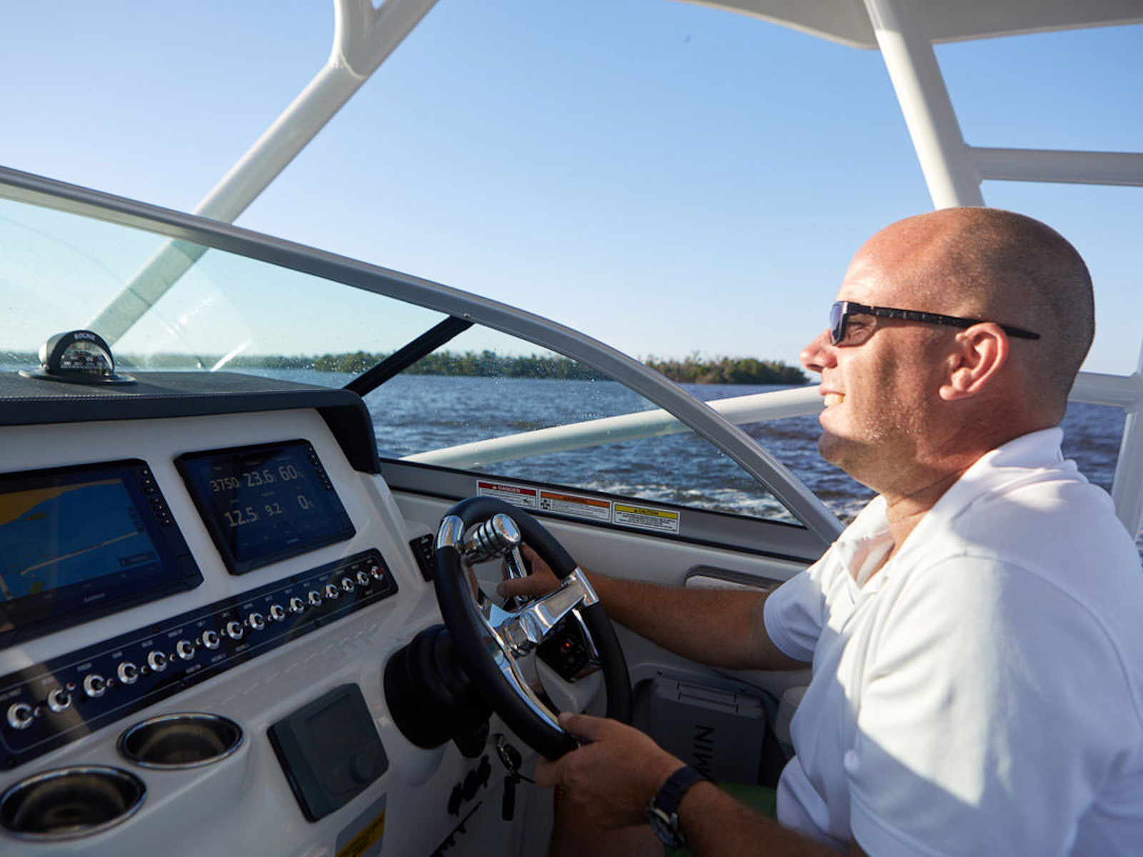 The new Finseeker by Crownline 245 WA features a 360-degree walk-around for increased fishability. A great fishing / family boat, the 245 WA is trailerable and has a small cabin area with more than 6 feet of headroom, U-shaped seating with filler cushions to form a sleeping area, a portable head, microwave, and sink. The cockpit area seats six, with flip-up features for enhanced fishing capability. The standard fiberglass hard top has rear-facing LED work lights, 4 rod holders, overhead lights and walk-around grab rails, providing protection from the elements during a full day out on the water.