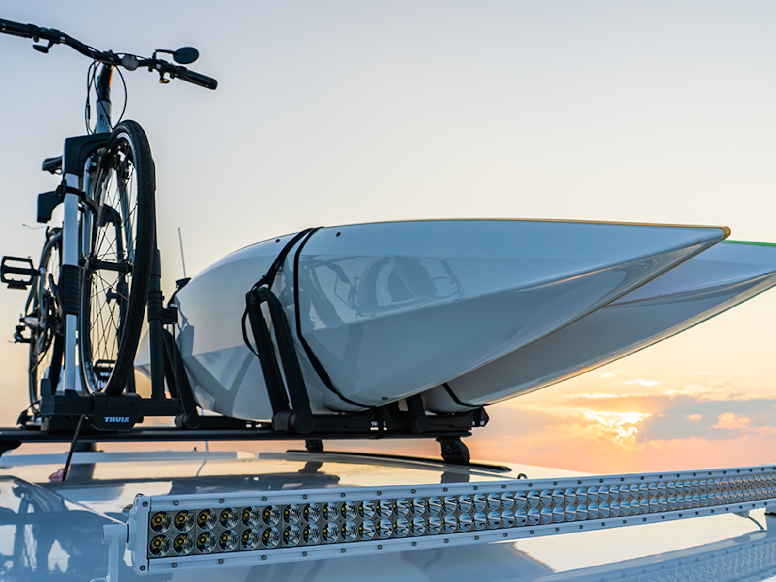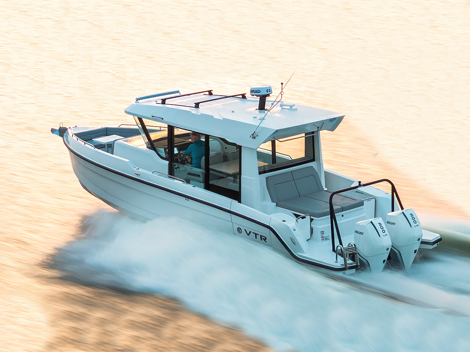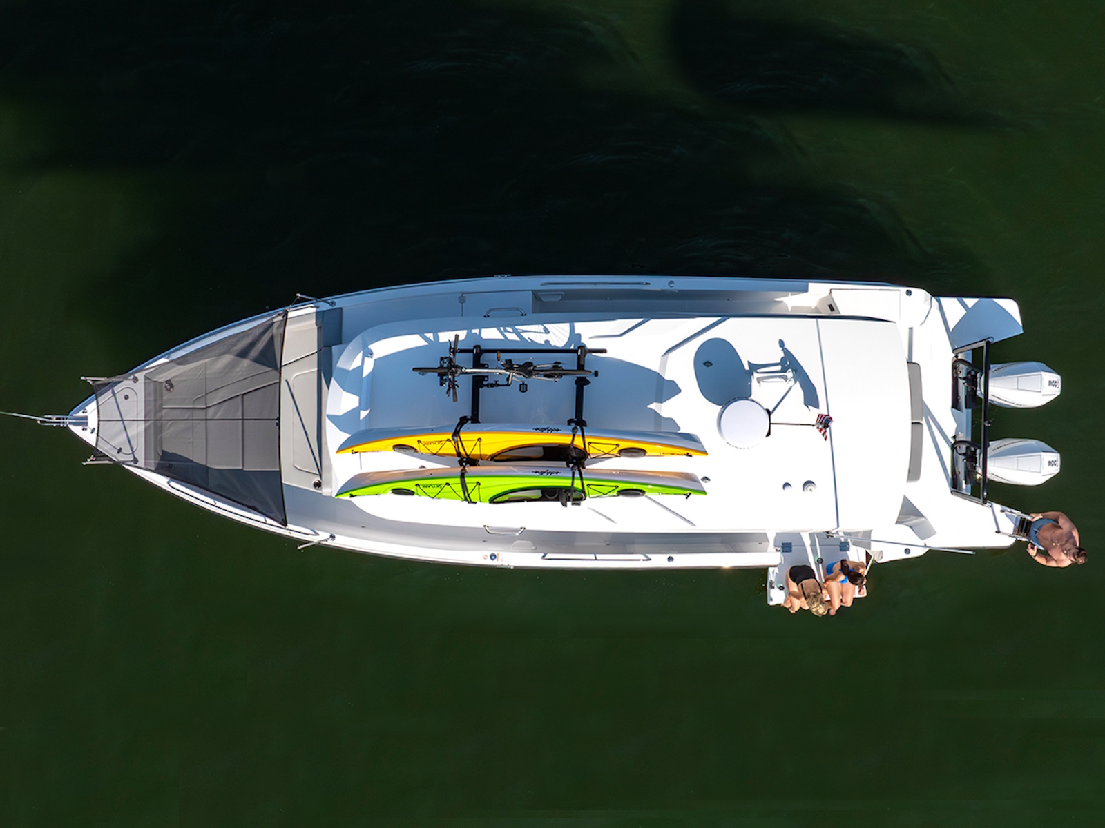 - The 38 VTR EC carries the same adventure-ready spirit with the added confidence of an enclosed cockpit for all-weather adventures. A Thule roof rack lets you load up paddleboards, kayaks, or bikes, while an optional tow bar sets the stage for waterskiing, wakeboarding or tubing. Rod holders are an option for fishing days, and the expansive transom storage easily fits inflatables, snorkeling, dive gear, water toys, and more – making the 38 VTR EC ready for action, no matter the forecast.