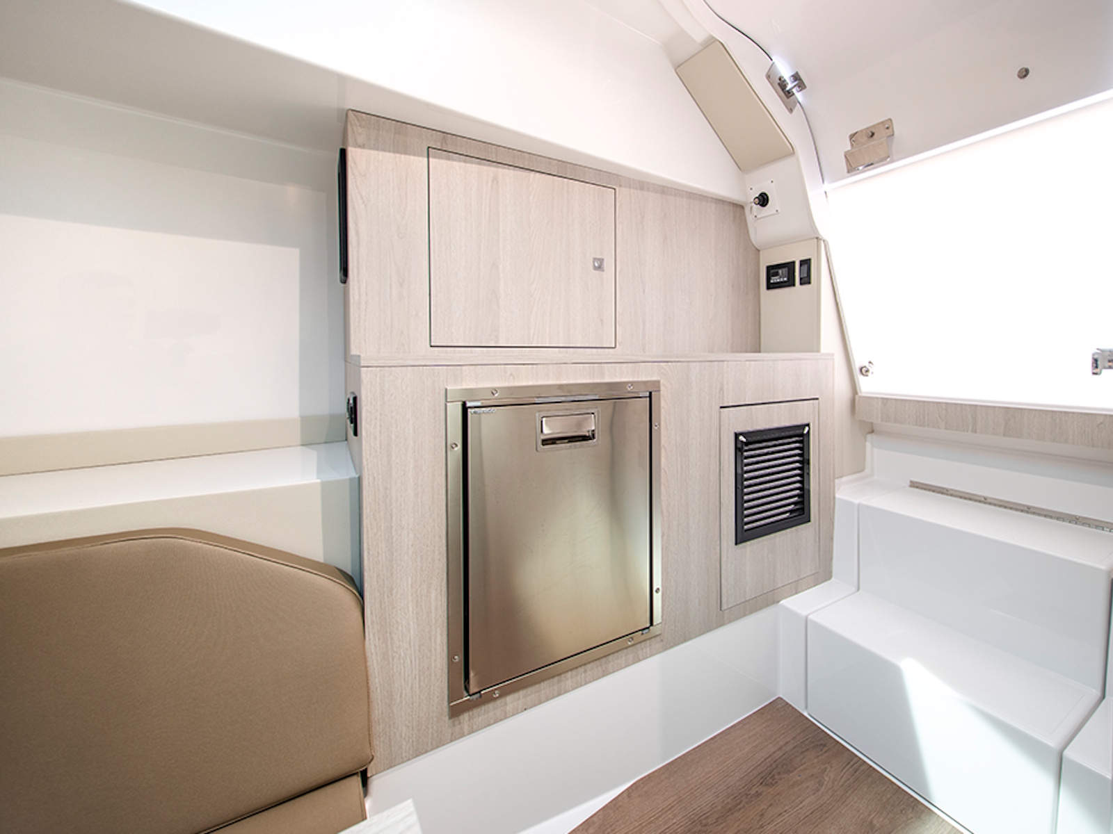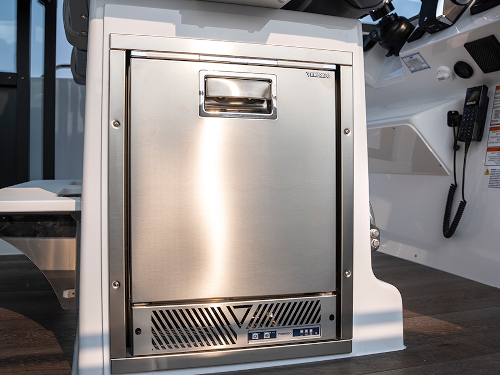 - The enclosed cockpit is designed as your all-weather retreat—keeping you comfortable, dry, and ready for adventure without interruption. Stay cool on summer days with optional air conditioning or cozy up with heat when the temperature dips, extending your boating season in total comfort. Refreshments are always within reach thanks to the under-seat refrigerator or ice maker, while wireless charging ensures your devices stay powered. It’s everything you need for effortless days on the water.