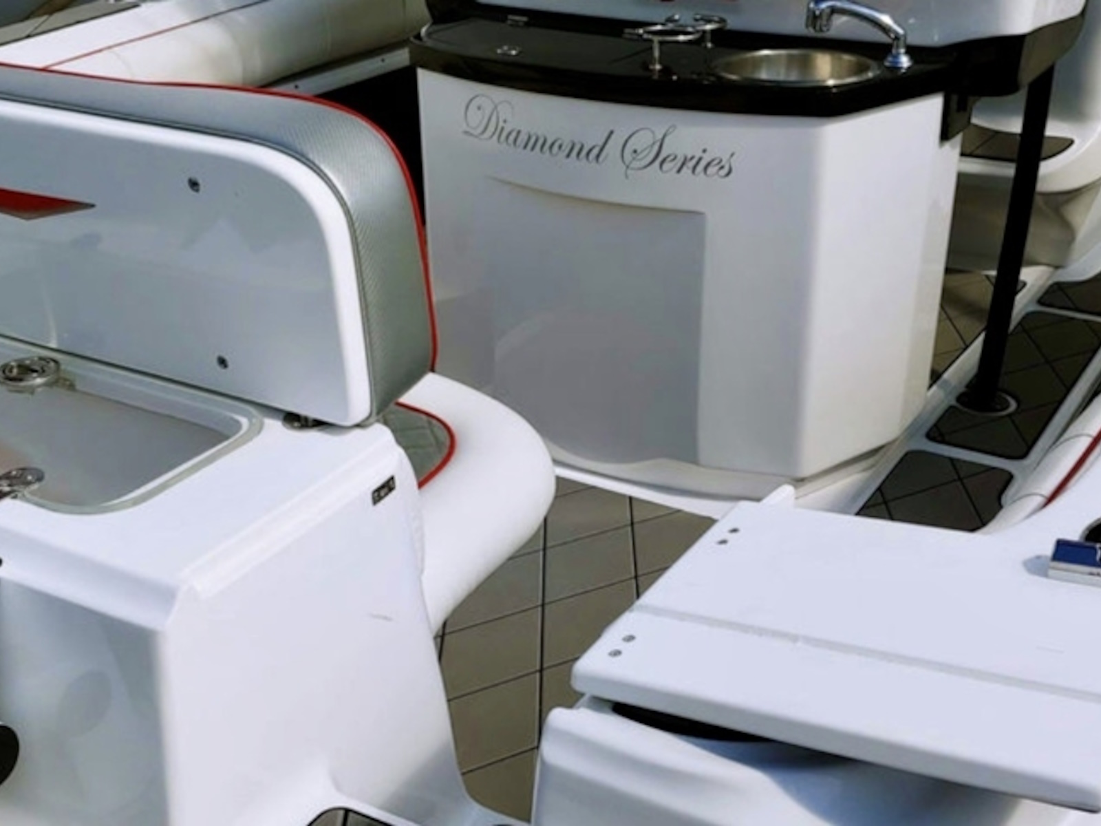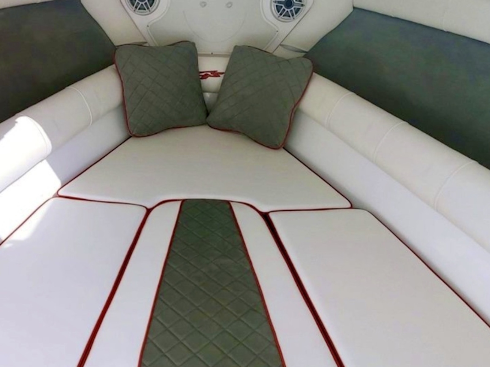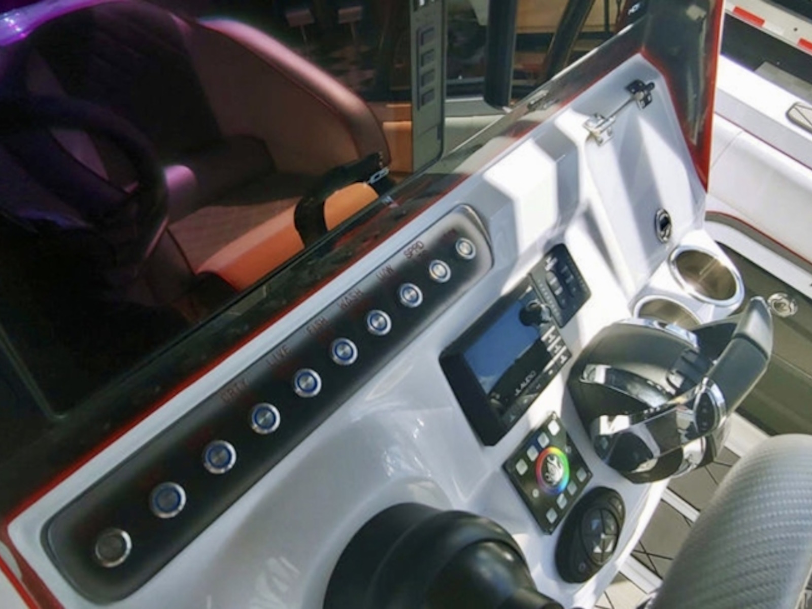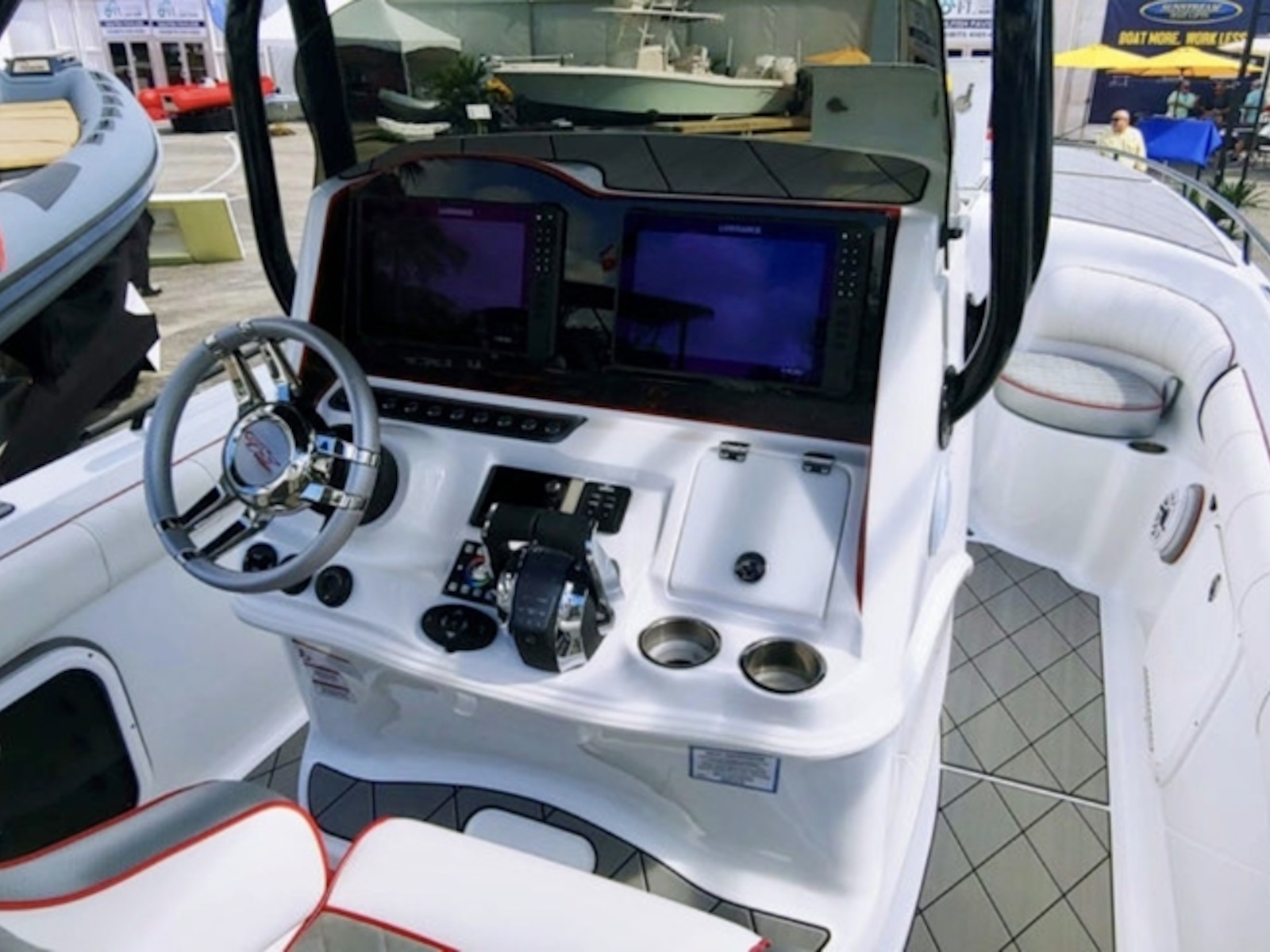 The 328 SCX Glasstream sets a new industry standard for a family-friendly coastal fishing vessel. The custom stepped hull adds to the stunning look and functionality of the model, while the first-class cuddy-cabin allows you to enjoy an overnight adventure while still enjoying the luxuries of home. Relax in the lounge area, enjoy the optional air-conditioned cabin, mix up your favorite boat drink on the optional wet bar, or go for a swim. If you like to ski off the back, chase the sun or fish your favorite spot, this center console model can do it all.