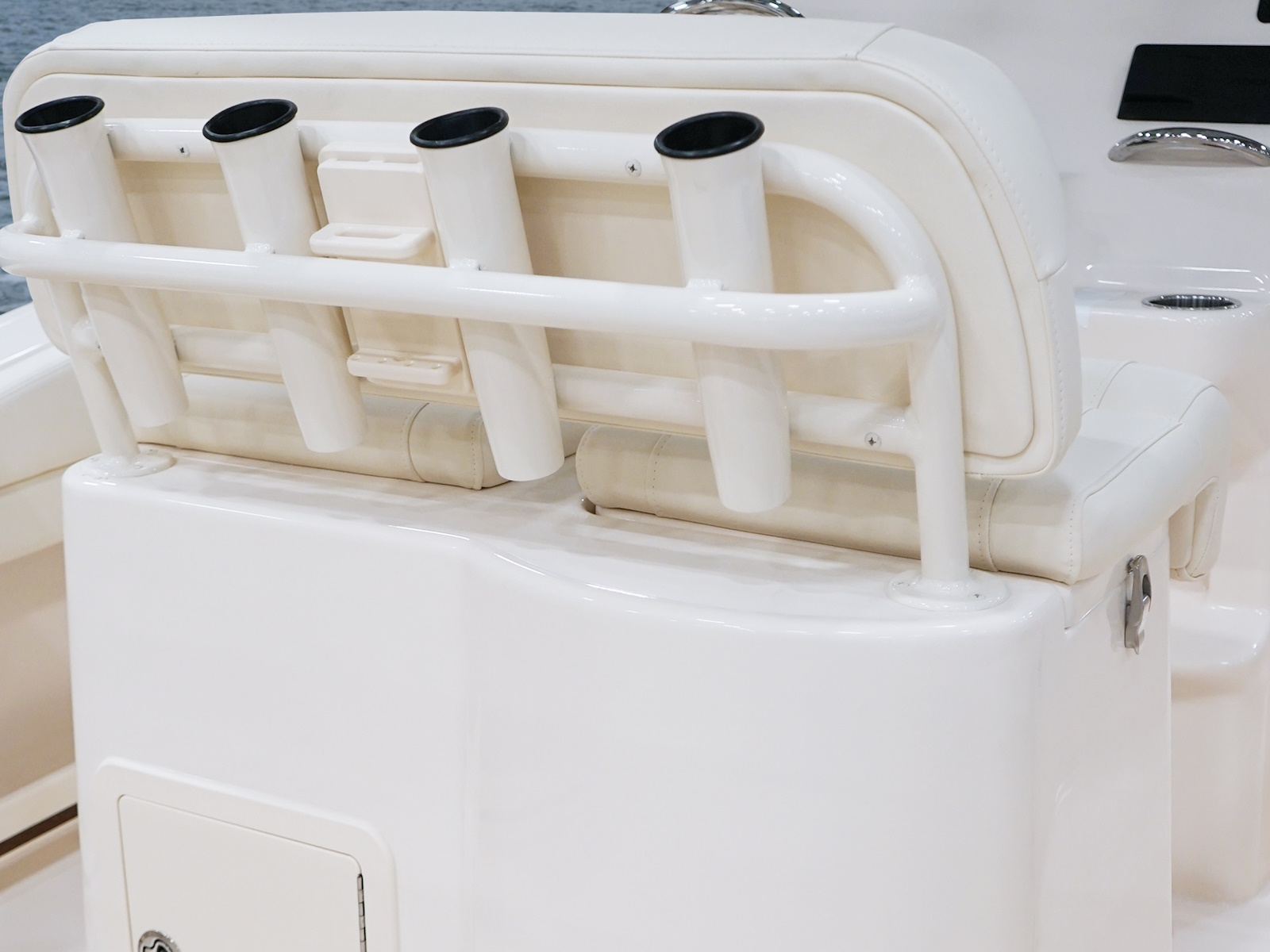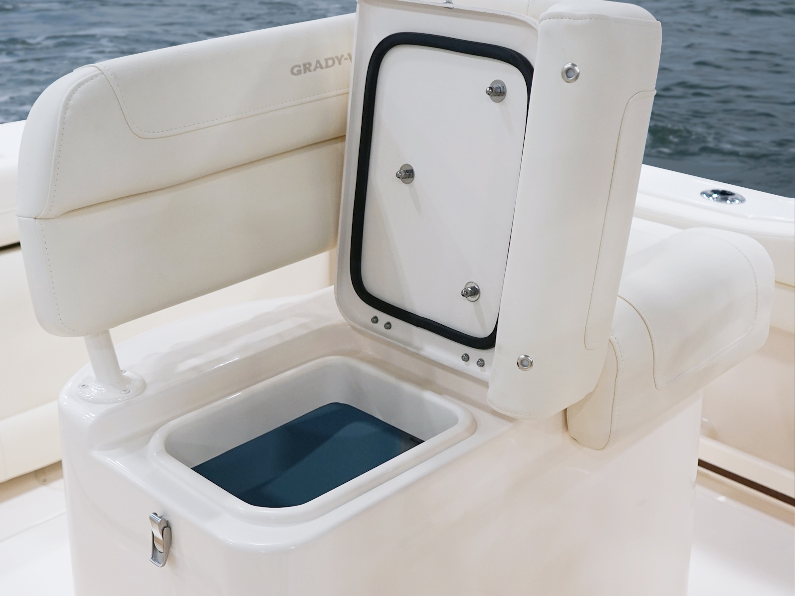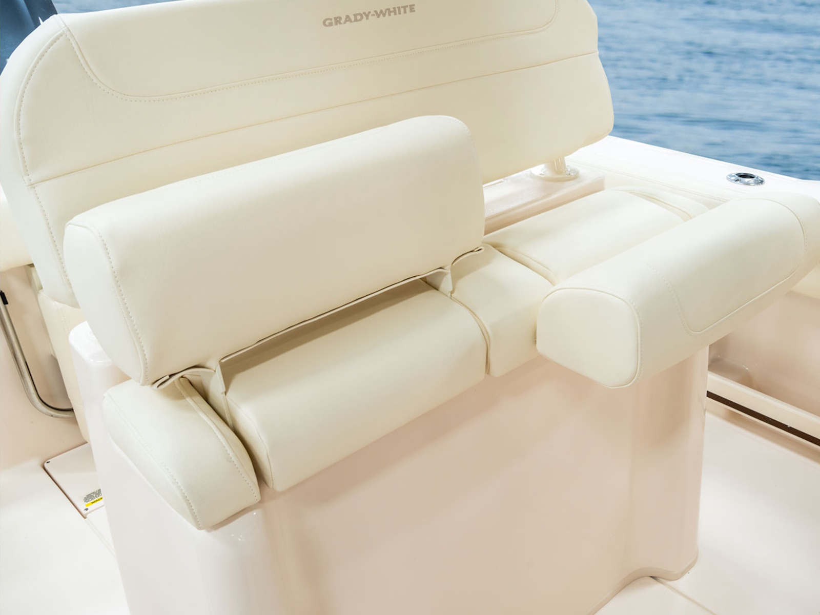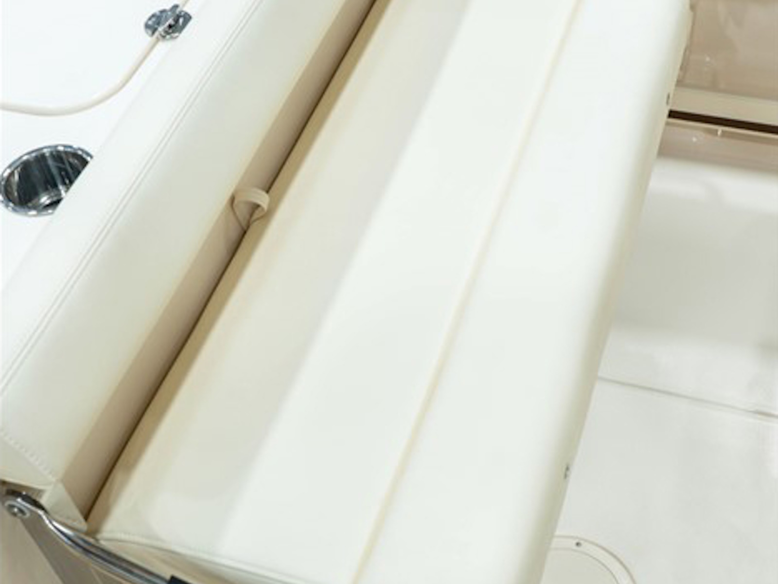 - Seating - Deluxe lean bar w/backrest, lockable storage, rod holders (4), 25-gal. (95 l) insulated raw water livewell (under seat) w/light, full column distribution inlet & ob drain (800 GPH pump) (3028 LPH)