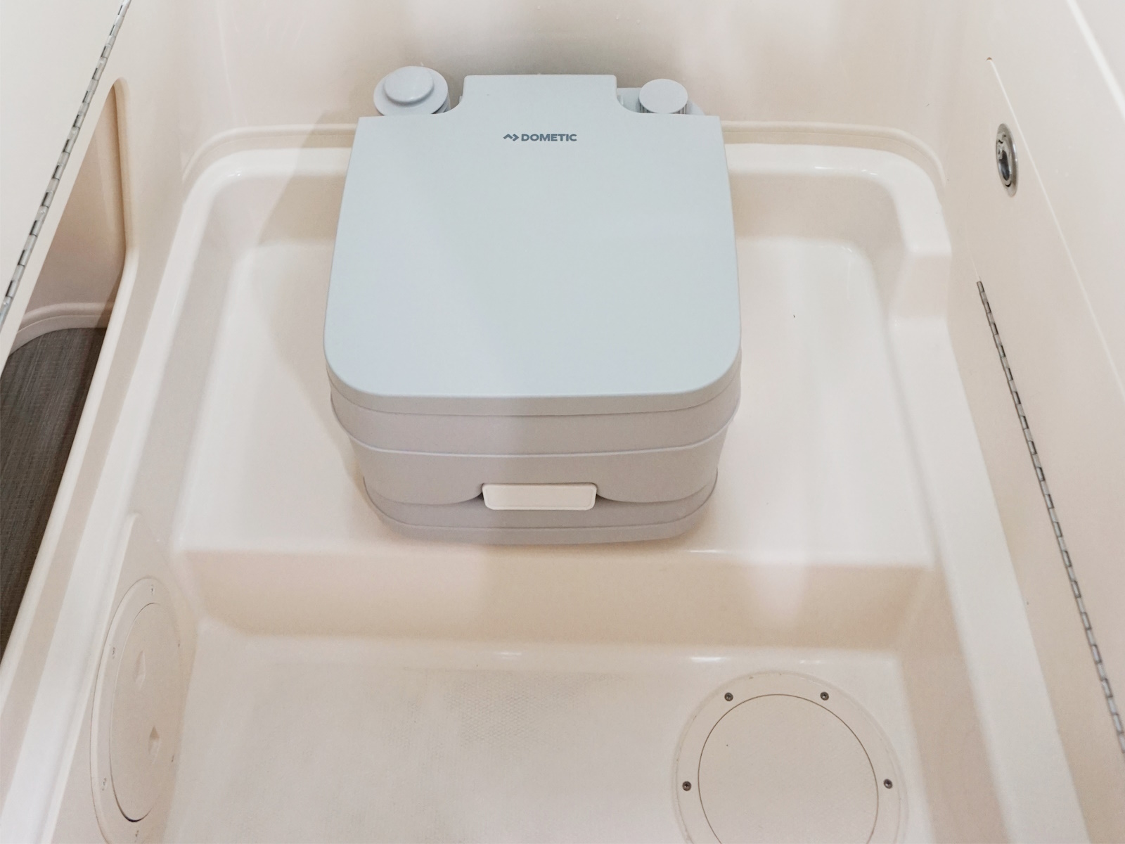 - Head - portable w/in-line macerator, overboard discharge & deck pump out