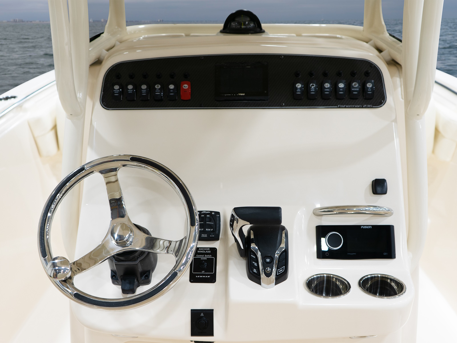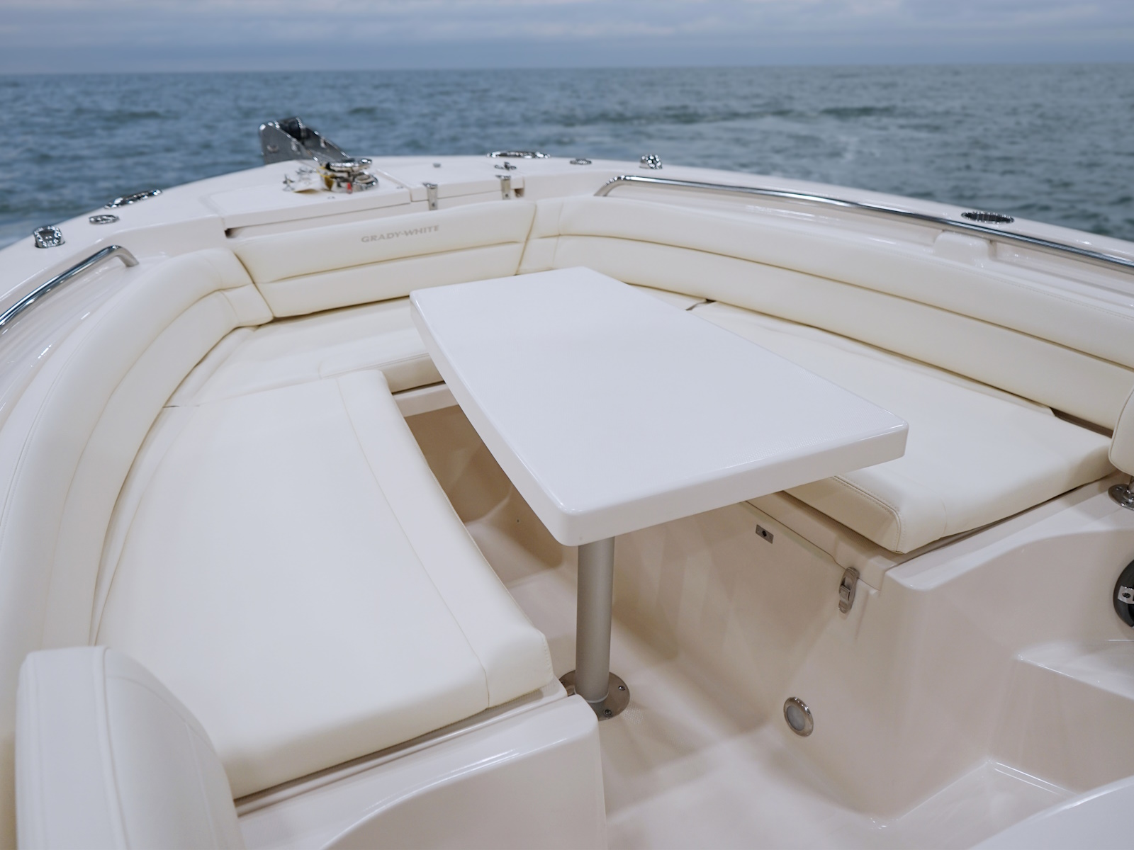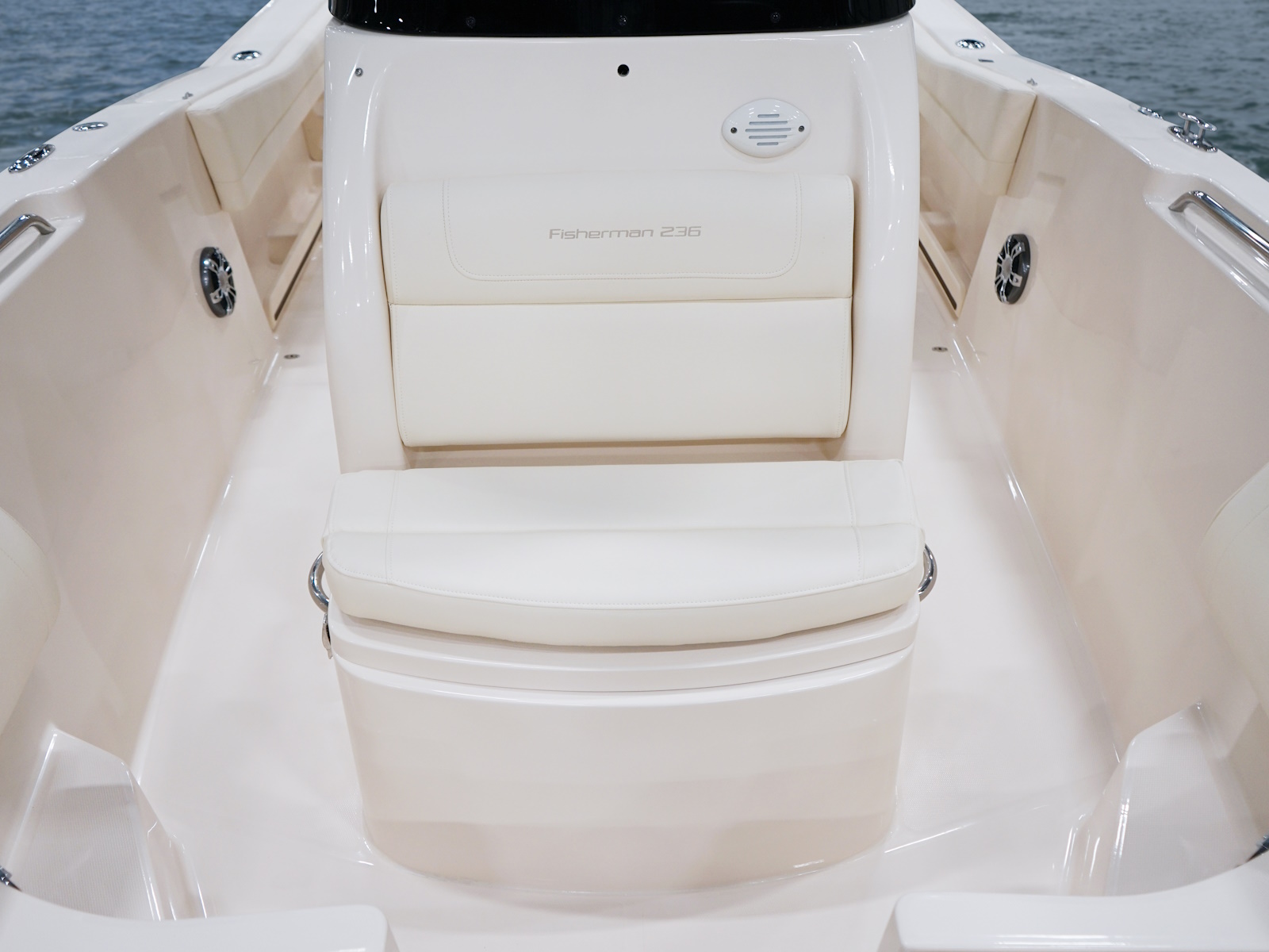 The most feature-rich 23-foot center console, Grady-White’s Fisherman 236 is a superior fishing boat and more family friendly than any competitive models. Standard features that make this boat remarkable include a 15.5-gallon livewell, an oversized enclosed head, and a transom door that makes it easy to board fish or get in and out of the water from the swim platform. Grady’s patented seating designs add comfort for up to 10 passengers. From the bow seating with forward facing foldaway backrests to the foldaway aft bench seat, there’s room for everyone.