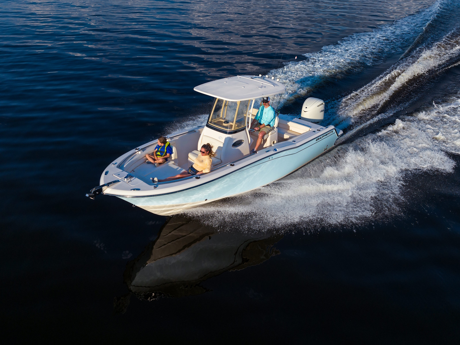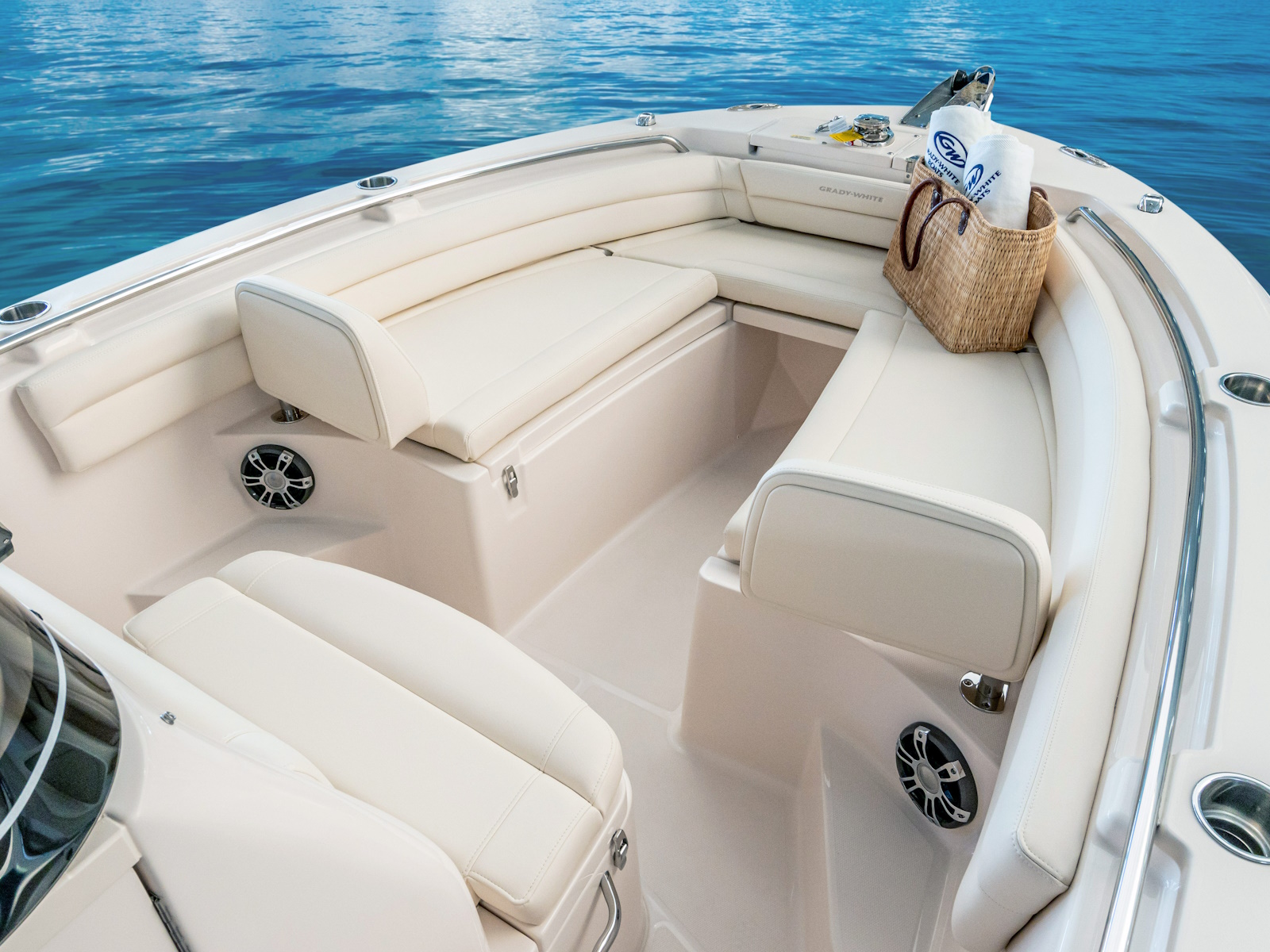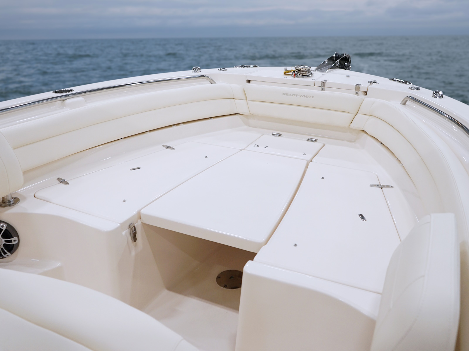 The most feature-rich 23-foot center console, Grady-White’s Fisherman 236 is a superior fishing boat and more family friendly than any competitive models. Standard features that make this boat remarkable include a 15.5-gallon livewell, an oversized enclosed head, and a transom door that makes it easy to board fish or get in and out of the water from the swim platform. Grady’s patented seating designs add comfort for up to 10 passengers. From the bow seating with forward facing foldaway backrests to the foldaway aft bench seat, there’s room for everyone.